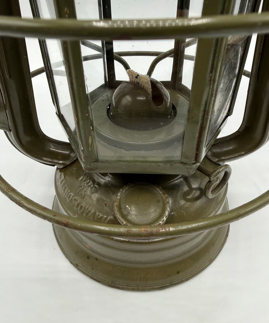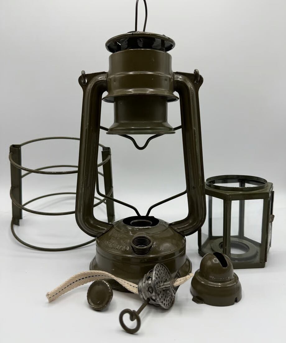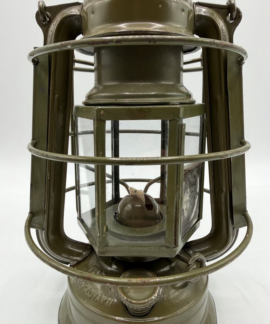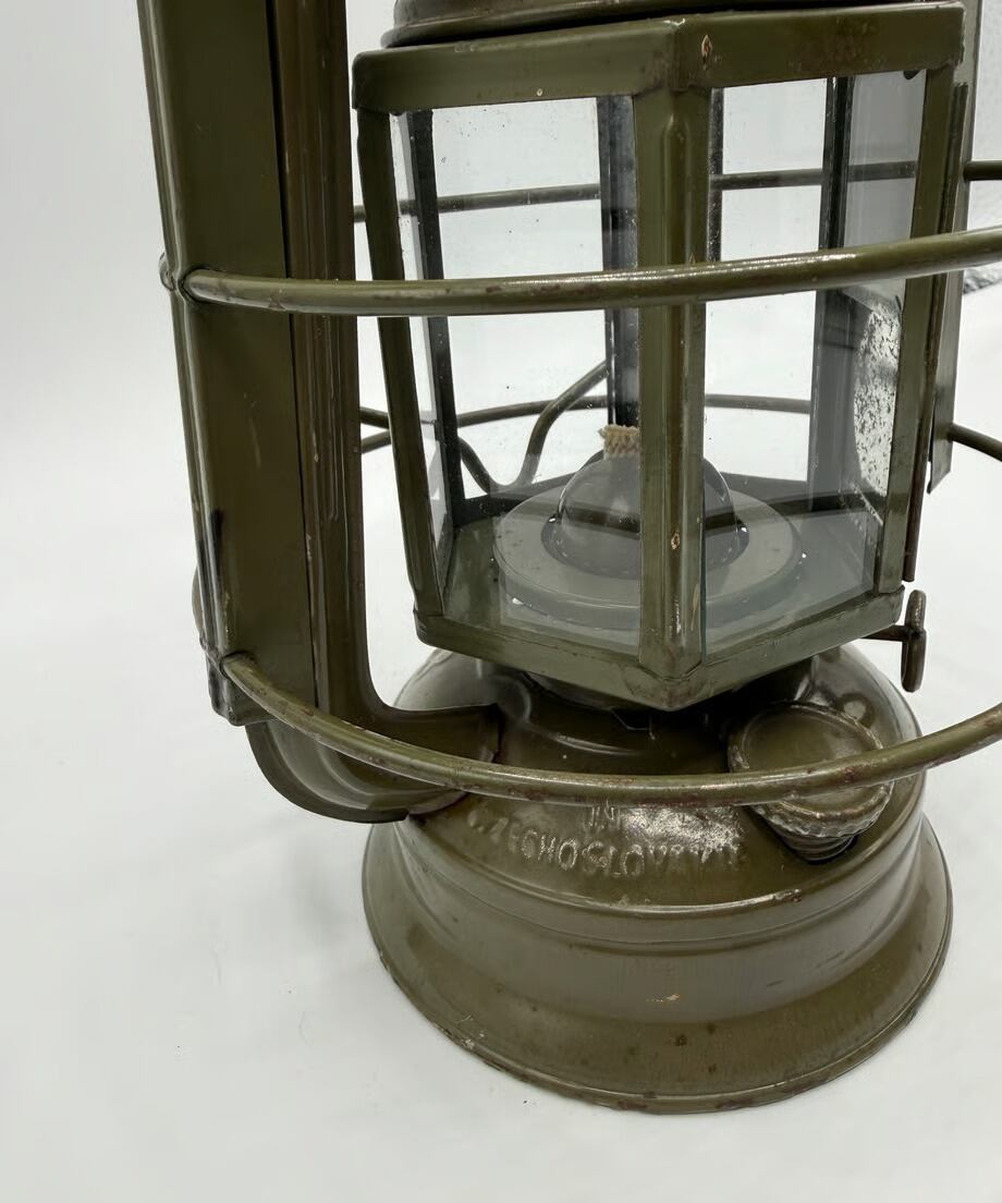 チェコスロバキア軍用として国内製造のミリタリーモデル。このランタンの特徴はホヤガラスです。6枚の平面ガラスでできています。点灯する時にリフトアップレバーはありません。ガラスの1枚に窓があり、そこを開けて着火する仕組みです。