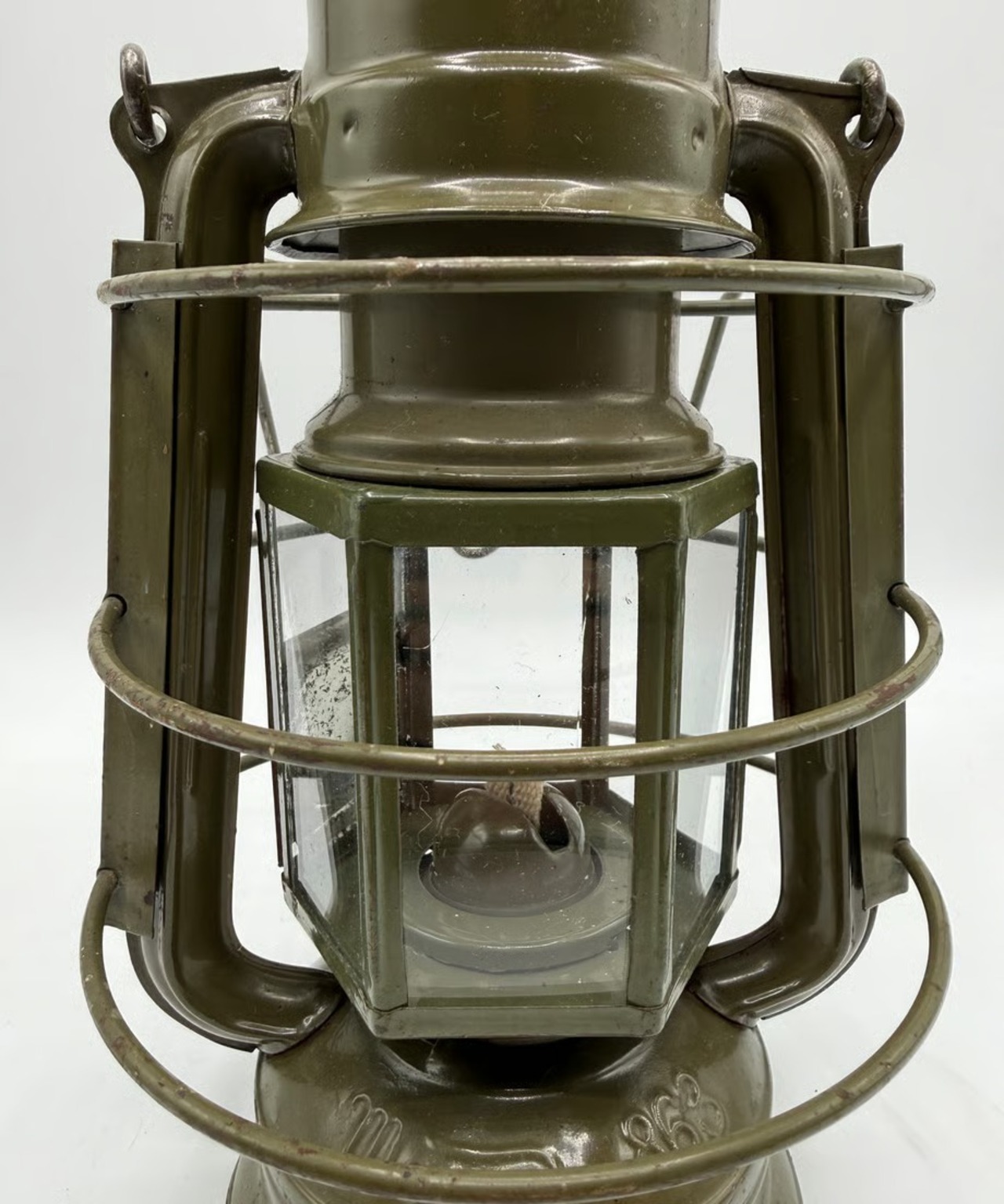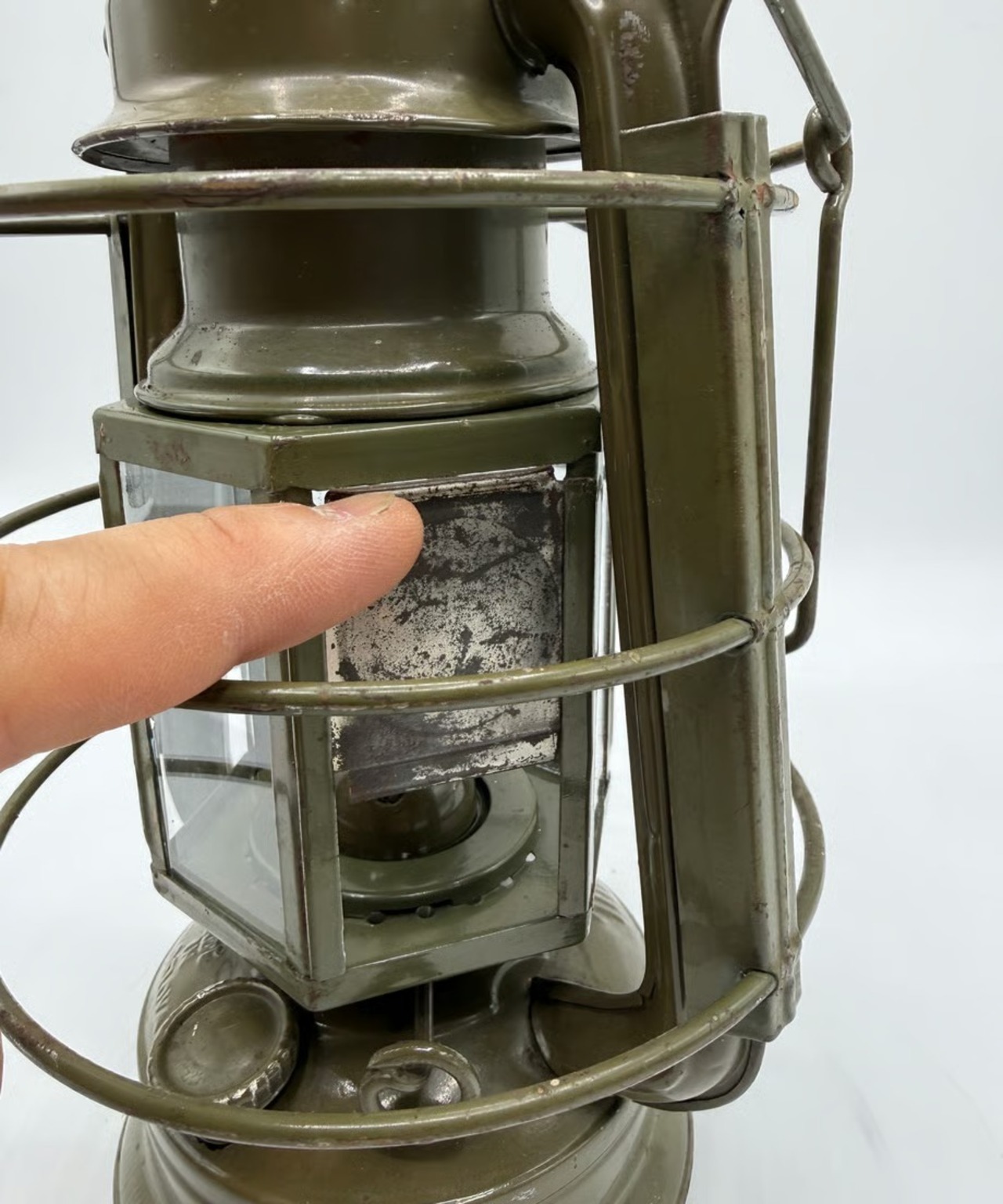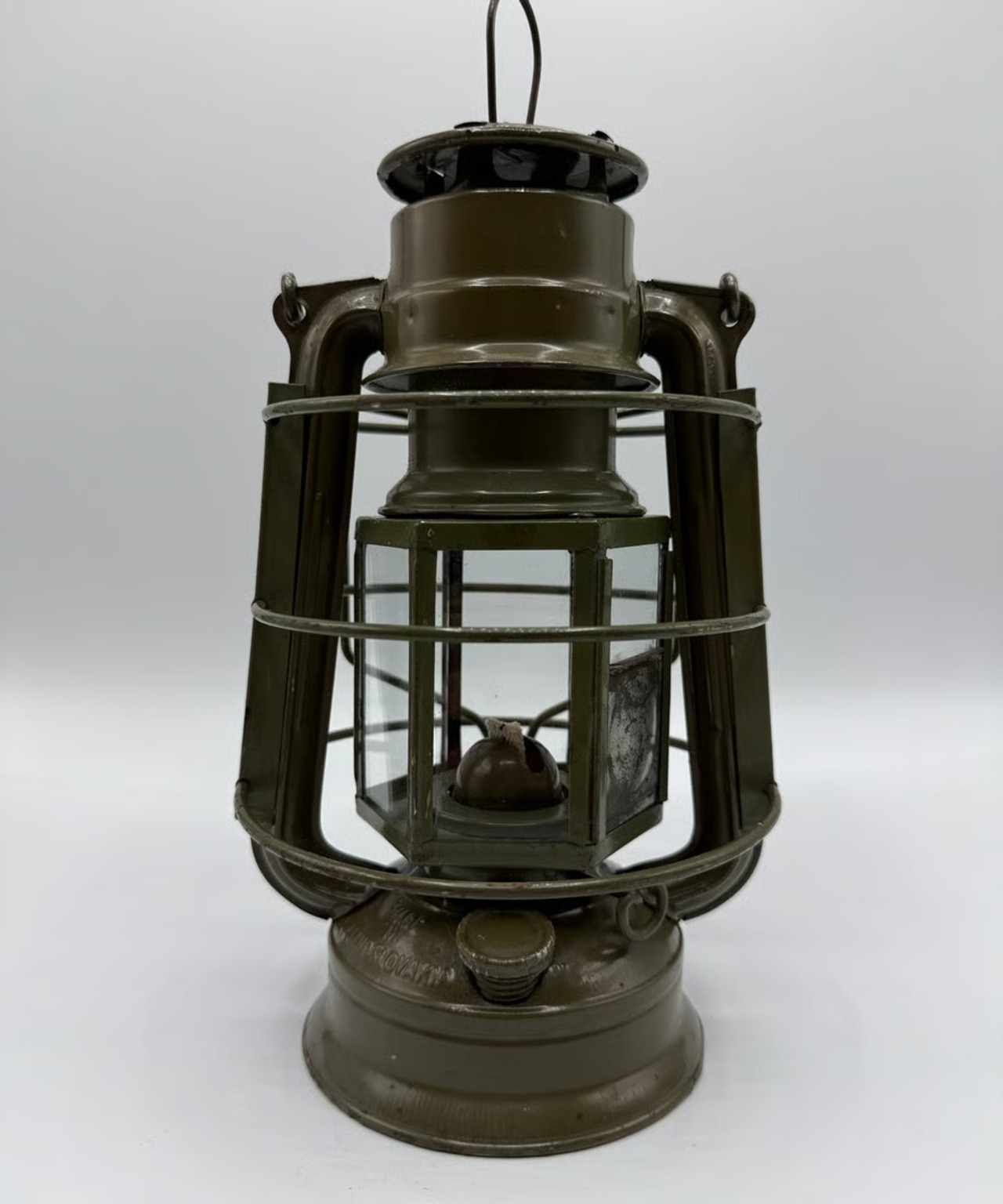 チェコスロバキア軍用として国内製造のミリタリーモデル。このランタンの特徴はホヤガラスです。6枚の平面ガラスでできています。点灯する時にリフトアップレバーはありません。ガラスの1枚に窓があり、そこを開けて着火する仕組みです。