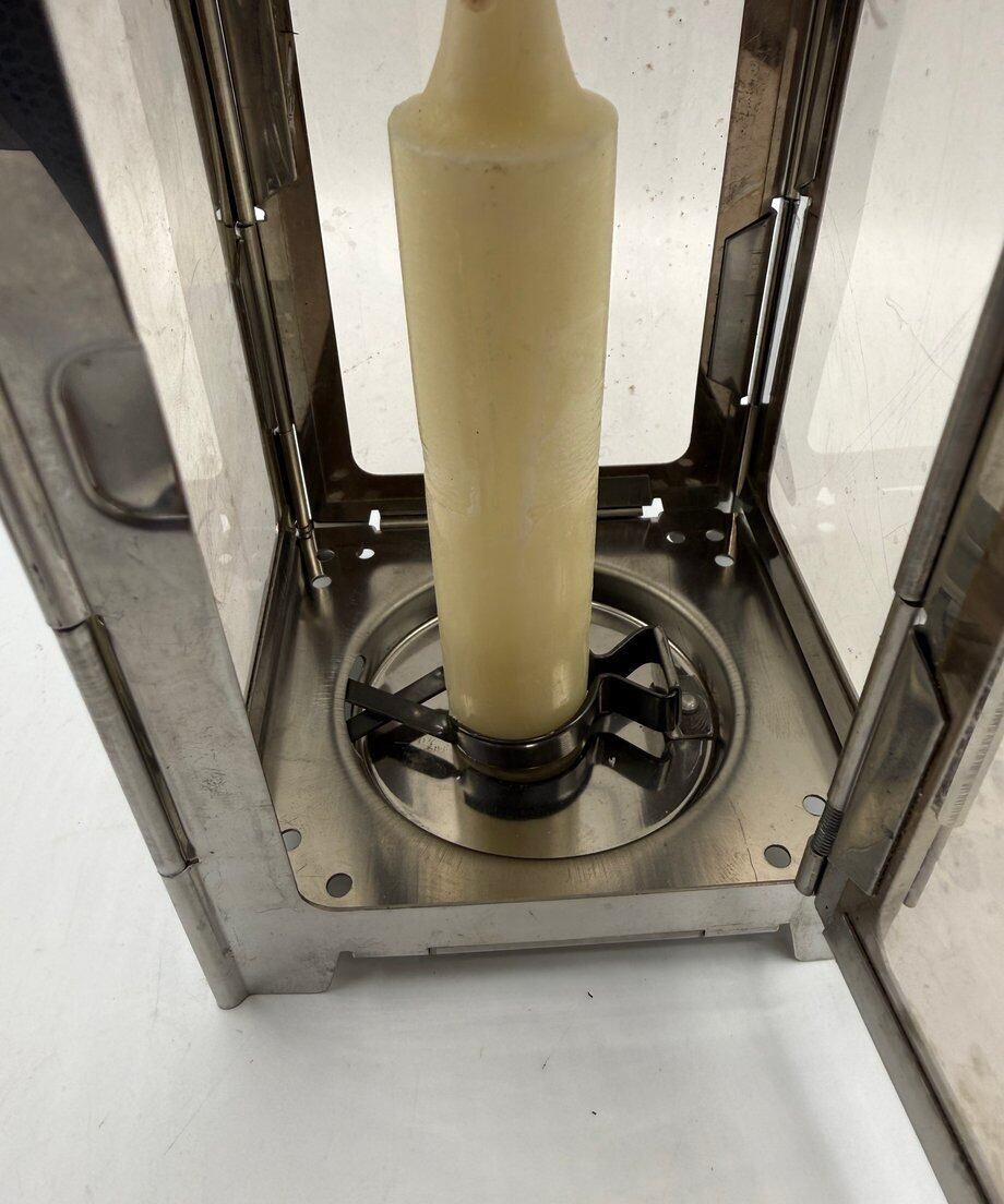 ランタンにも様々なデザインや使用する燃料がありますが、このモデルはキャンドルを使って灯りを灯すランタンとなります。