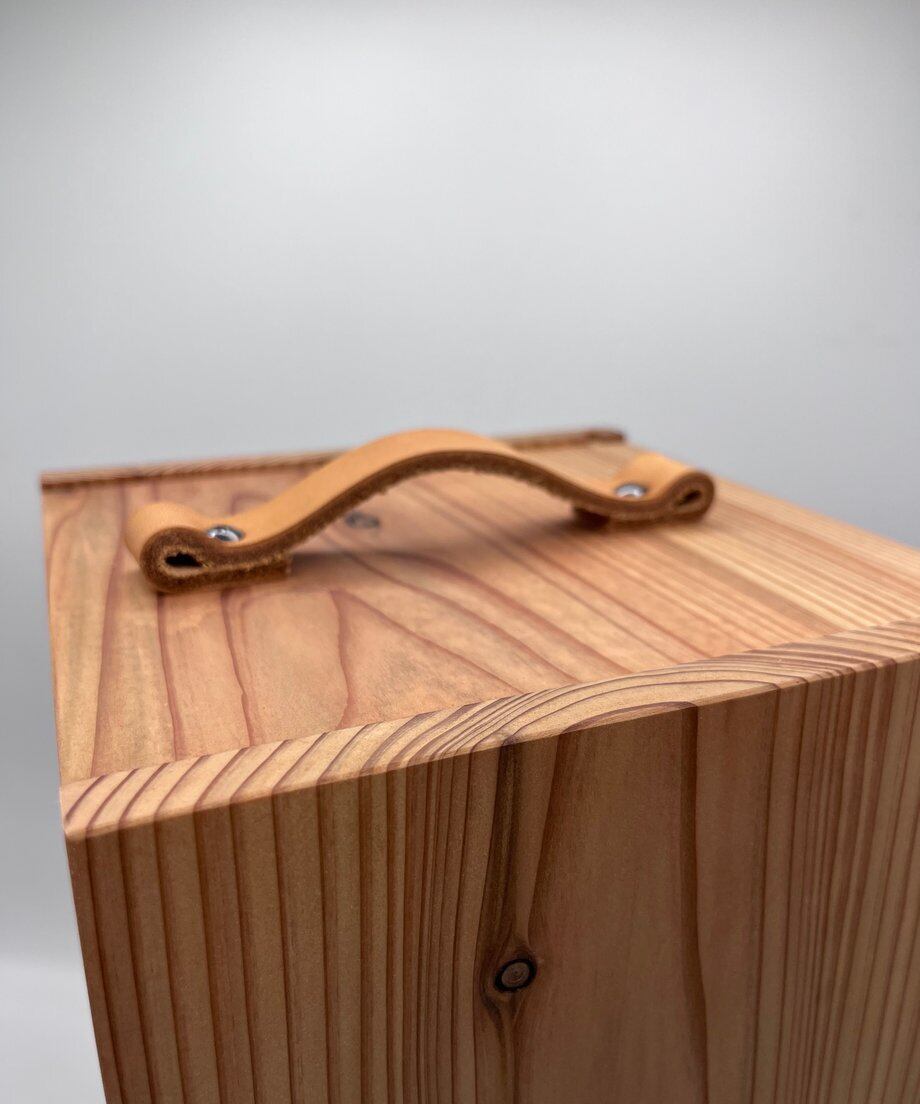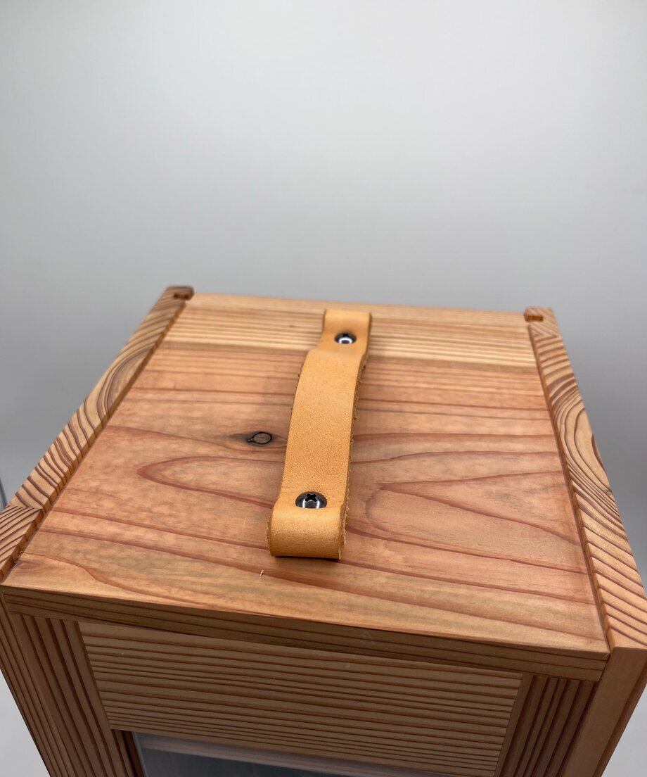地元山武市の杉材『山武杉(サンブスギ)』を使用したランタンケースで、地元山武杉を使用した専門の職人によるハンドメイドです。