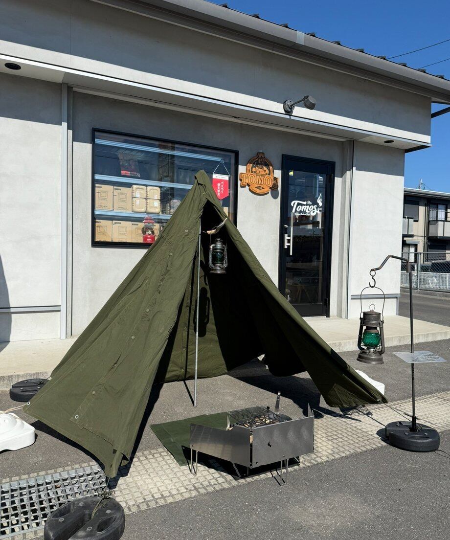 大きいサイズを選ばれる方が多いですが、実際の兵隊さんのように身長に合わせたサイズのポンチョをあえてテントとして使われるのも無骨で面白い軍幕の楽しみ方だと思います。