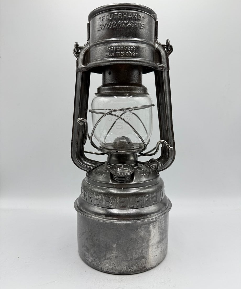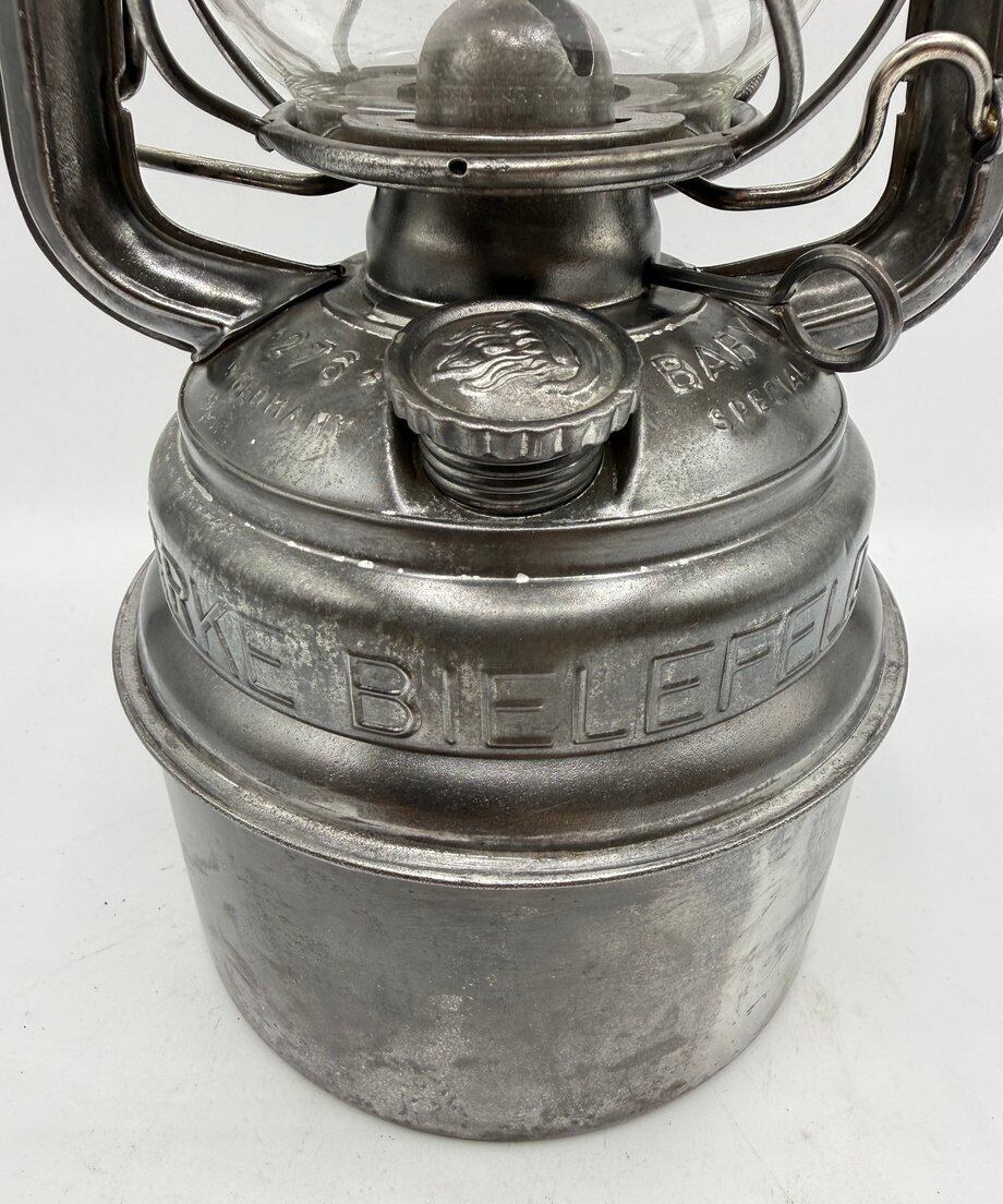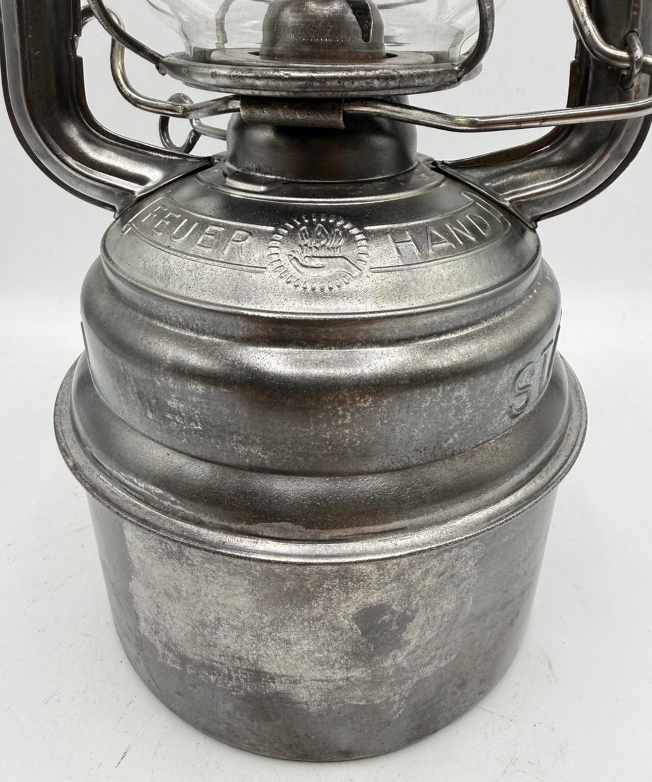 タンクにはエンボスで文字が刻印されています。この意味は当時このランタンを使用していた建築会社などの名前となります。