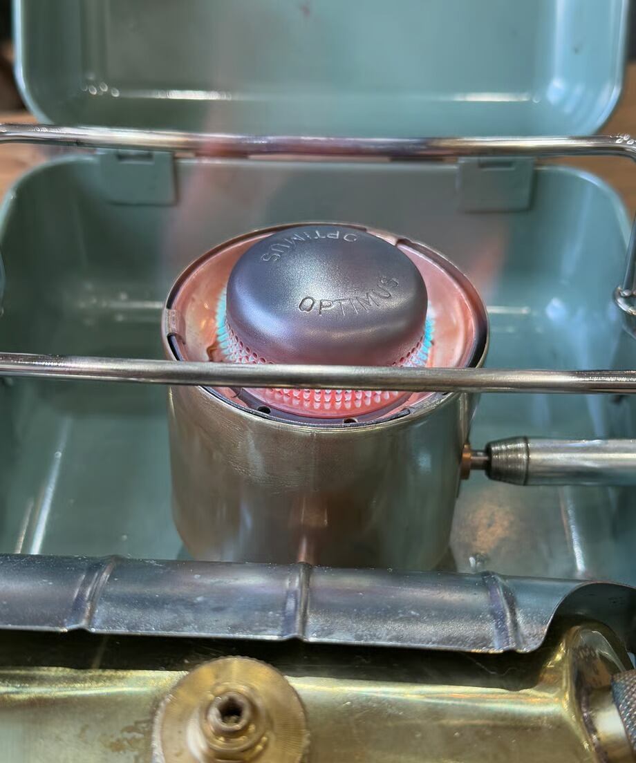 オプティマスの名器8Rより2回り程大きなもでるNo.111となります。8Rは小型のストーブの為登山など携帯性に優れたモデルですが、今回のNO.111はソロキャンプやファミリー、グループキャンプに最適なサイズ感です。