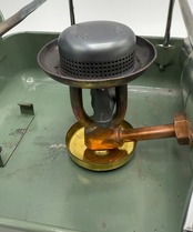 着火は加圧式ランタン同様プレヒートが必要です。アルコールが蒸発するまでプレヒートを行い、しっかりプレートを行います。ポンピングを行い、バルブを中央あたりに開きガスを噴出させてライター等で点火します。