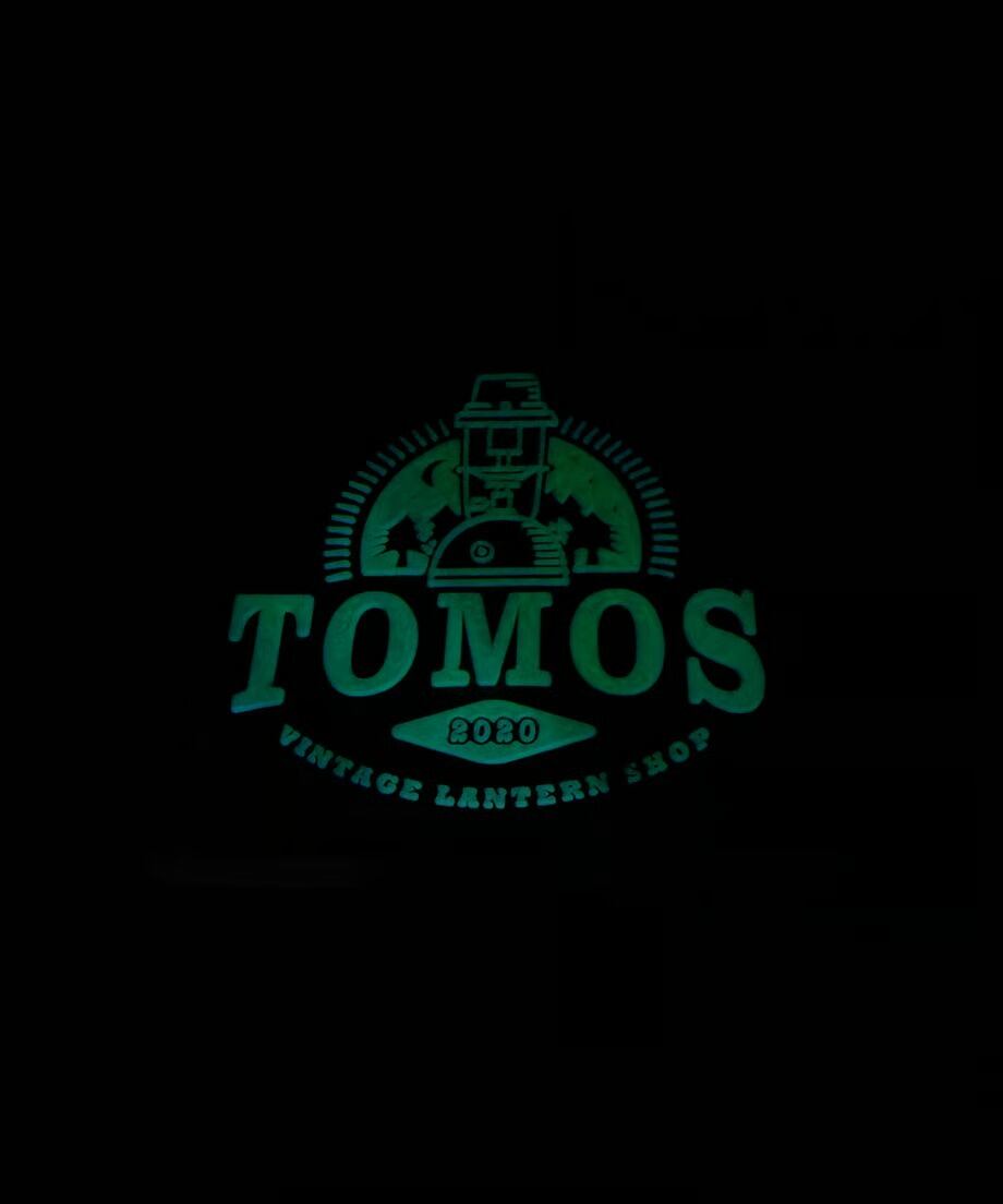TOMOSのロゴを蓄光のPVC素材でベルクロにしました。