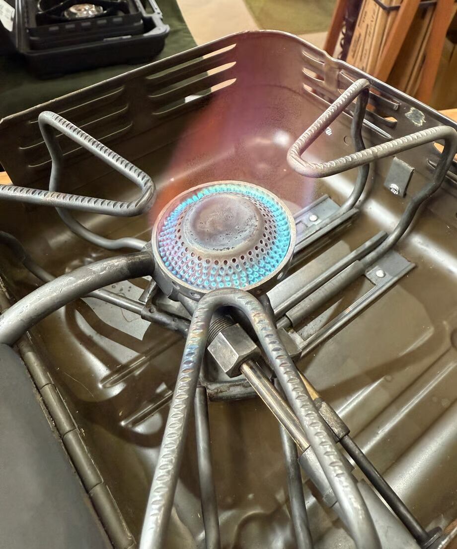燃焼は加圧式ランタン同様プレヒートを行いながら燃焼させます。しっかりとプレヒートを行ってからポンピングをしていき着火させます。