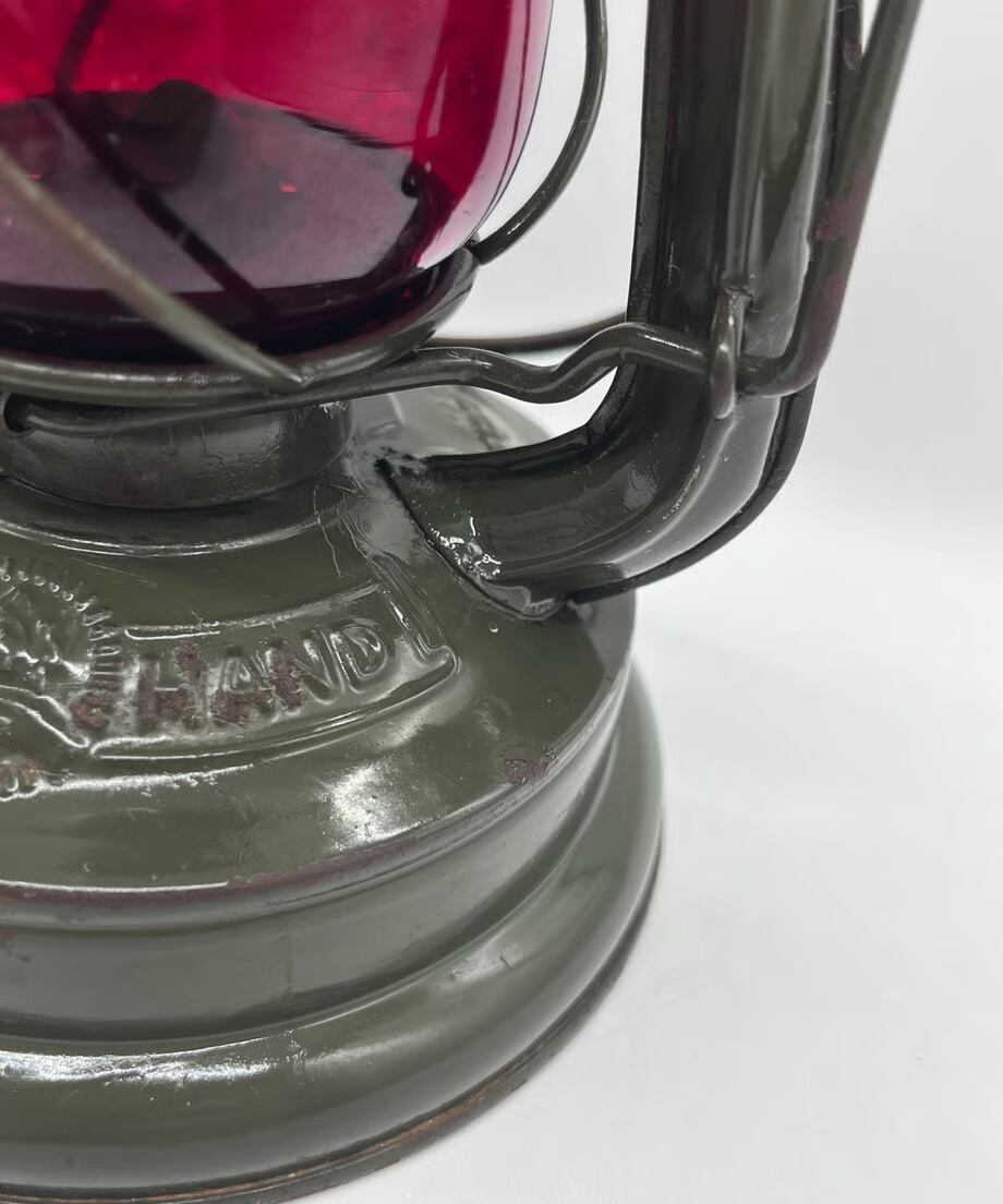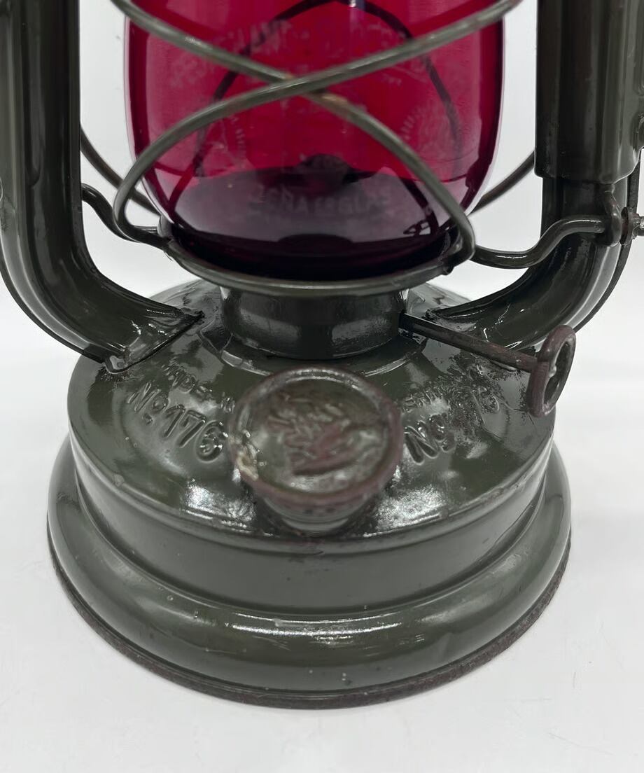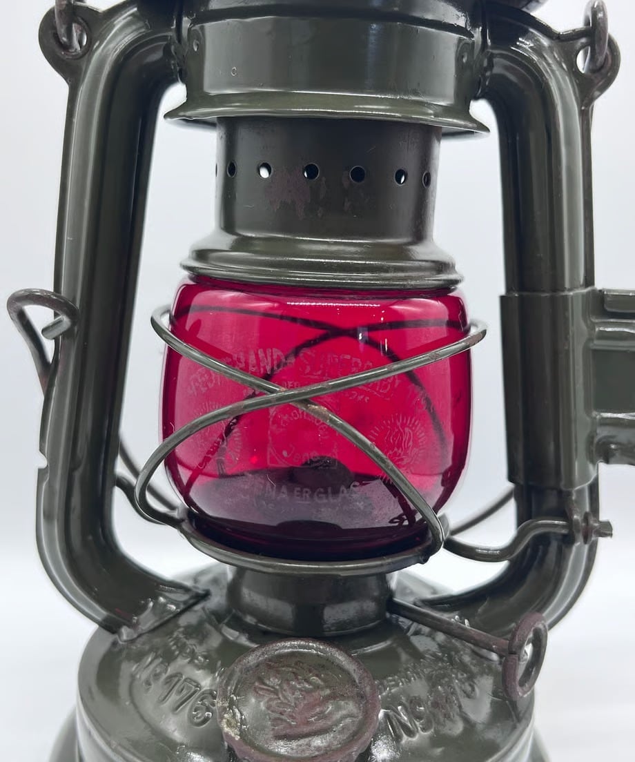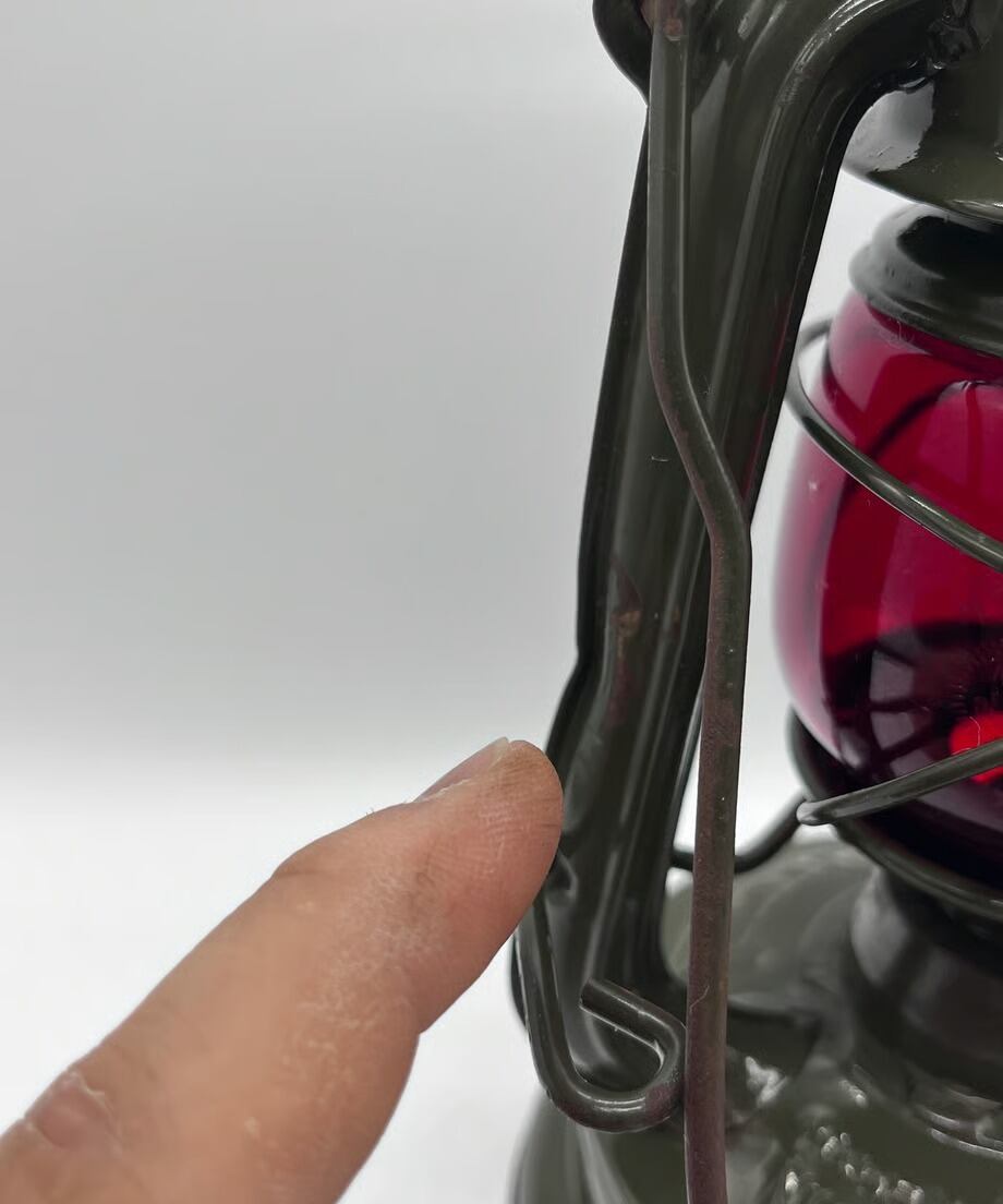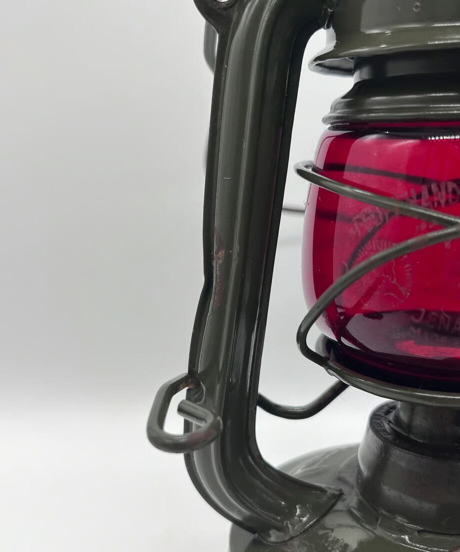 ・ とても古いランプのため所々に錆も出ておりますが、目立つような傷や凹みはありませんが、向かって左側のエアパイプにハンドルが押し付けたような凹みがあります。そんなに気になる凹みではありません。ヴィンテージとしてとても味のある個体です。塗装もオリジナルのまま綺麗に残っています。