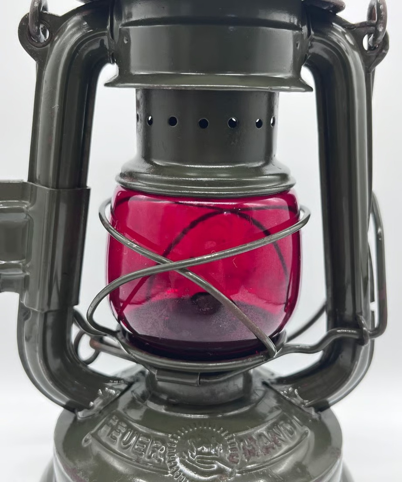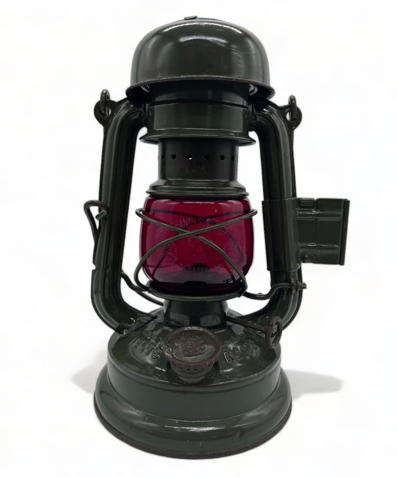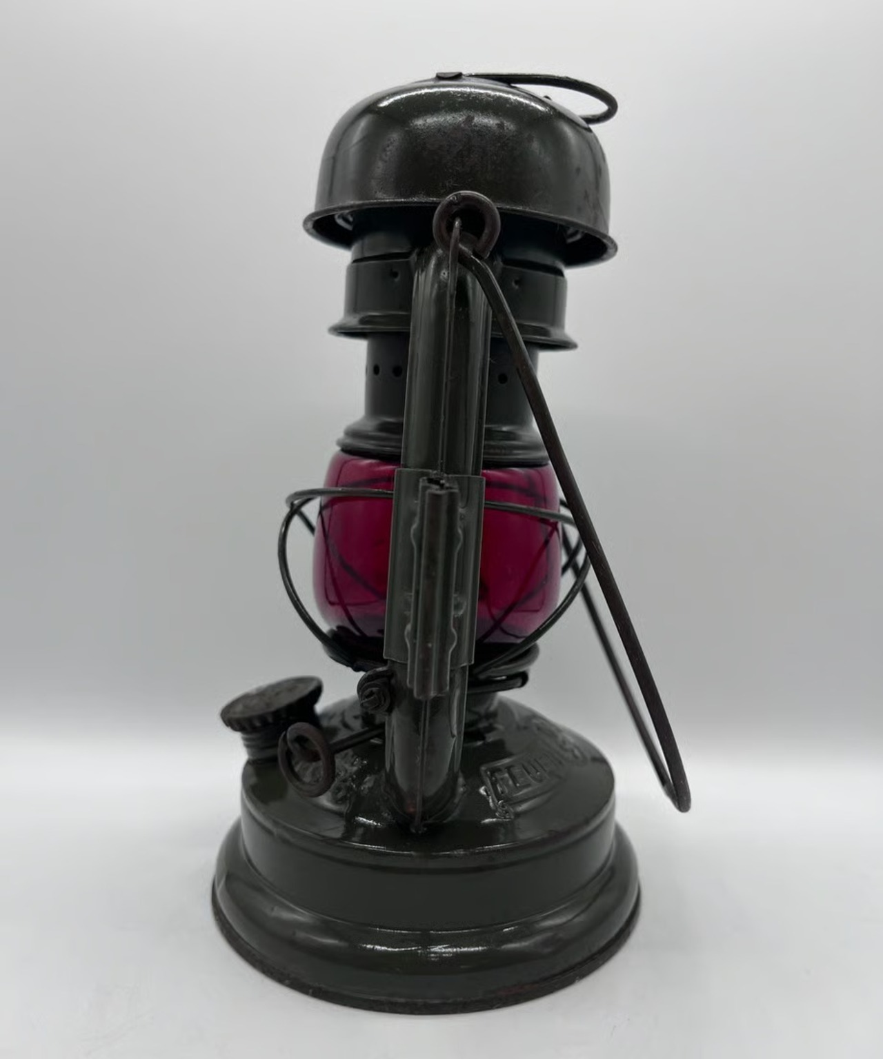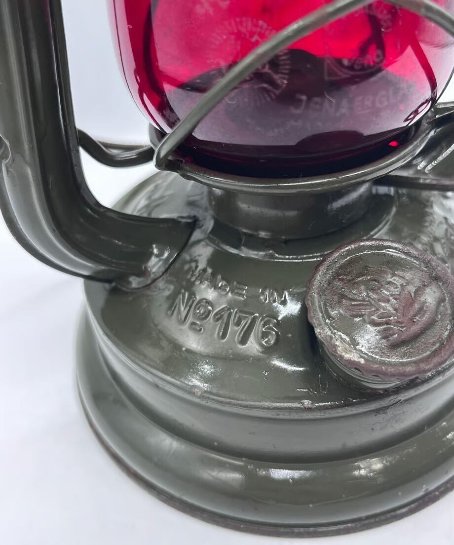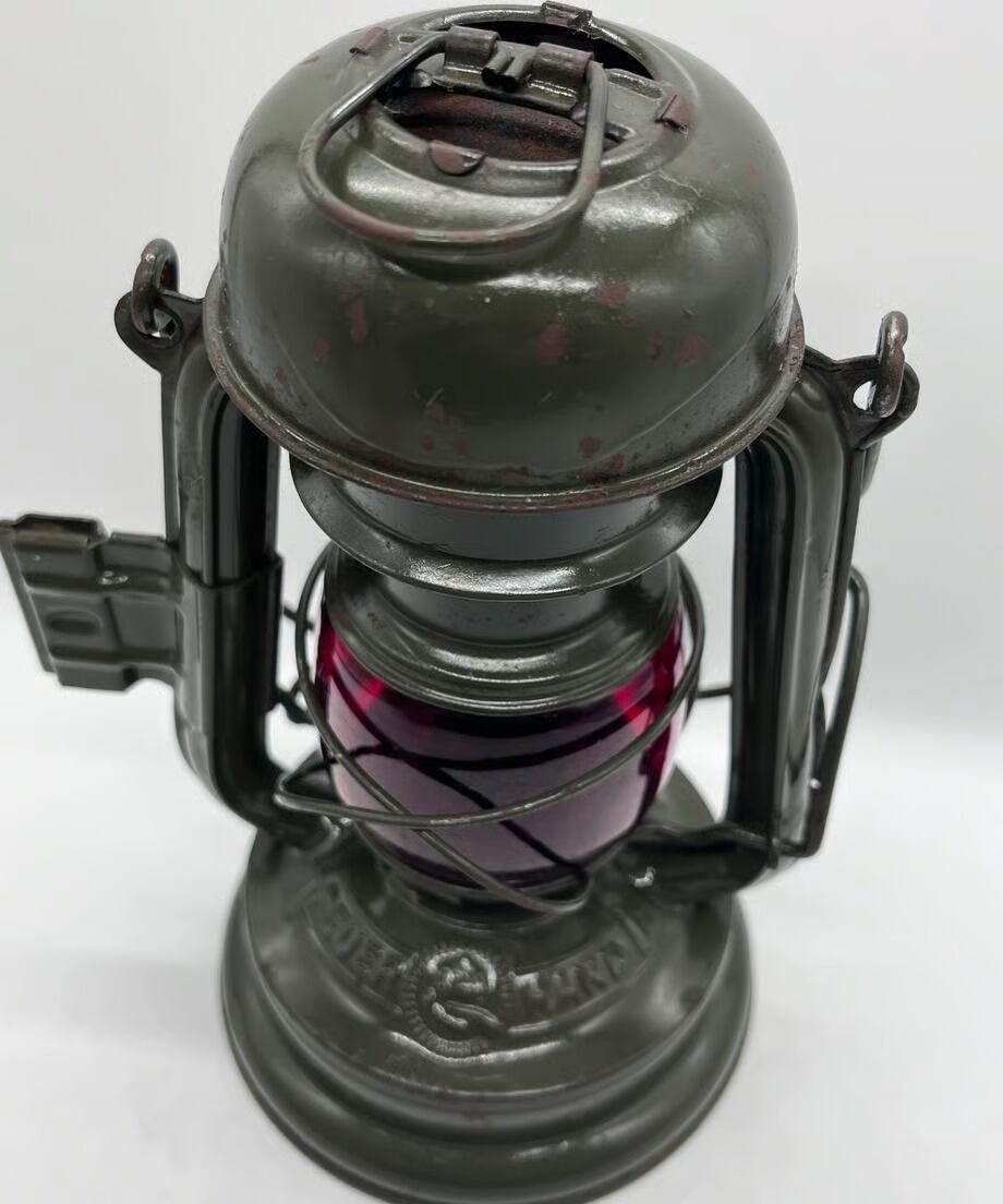 ・ とても古いランプのため所々に錆も出ておりますが、目立つような傷や凹みはありませんが、向かって左側のエアパイプにハンドルが押し付けたような凹みがあります。そんなに気になる凹みではありません。ヴィンテージとしてとても味のある個体です。塗装もオリジナルのまま綺麗に残っています。