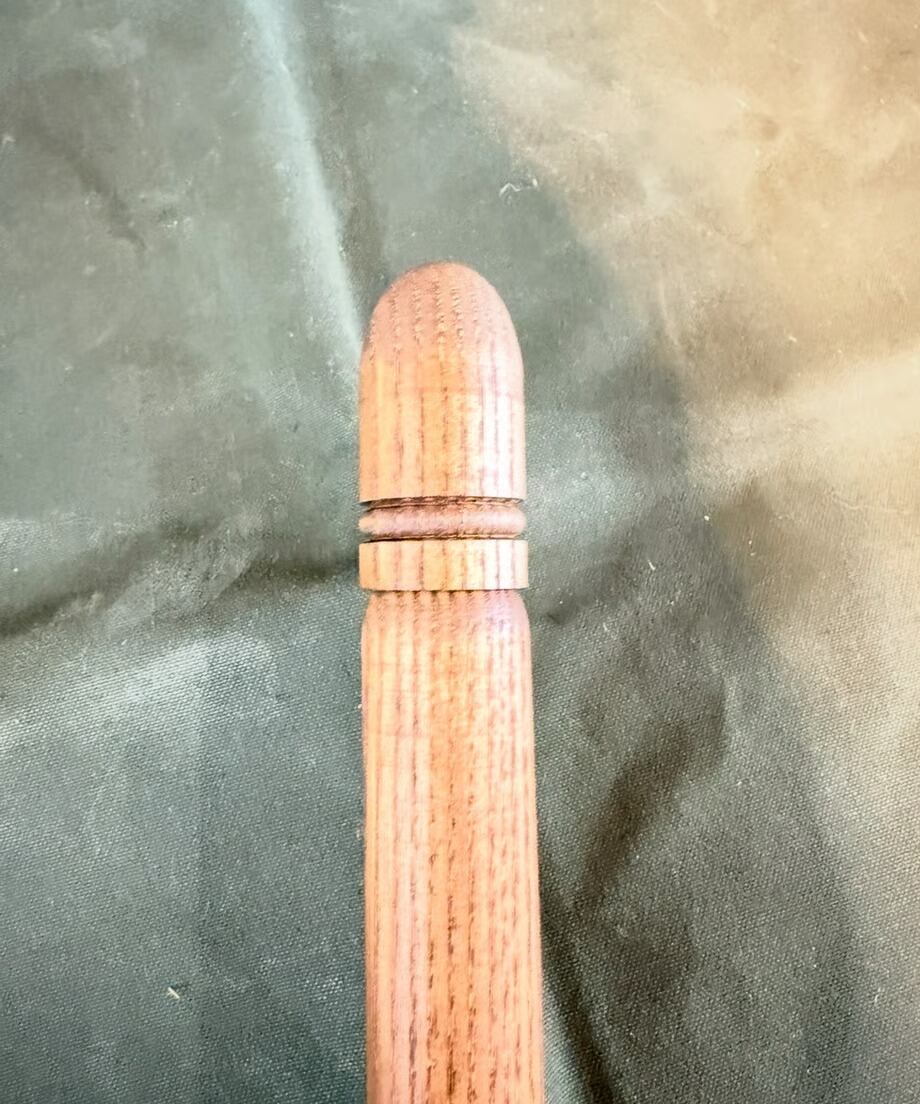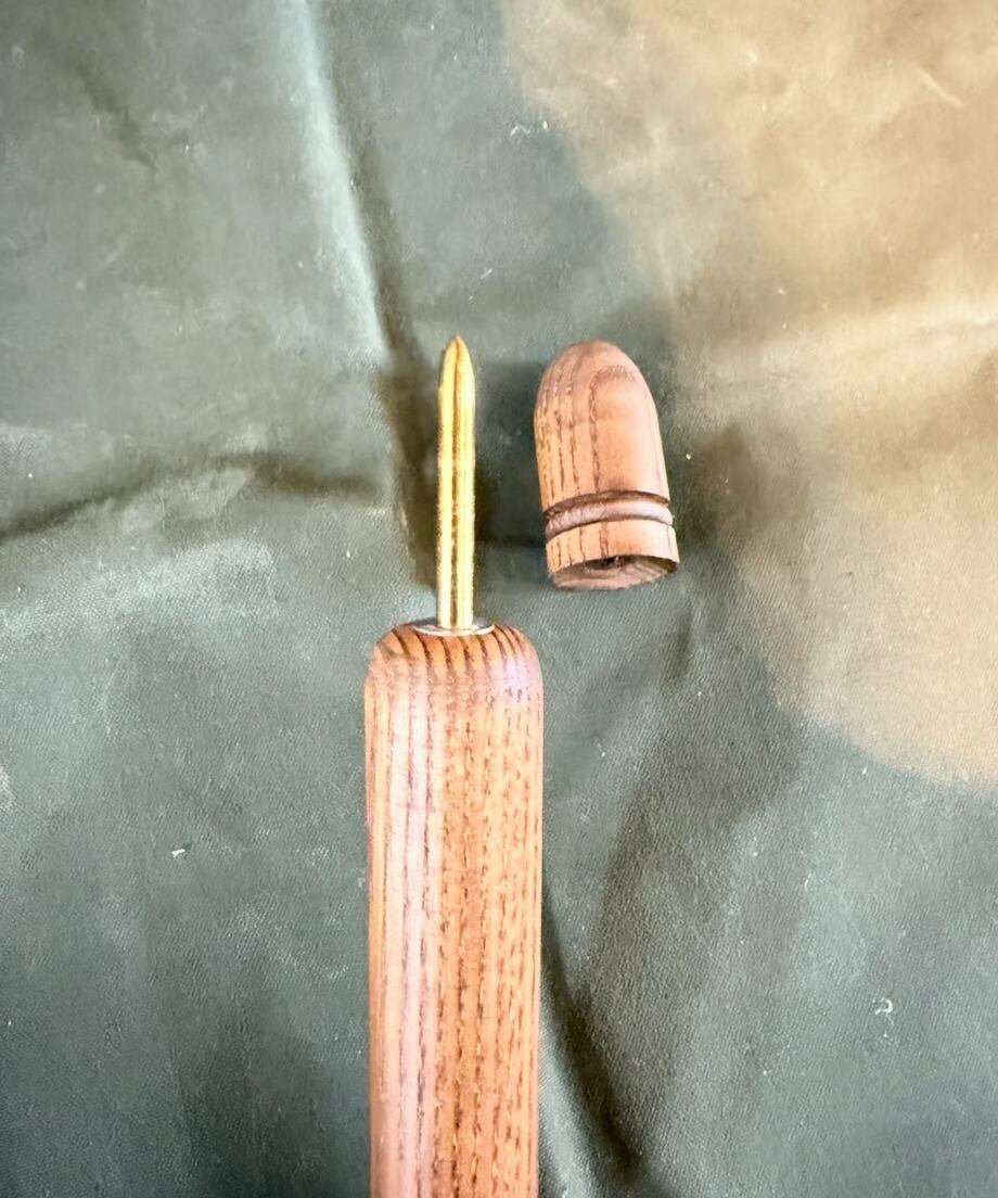 先端には木製のキャップが付属致します。ハトメに挿す際はキャップを外して、幕に直接ご使用になる場合はキャッ