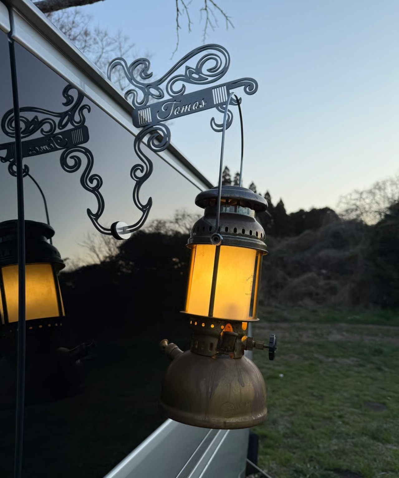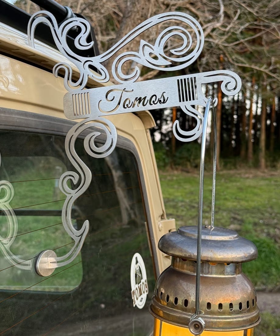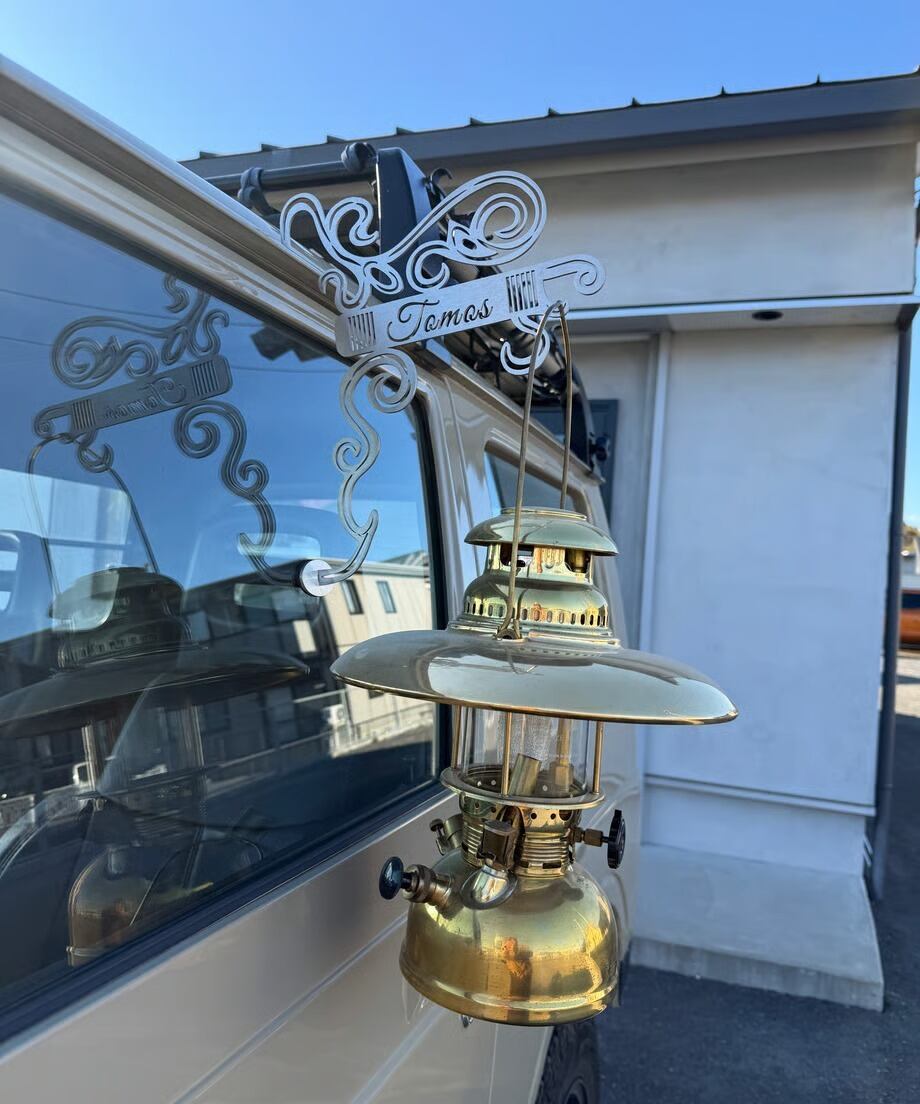 車のレインガーターに引っ掛けてランタンなどをかけて使えるハンガーになります。