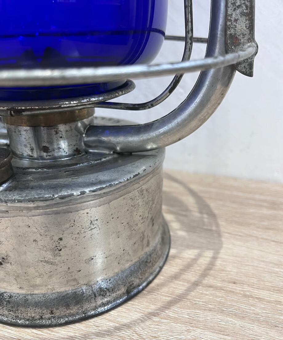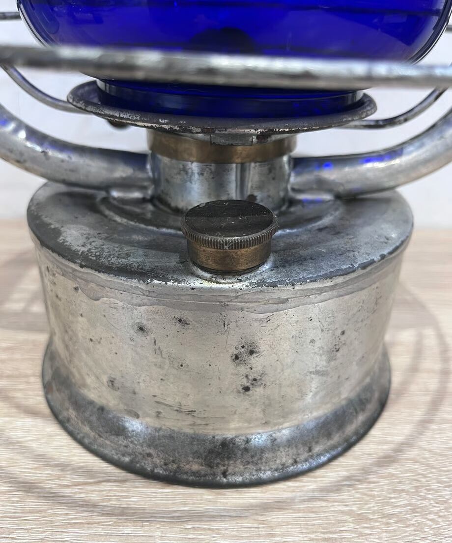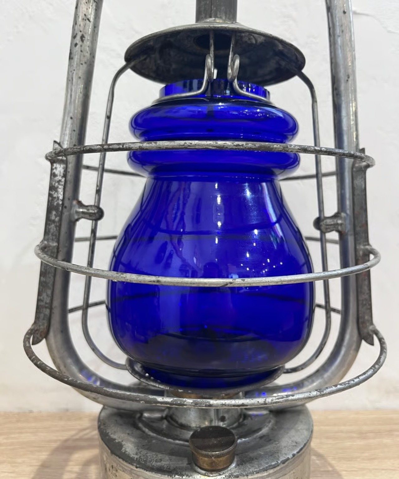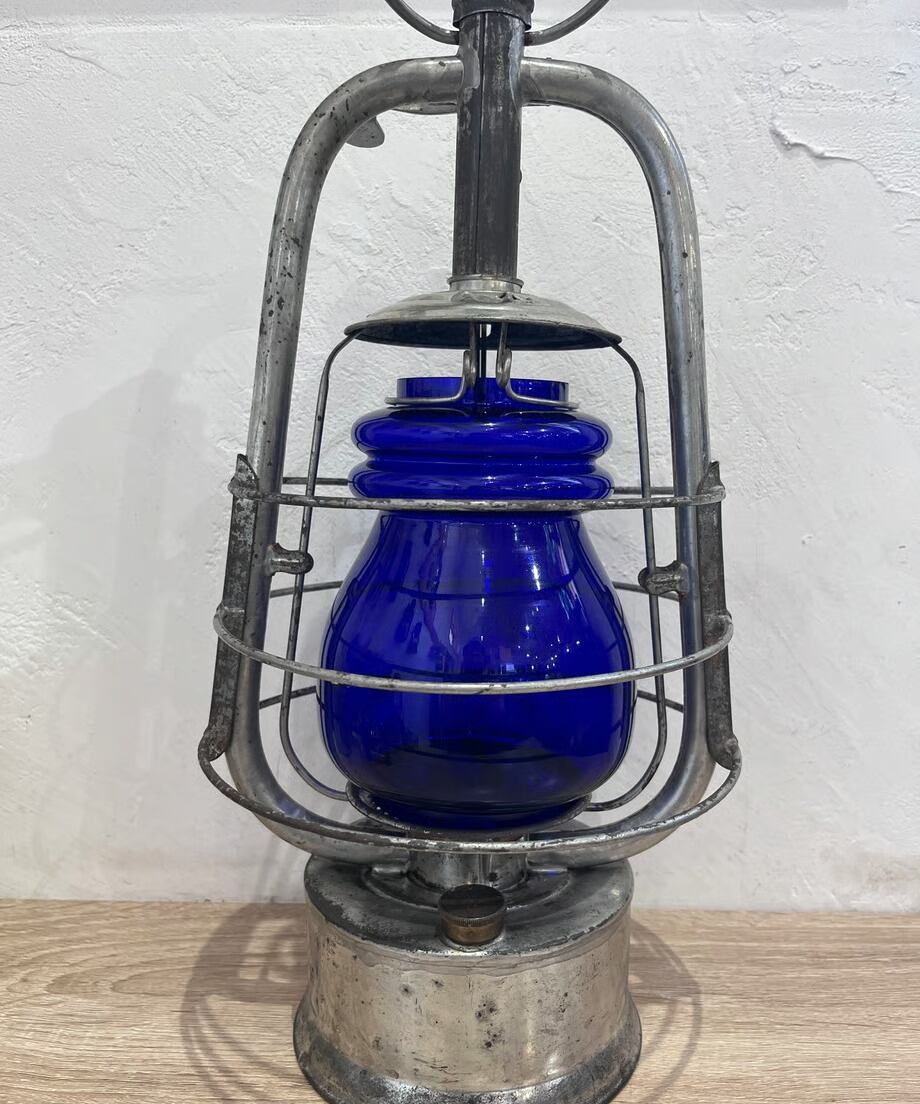 ホヤはオリジナルのブルーです。点灯するとランタンの周りにできるオレンジのリングがとても素敵です。