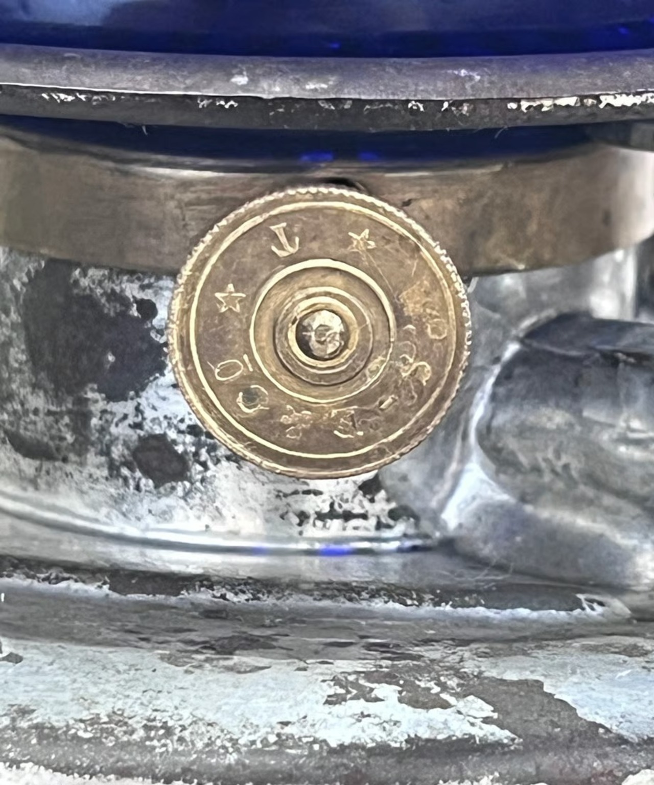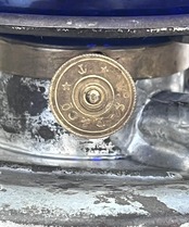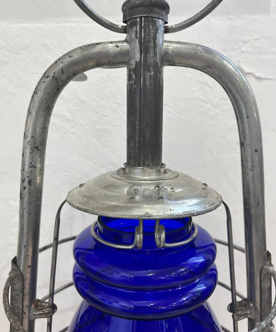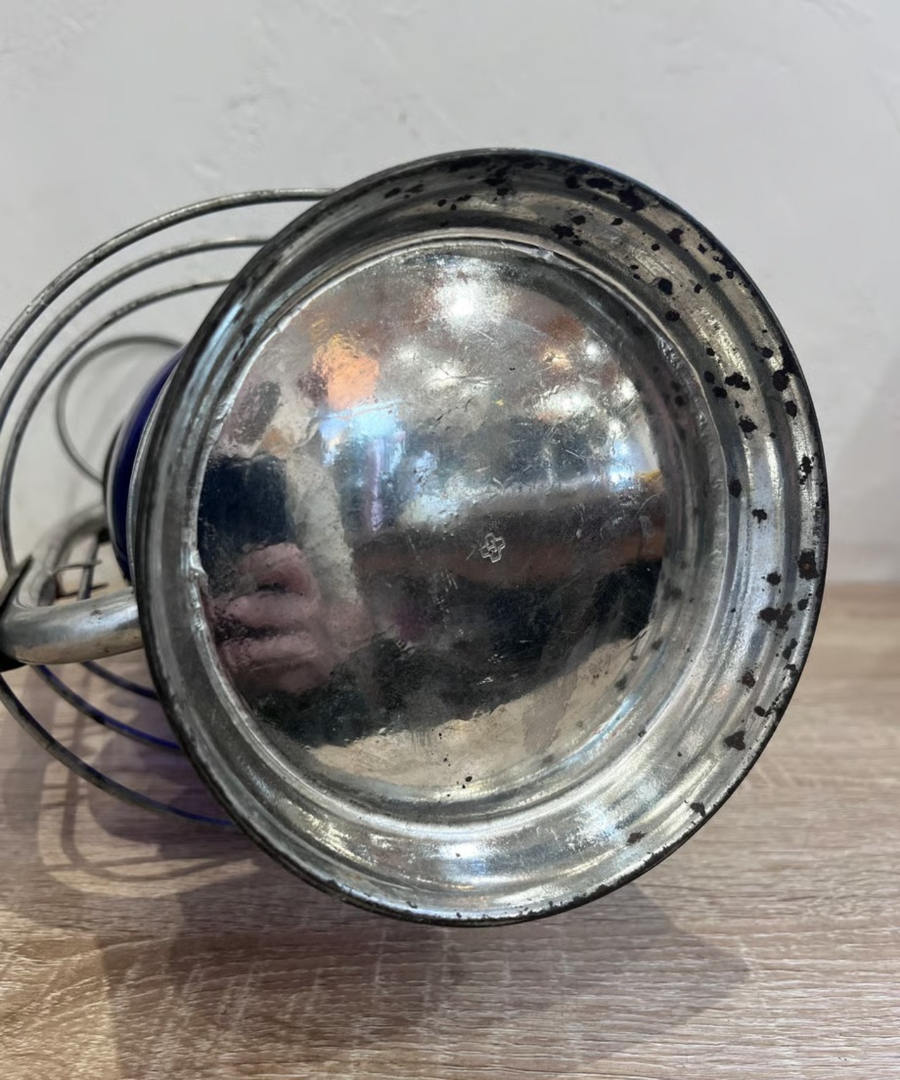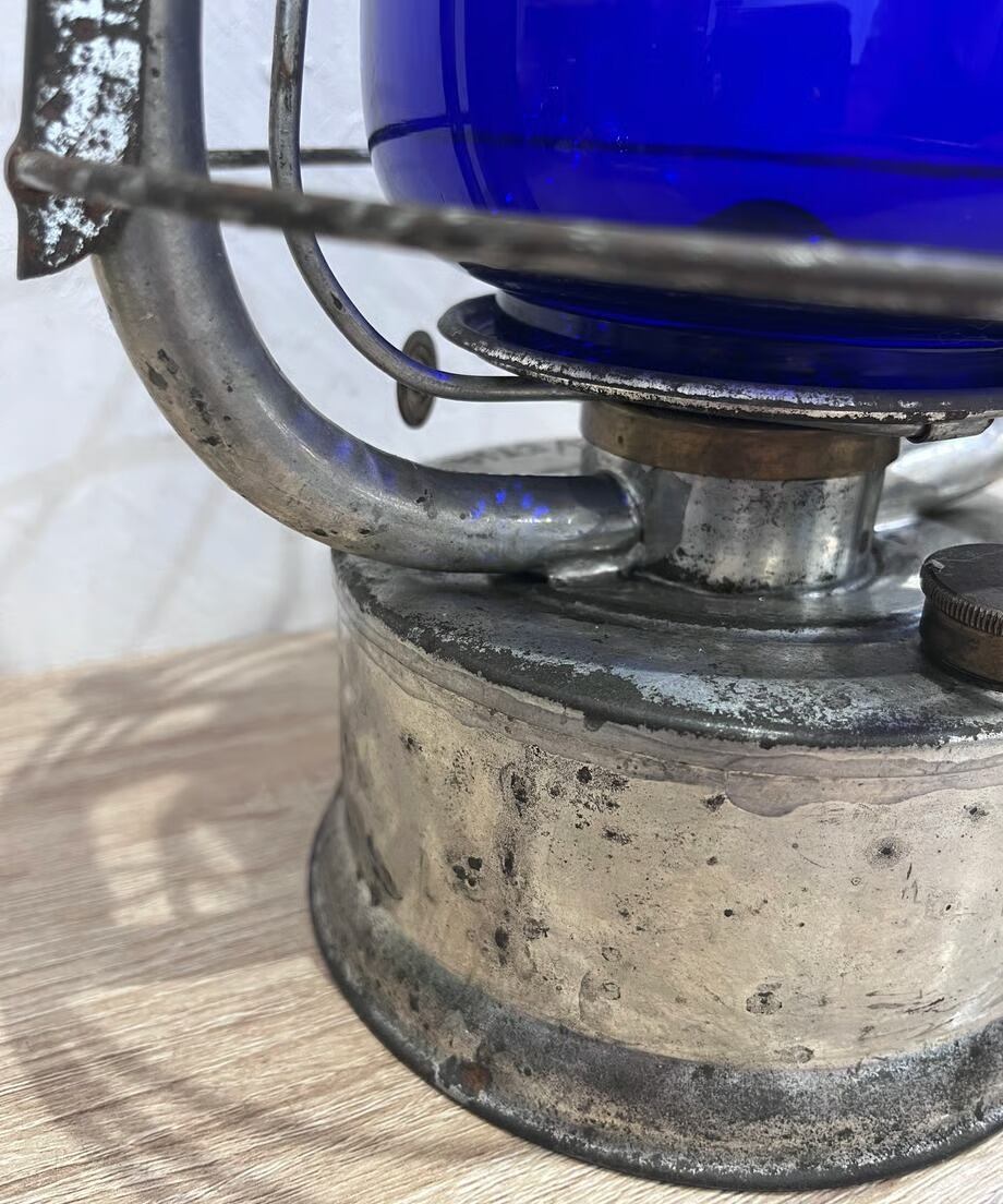 ホヤはオリジナルのブルーです。点灯するとランタンの周りにできるオレンジのリングがとても素敵です。