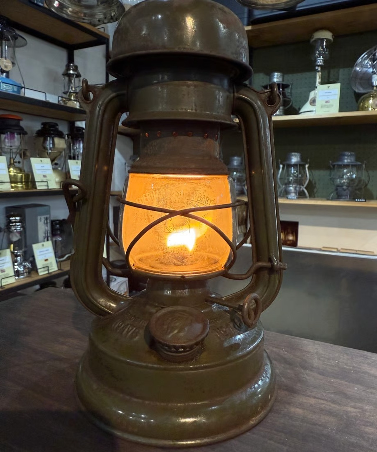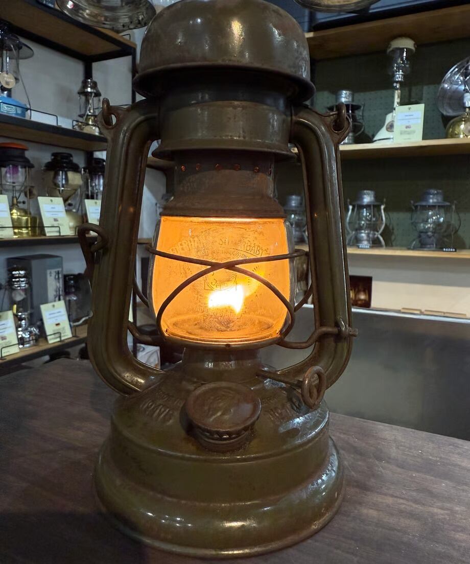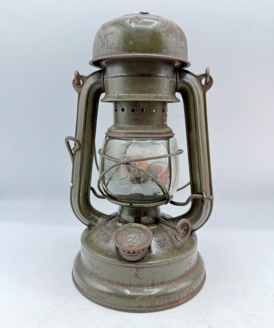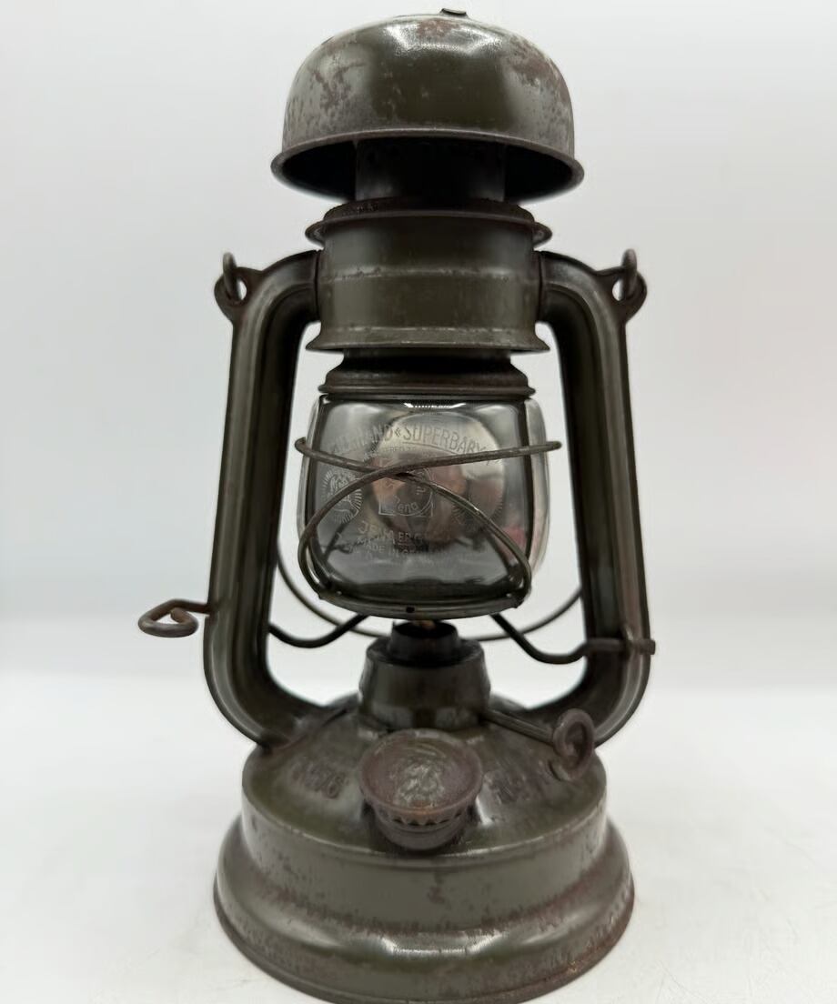 全てオリジナルのフュアハンド No.176e 第二次世界大戦時ドイツ軍が使用していたモデルで上空からランタンの明かりが漏れないようにトップが傘のような形状でマッシュルームヘッドと呼ばれています。