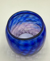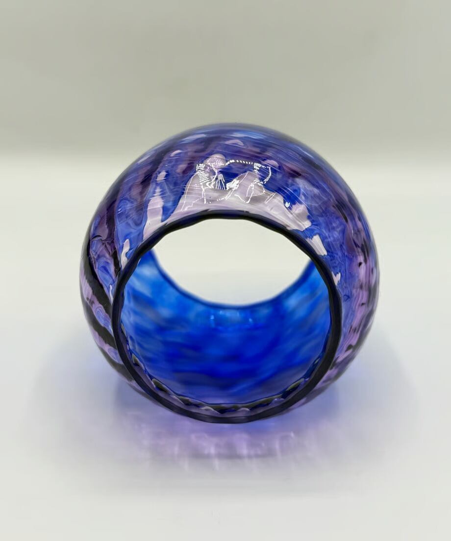 上部にはブルー、そして下部にパープルのカラーを捻ってマーブルにしたようなカラーリングです。そして中央にはホワイトチップを散りばめていて火を灯してみると宝石のサファイアのように輝きます。