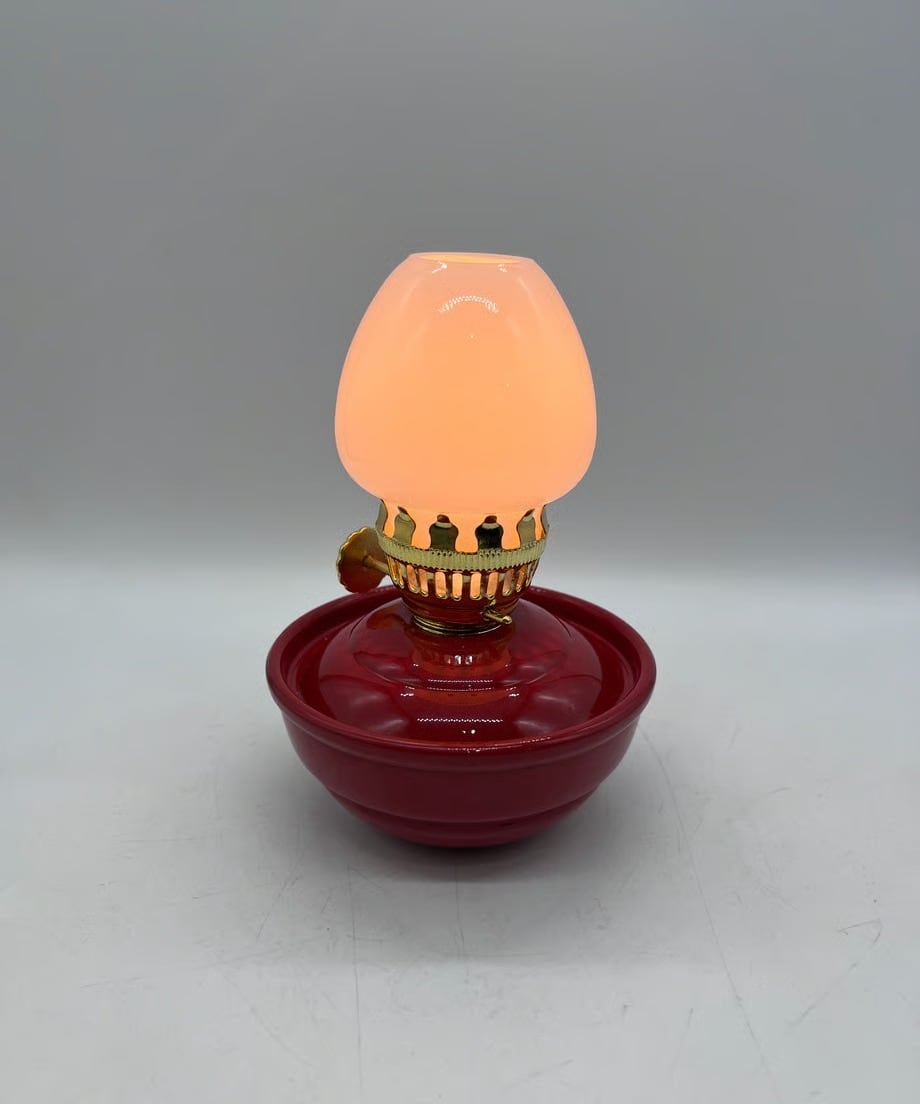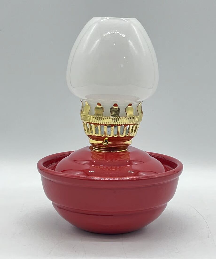 このランプの特徴は燃料タンクの下半分程に砂利が入っていて倒れても起き上がる仕組みになっています。この復刻版もしっかり砂利が入ってます。当時はこの可愛さから、また安全から子供部屋でよく使われていました。