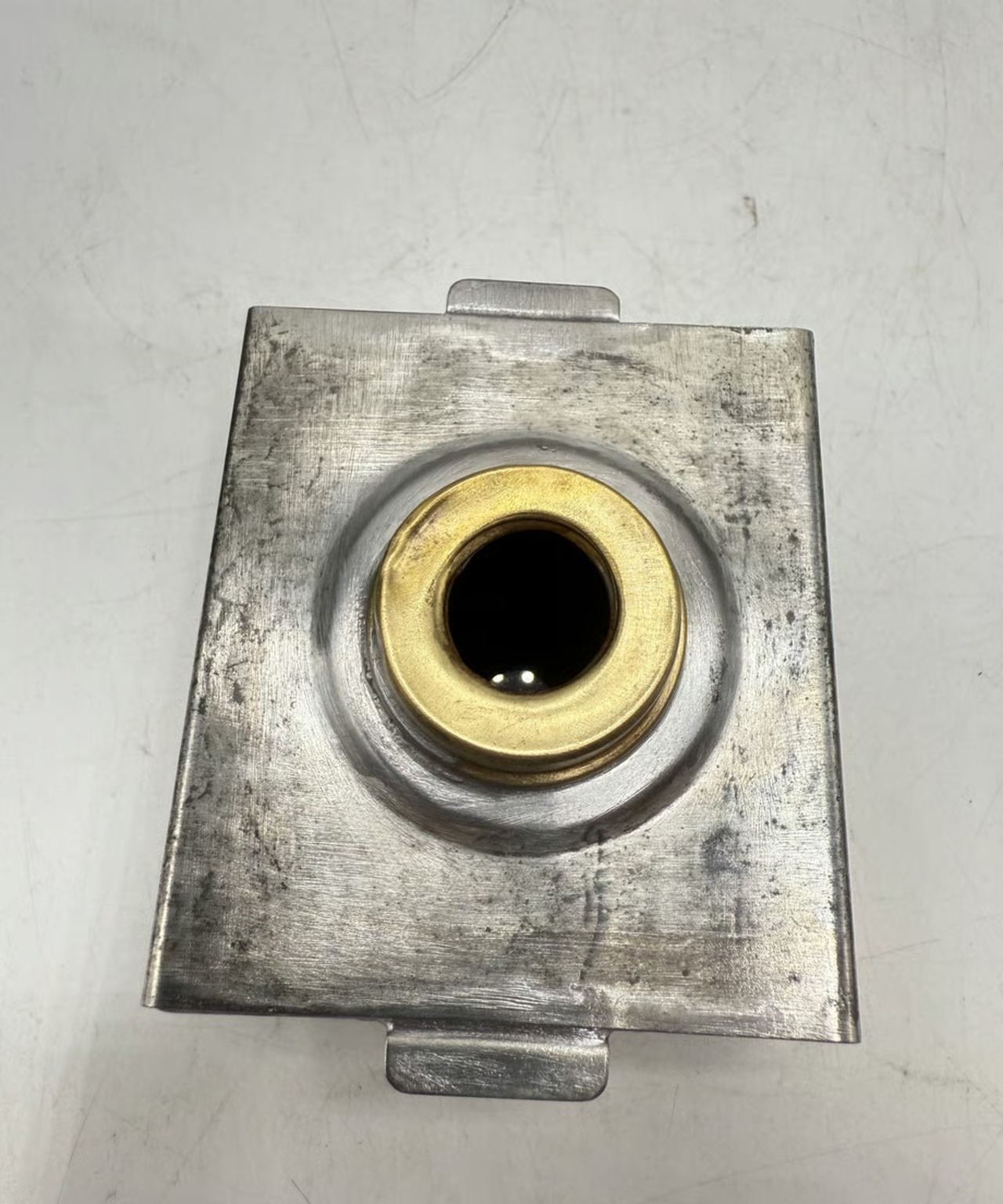 4面のうち後ろ側が開きます。中にはオイルポットとバーナー部があり芯は丸芯です。また後ろ側にはザック等に取り付けられるようなフックが備わっています。