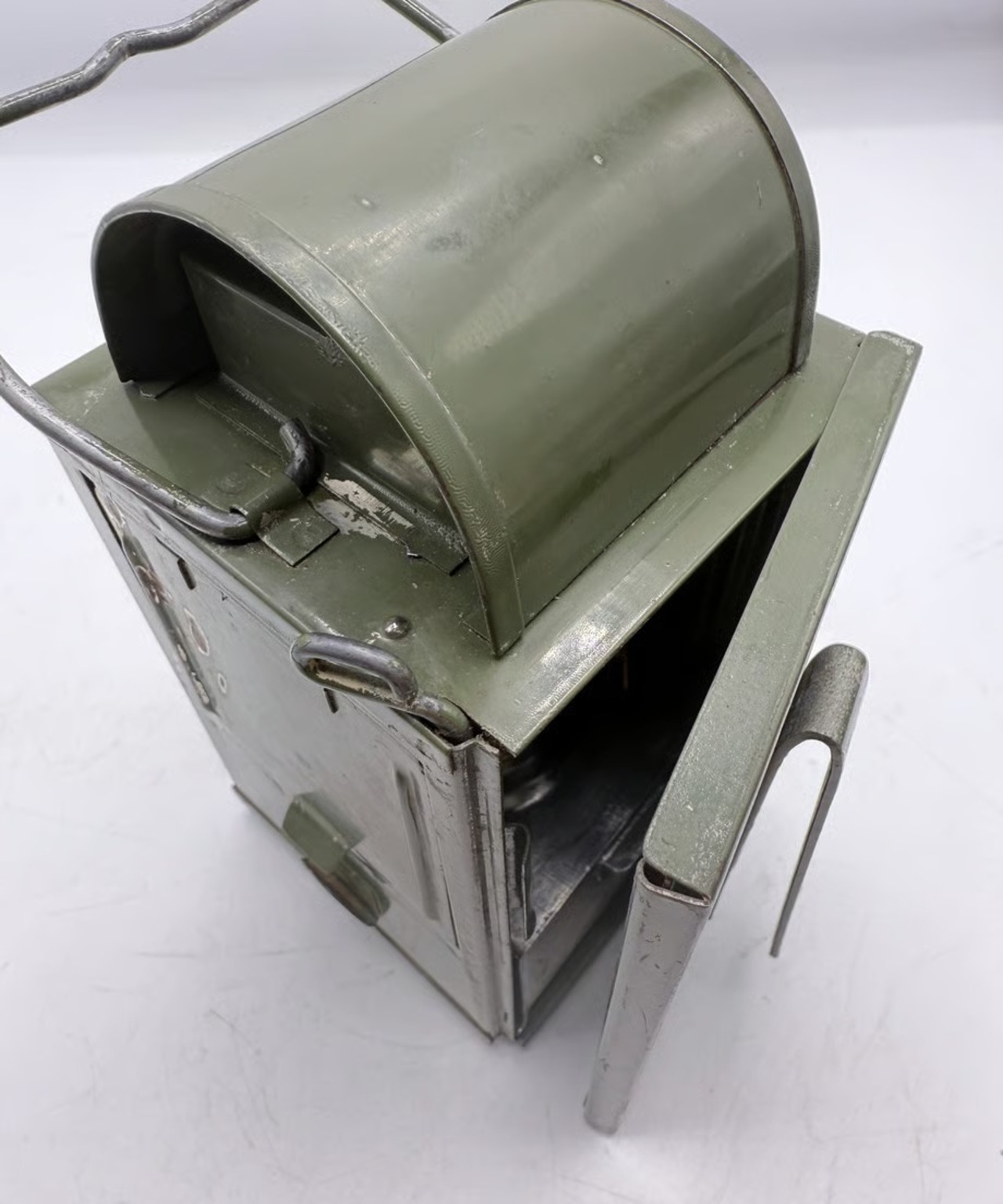 ヨーロッパの軍用ランタンとなります。どこの国なのかは情報が少なく決定的な情報がありません。前オーナーに聞くとベルギー、フランス、スイス軍用という話ですが、全く同じモデルを各国で使用していたのか等疑問が残ります。