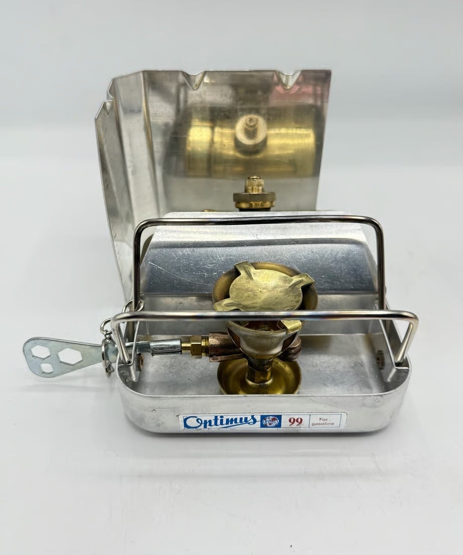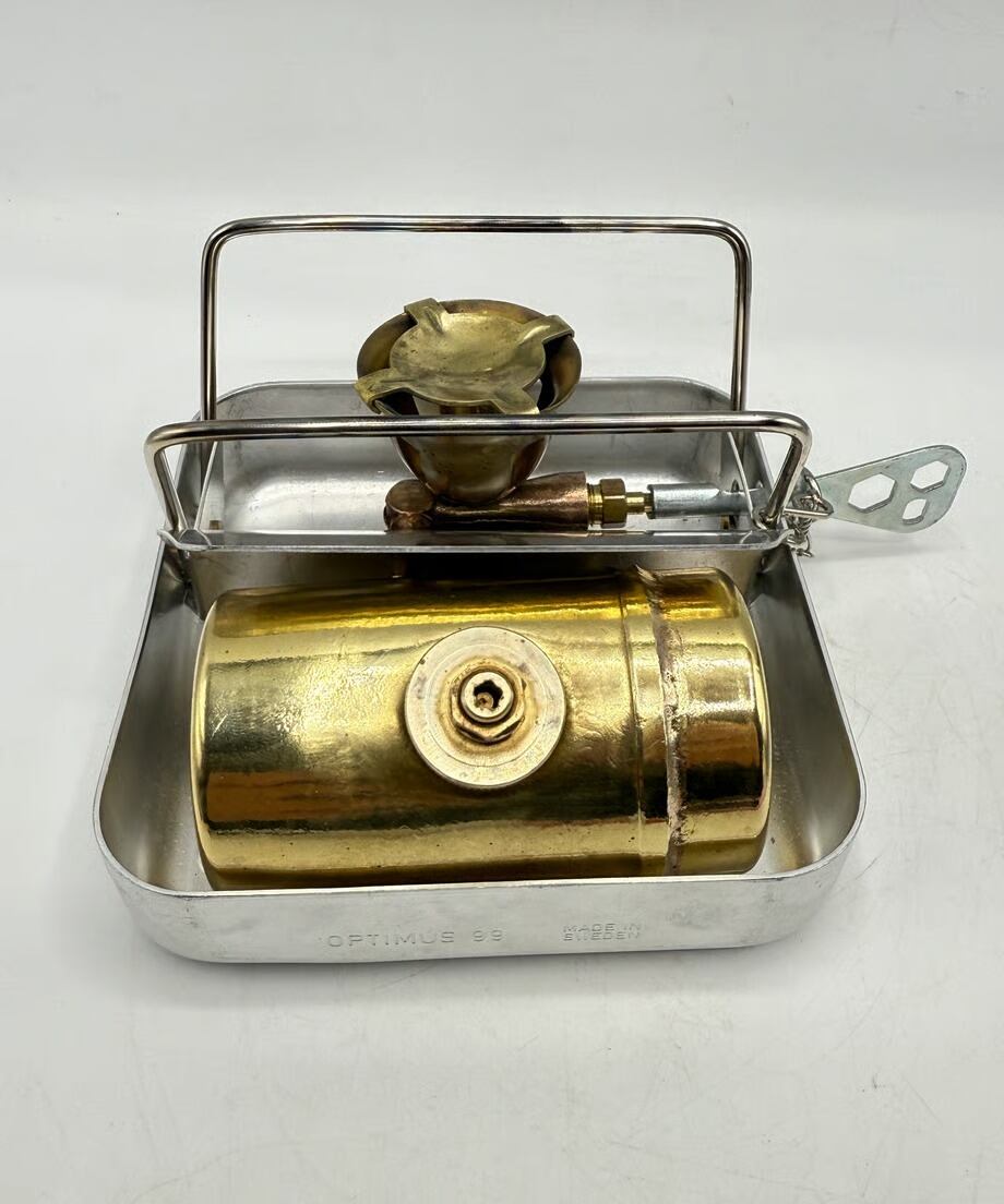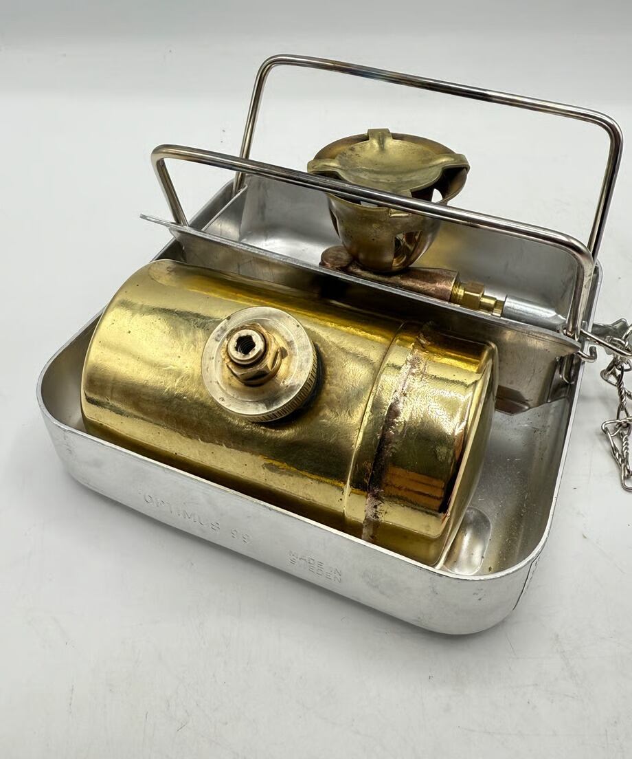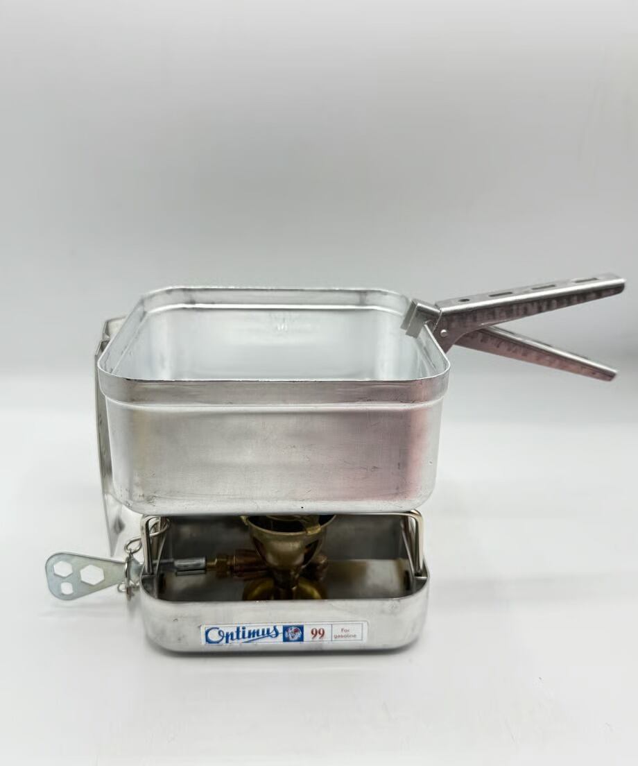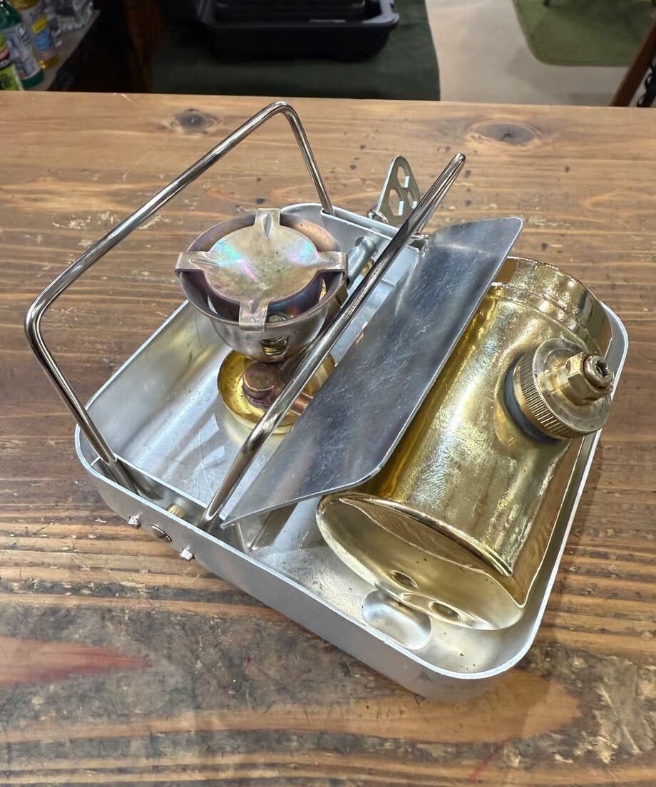 今回の個体は99の後継機で、タンクガード等のデザインが違います。箱部はアルミの為軽量です。また蓋部分がコッヘルになっている為お湯を沸かしたり簡単な料理もできるでしょう。ソロキャンパーさんにおすすめですね。
