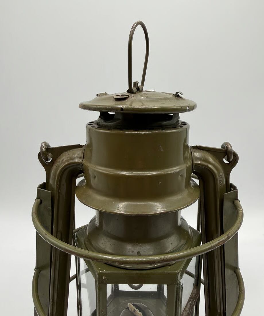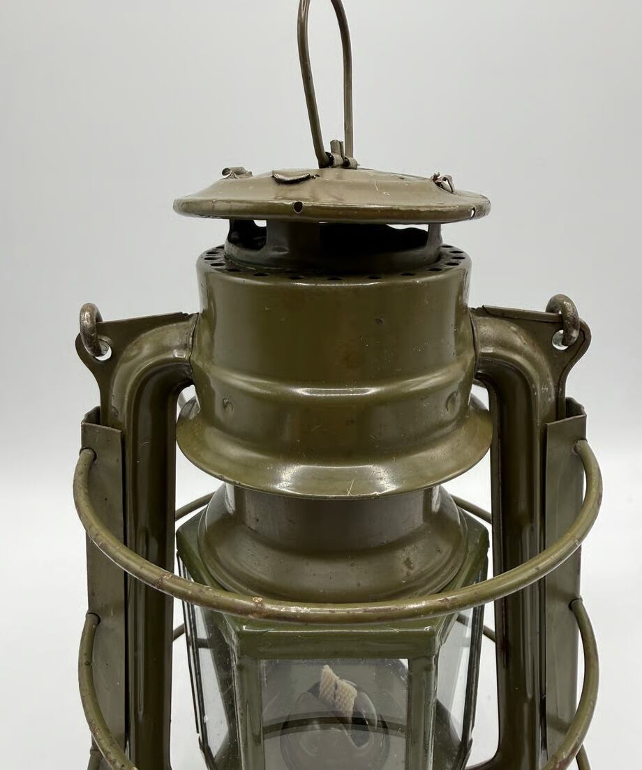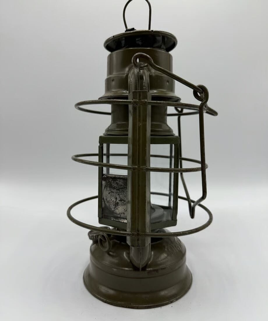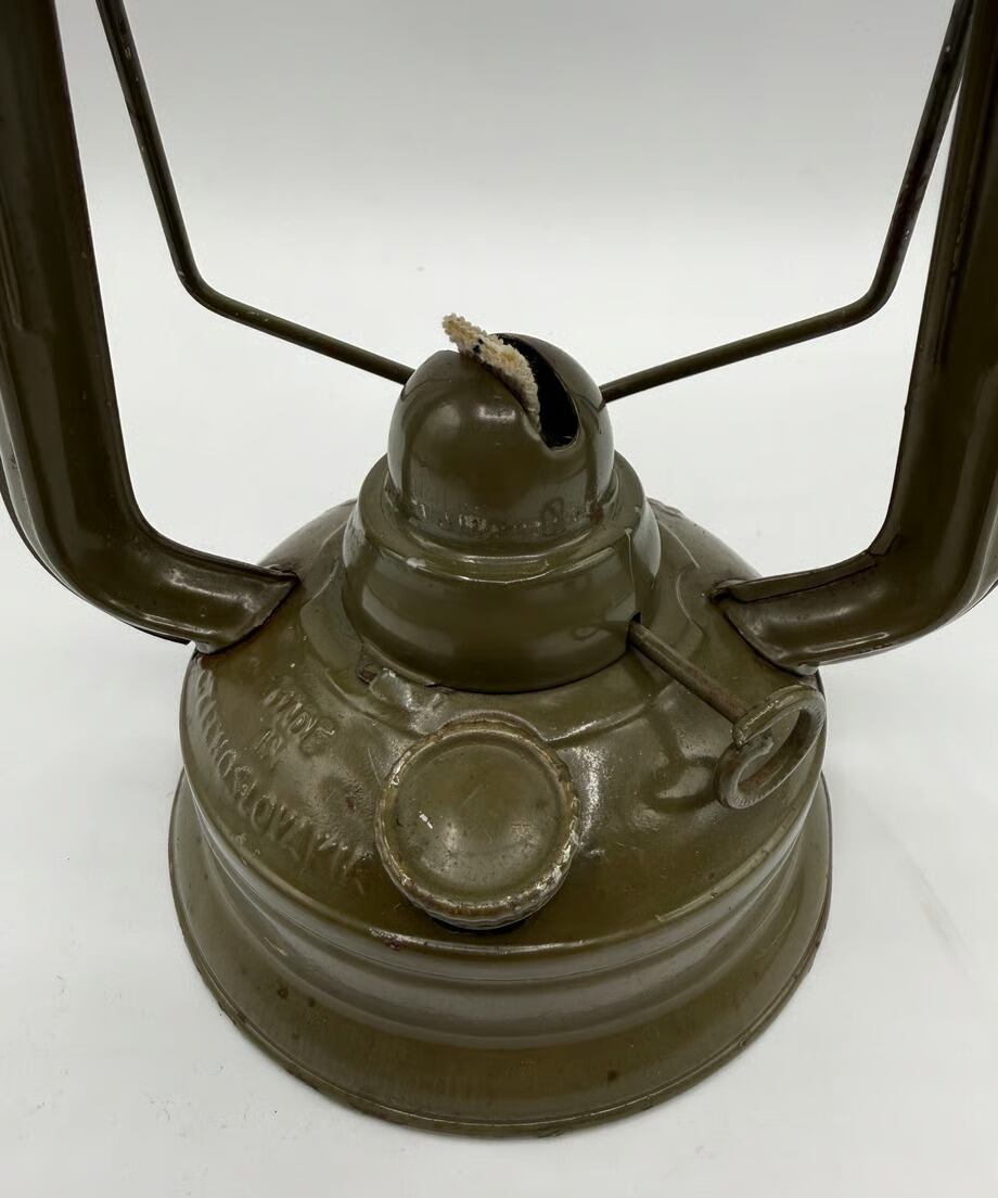 チェコスロバキア軍用として国内製造のミリタリーモデル。このランタンの特徴はホヤガラスです。6枚の平面ガラスでできています。点灯する時にリフトアップレバーはありません。ガラスの1枚に窓があり、そこを開けて着火する仕組みです。