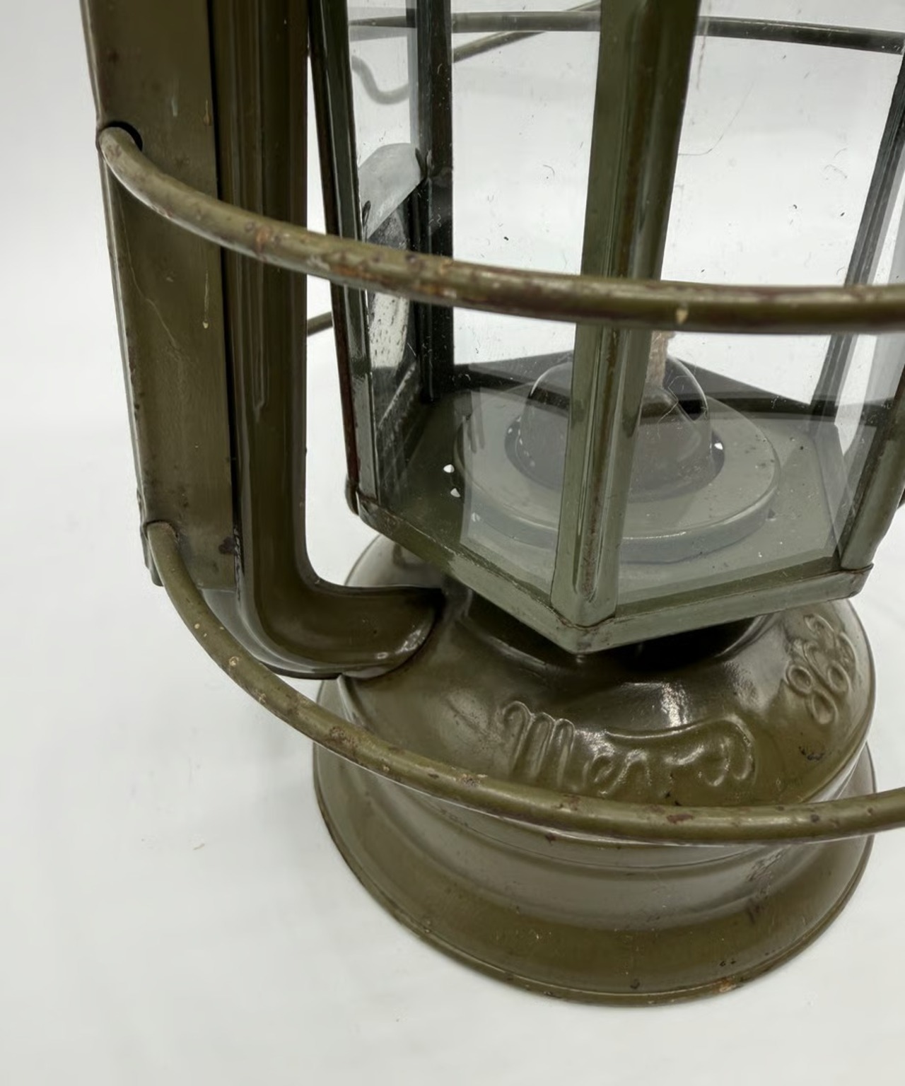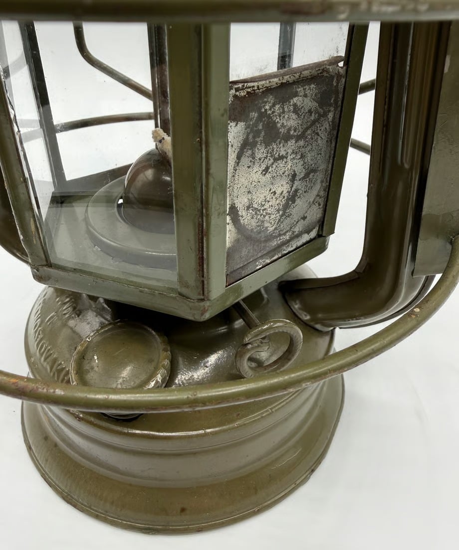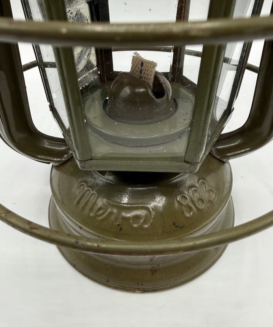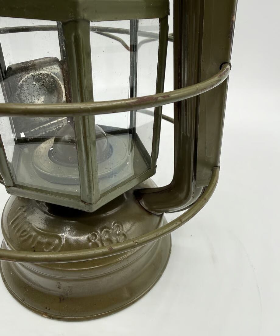 チェコスロバキア軍用として国内製造のミリタリーモデル。このランタンの特徴はホヤガラスです。6枚の平面ガラスでできています。点灯する時にリフトアップレバーはありません。ガラスの1枚に窓があり、そこを開けて着火する仕組みです。