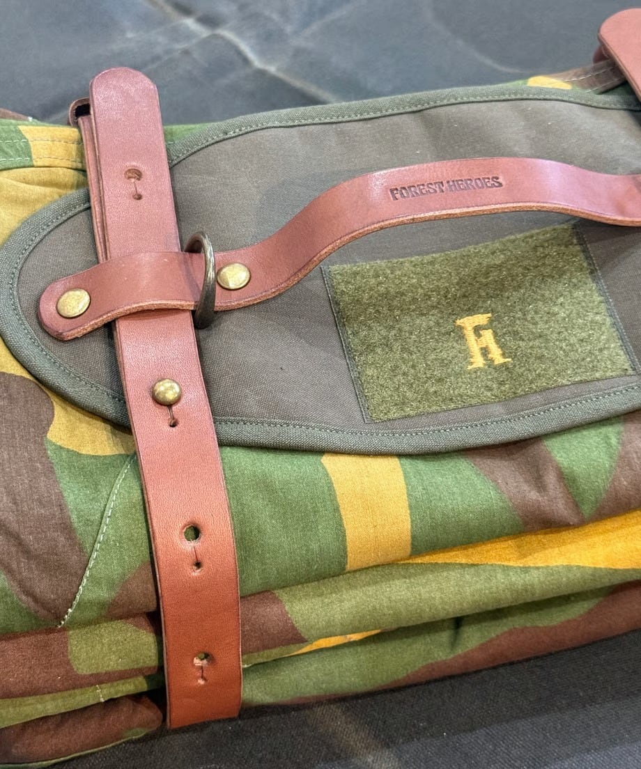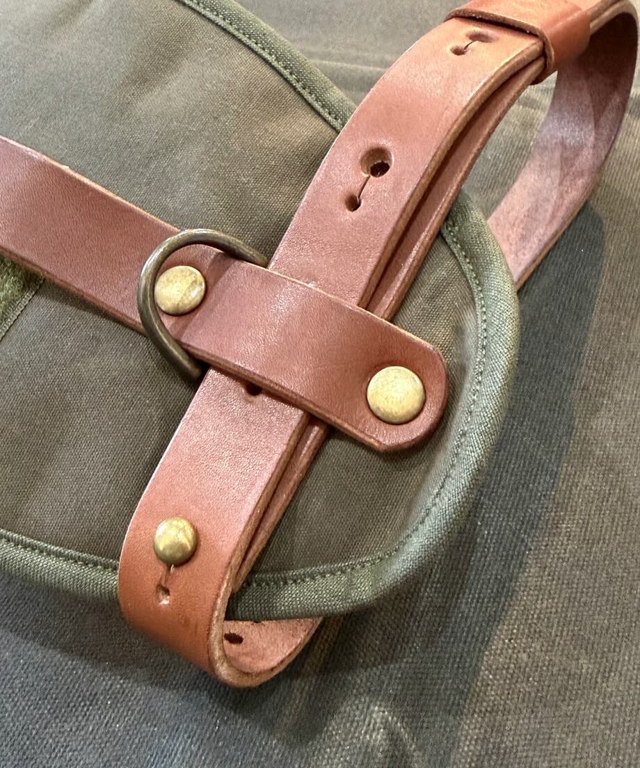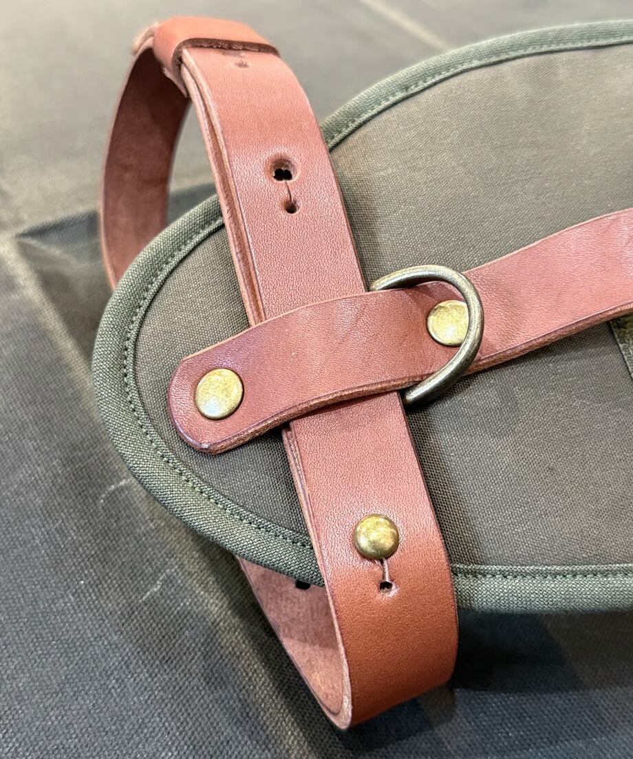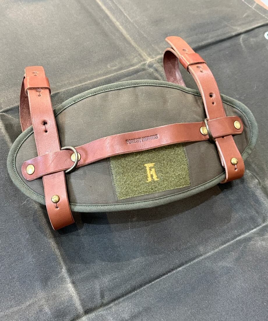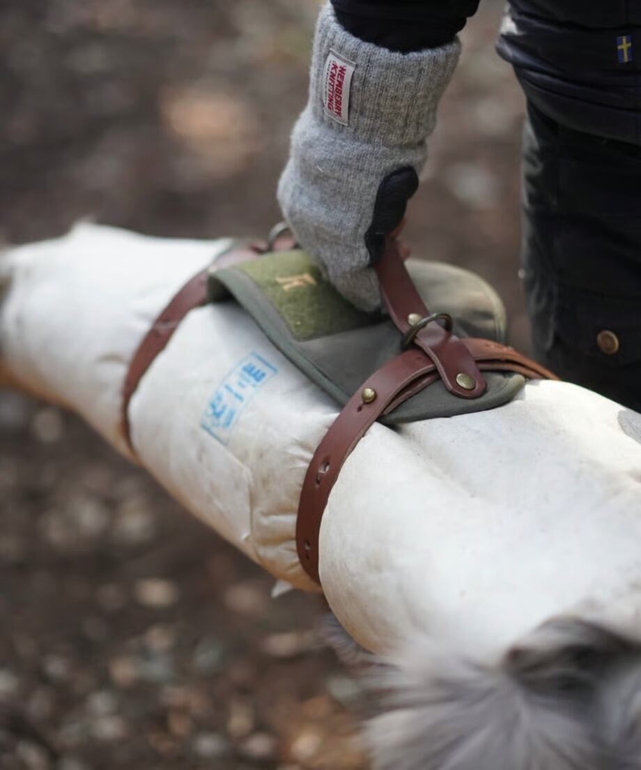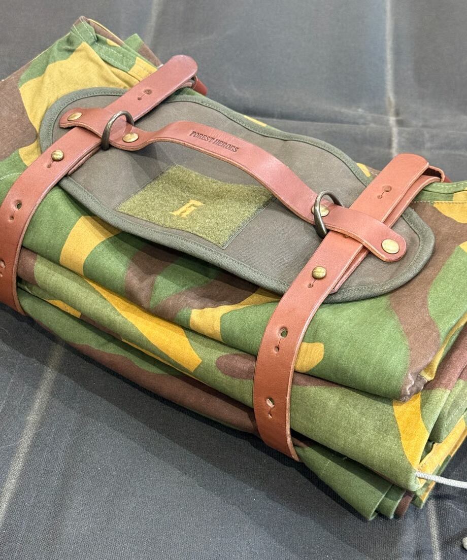 大きいトナカイファーをくるんでベルトで留めて持ち運びができるベルトとなります。トナカイファーは軍幕によく似合う為、無骨な商品を製作しているFOREST HEROESさんに依頼して誕生した商品です。