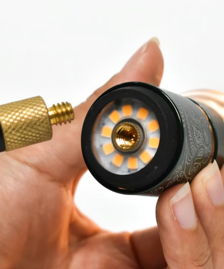 また、片手で操作できるダイヤル式の無段階調光システムを採用。