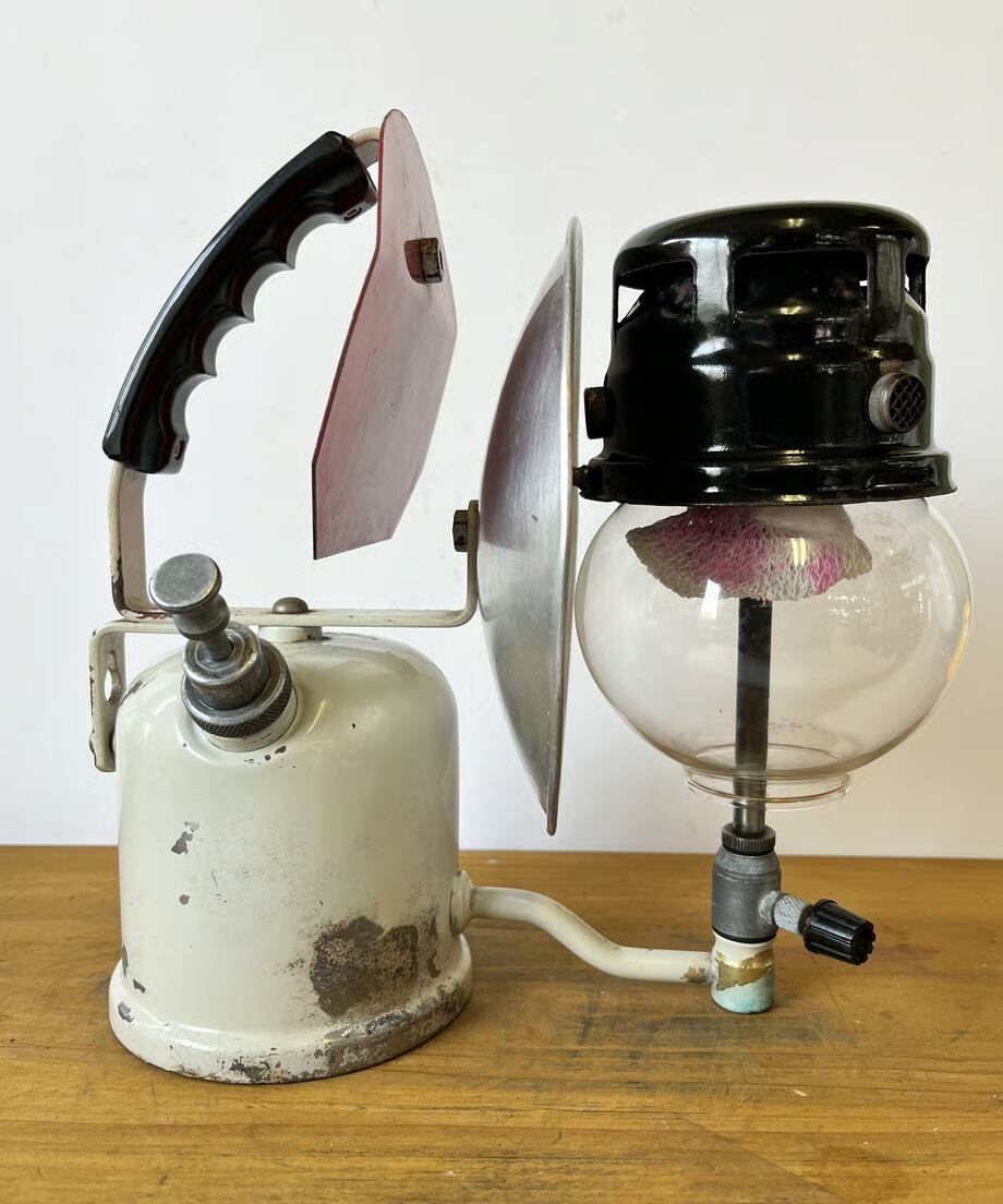 点灯に必要なヒートトーチ&瓶、さらにマントル2枚と燃料用アルコールが入ったスターターセット。別売での販売となります。