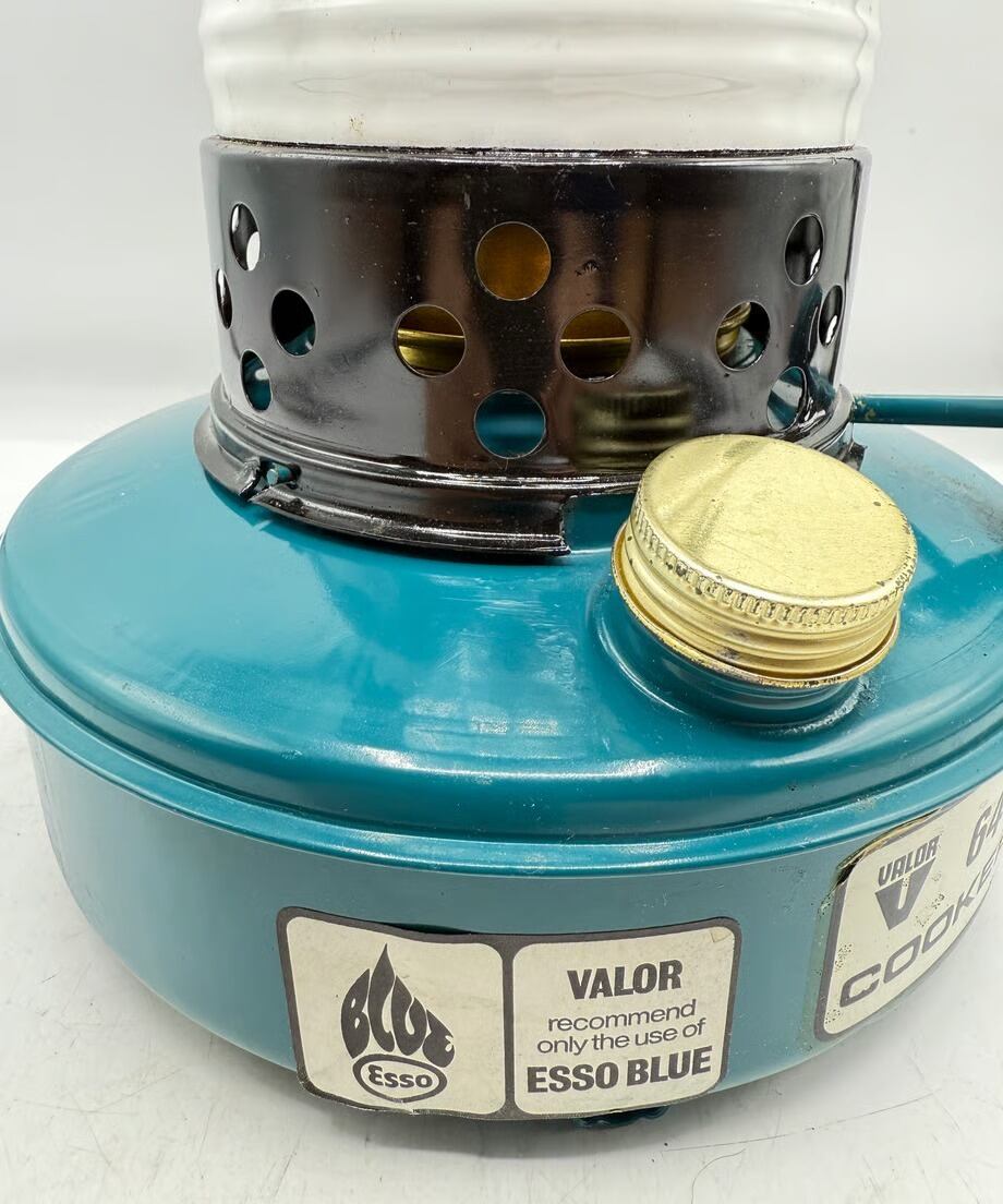 英国メーカーVALORの小型ストーブ、高さ約31cm・タンク直径約20cm。