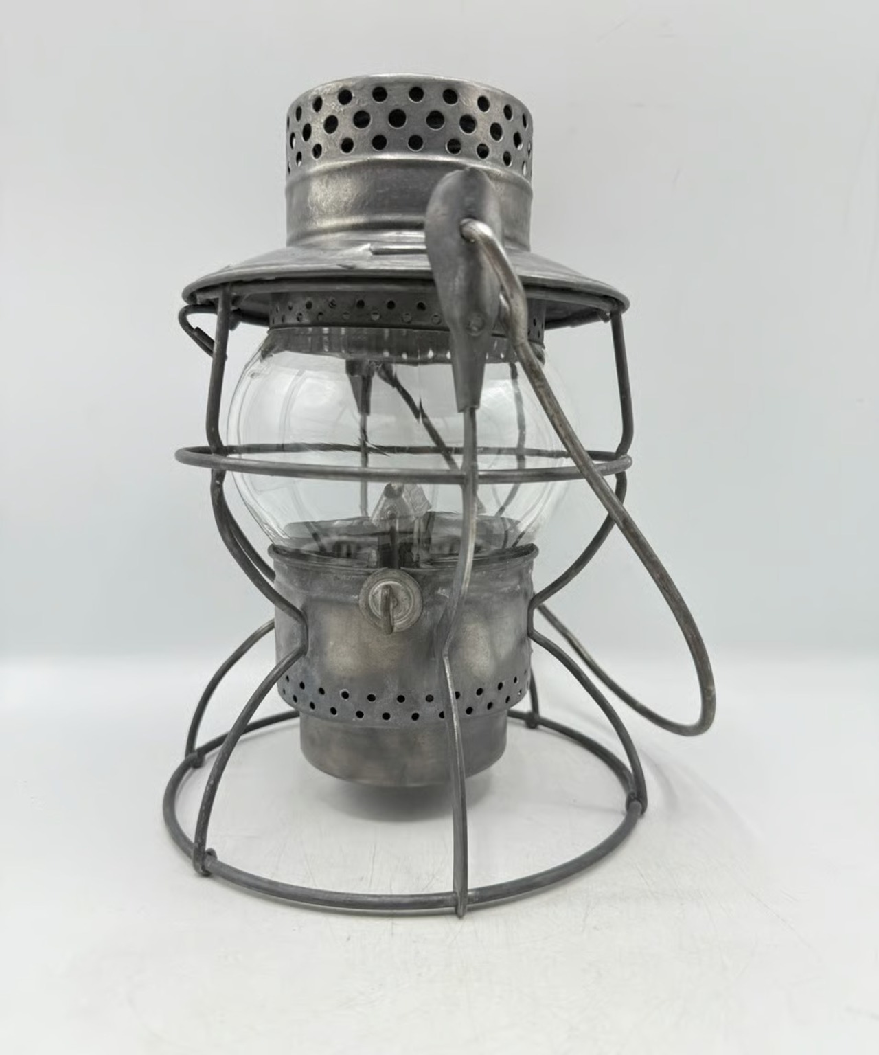 現在でも人気Dietz(デイツ)のアメリカ鉄道用ランタンとなります。N.Y.C.Sはニューヨーク・セントラル鉄道所有のもので、ホヤガラスはクリアとなります。サイズはほぼアドレイクケロと同じでガラスも同サイズです。