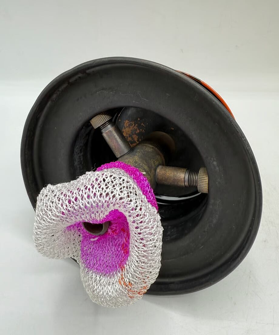 ポークパイも年代によってフレームやトップフードのデザインが違います。こちらは初期の初期型でハンドルの長さが短いタイプ。あまりに短い為ハンドルを持つ手が焼けてしまう為改良されハンドルが長くなったものが次期のモデルです。フレームは真鍮で後期型になると鉄に変わる為後期になるとフレームが錆びてるものが多くなります。
