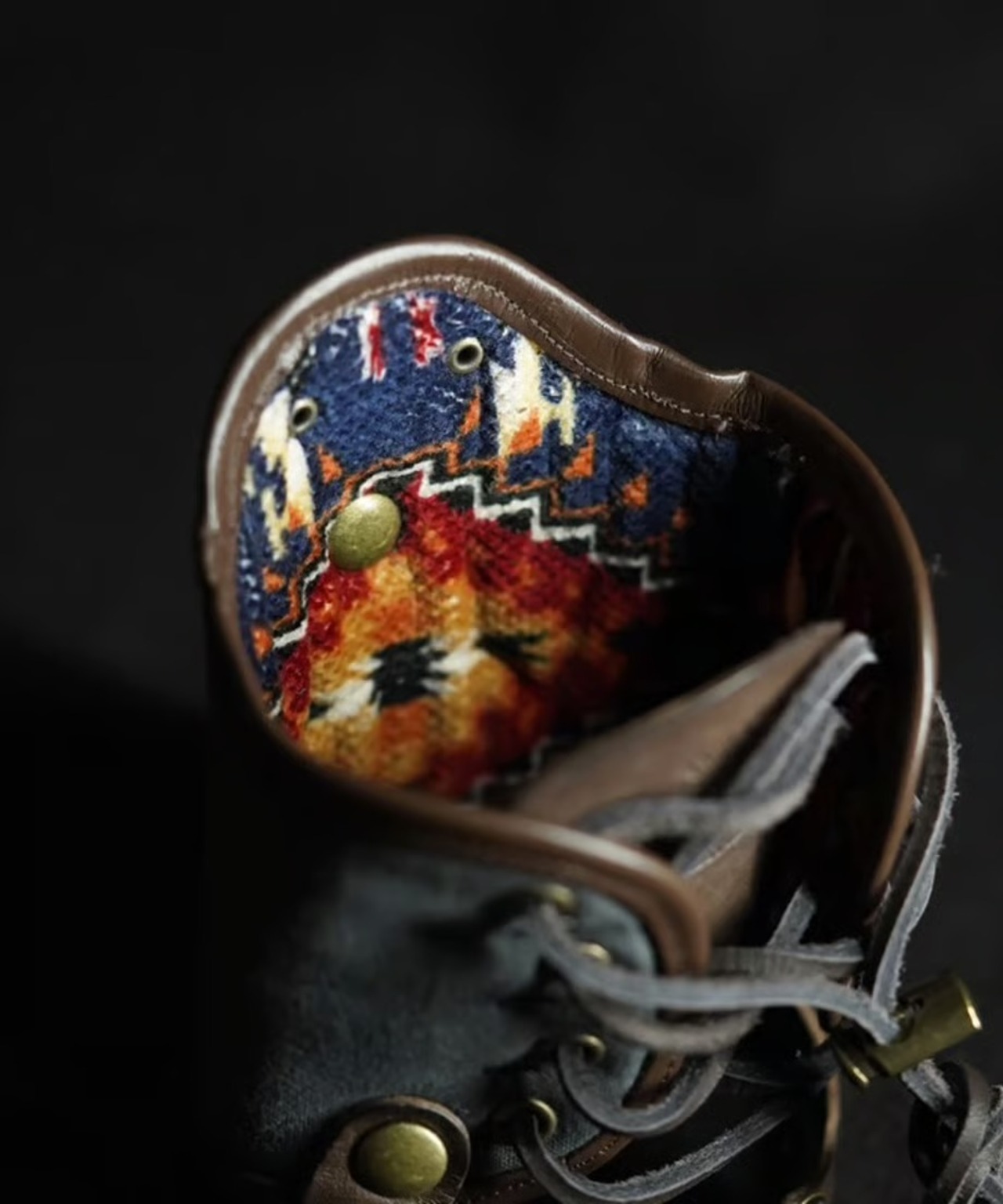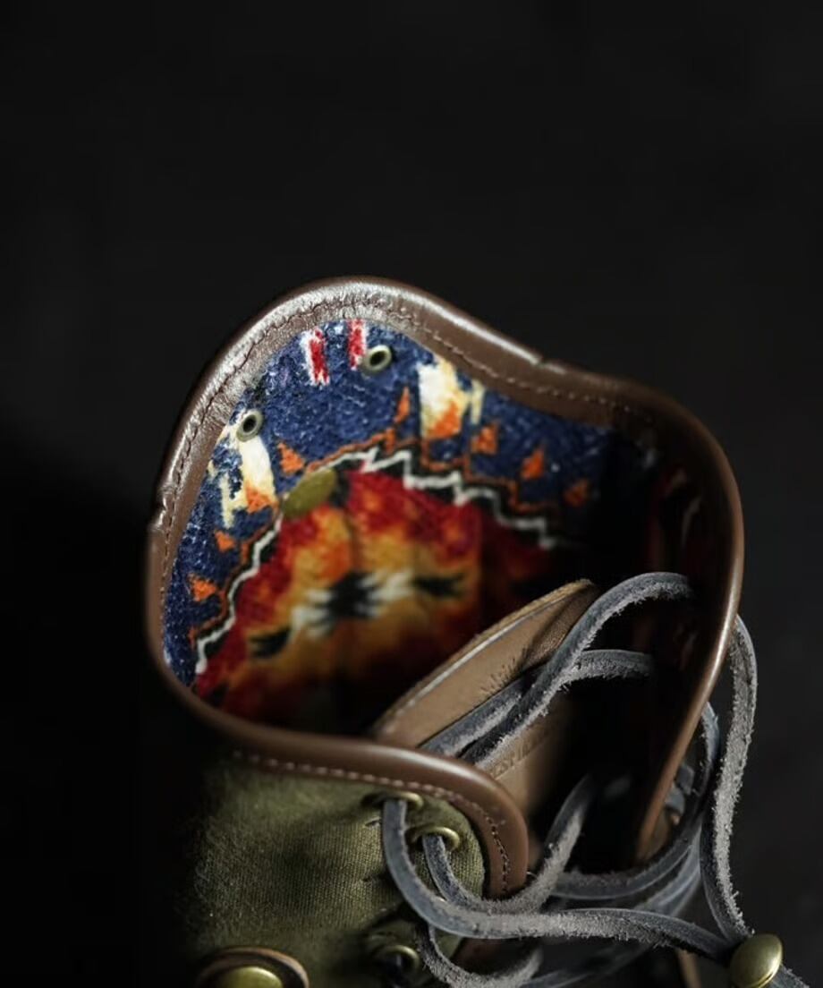 本革のパイピング加工と内生地にコットン100%ネイティブ柄のコーデュロイ生地を採用し、ビンテージランタンに相応しいウェアーに仕上げました。さらに背面にシリアルナンバーを刻印し、このウェアーもランタンと一緒に受け継がれていければ幸いです。