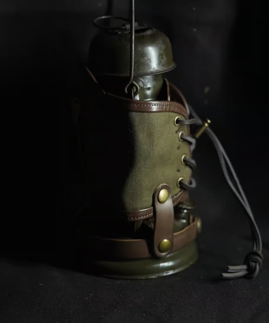 本革のパイピング加工と内生地にコットン100%ネイティブ柄のコーデュロイ生地を採用し、ビンテージランタンに相応しいウェアーに仕上げました。さらに背面にシリアルナンバーを刻印し、このウェアーもランタンと一緒に受け継がれていければ幸いです。