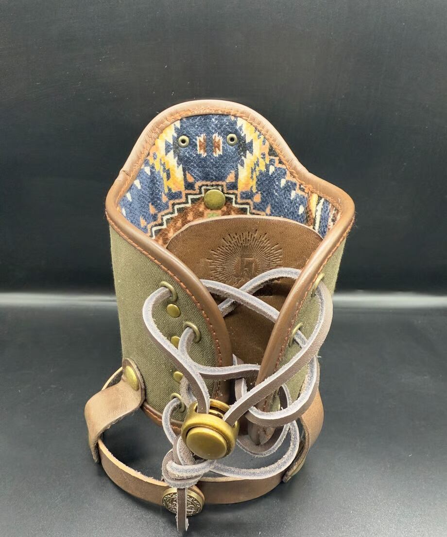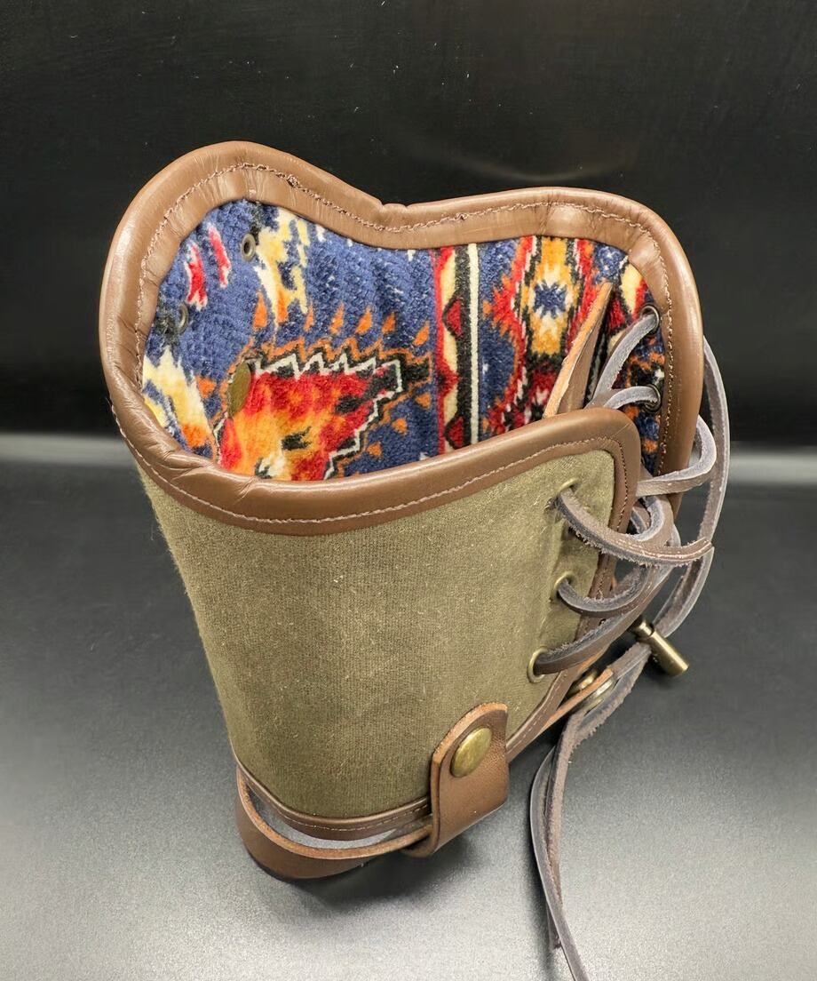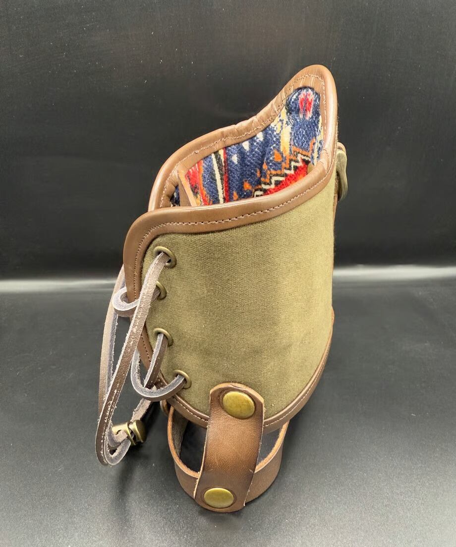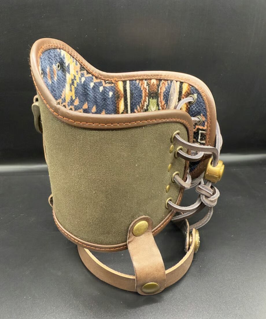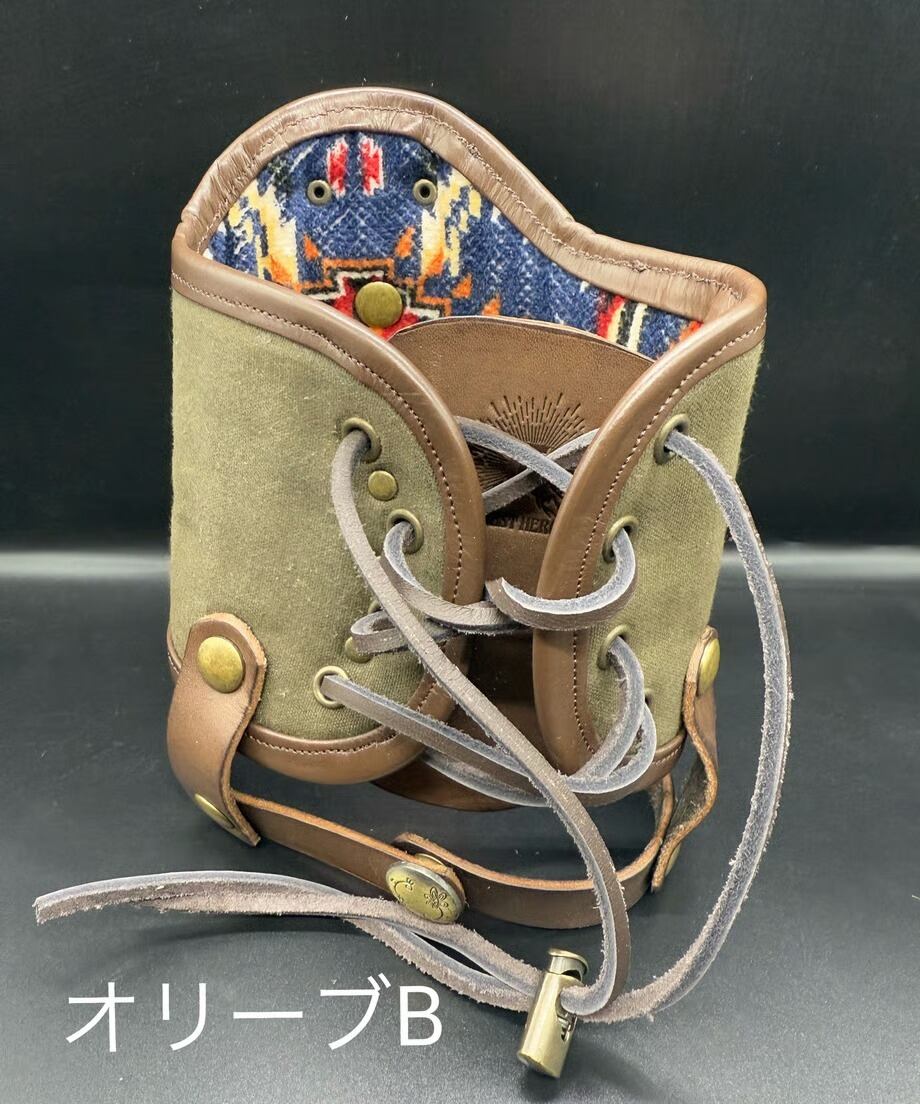 本革のパイピング加工と内生地にコットン100%ネイティブ柄のコーデュロイ生地を採用し、ビンテージランタンに相応しいウェアーに仕上げました。さらに背面にシリアルナンバーを刻印し、このウェアーもランタンと一緒に受け継がれていければ幸いです。