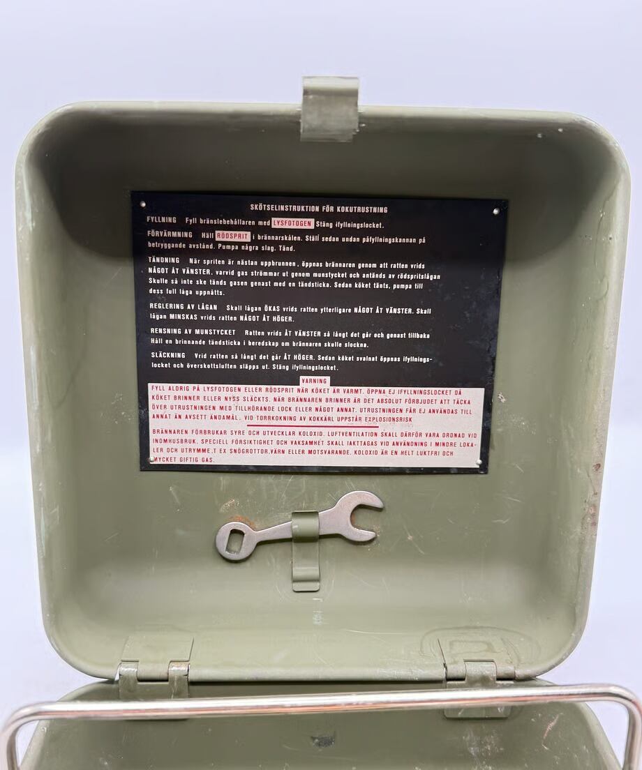 外箱にスウェーデン軍用の証スリークラウンの表示あります。
