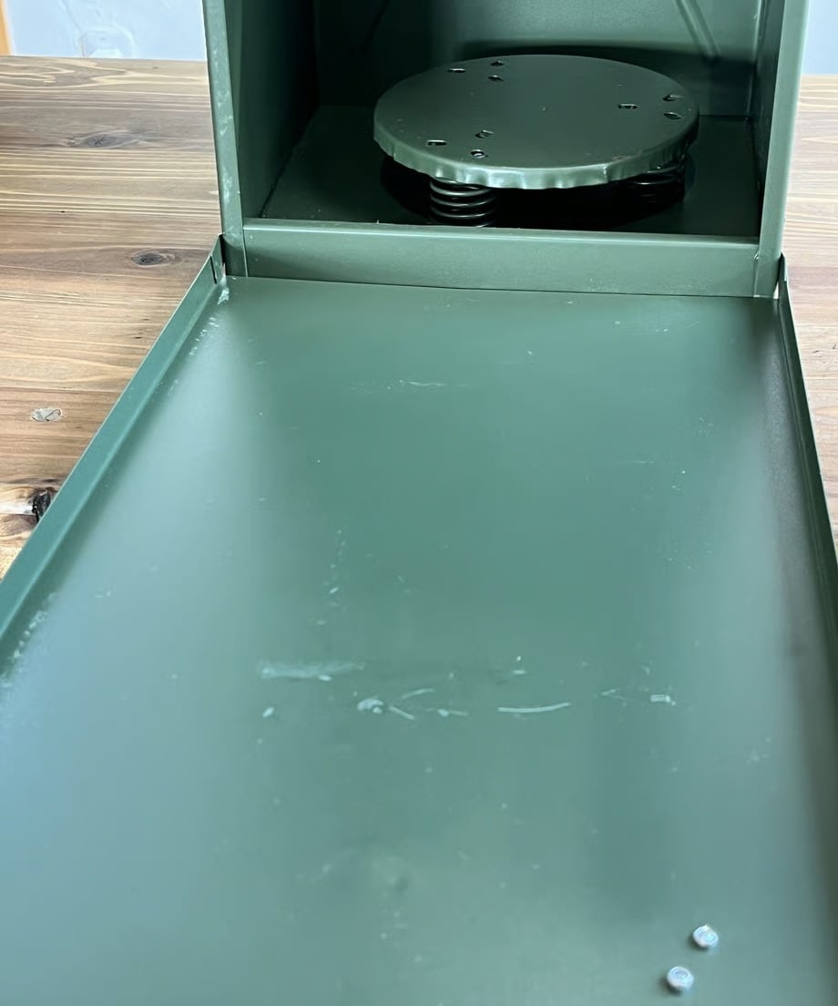 軍用だけあってしっかりとした頑丈なランタンケースで蓋の内側とケース底にバネがあり、HK500を上下から押さえて運搬するためキャンプへの運搬時にも最適。