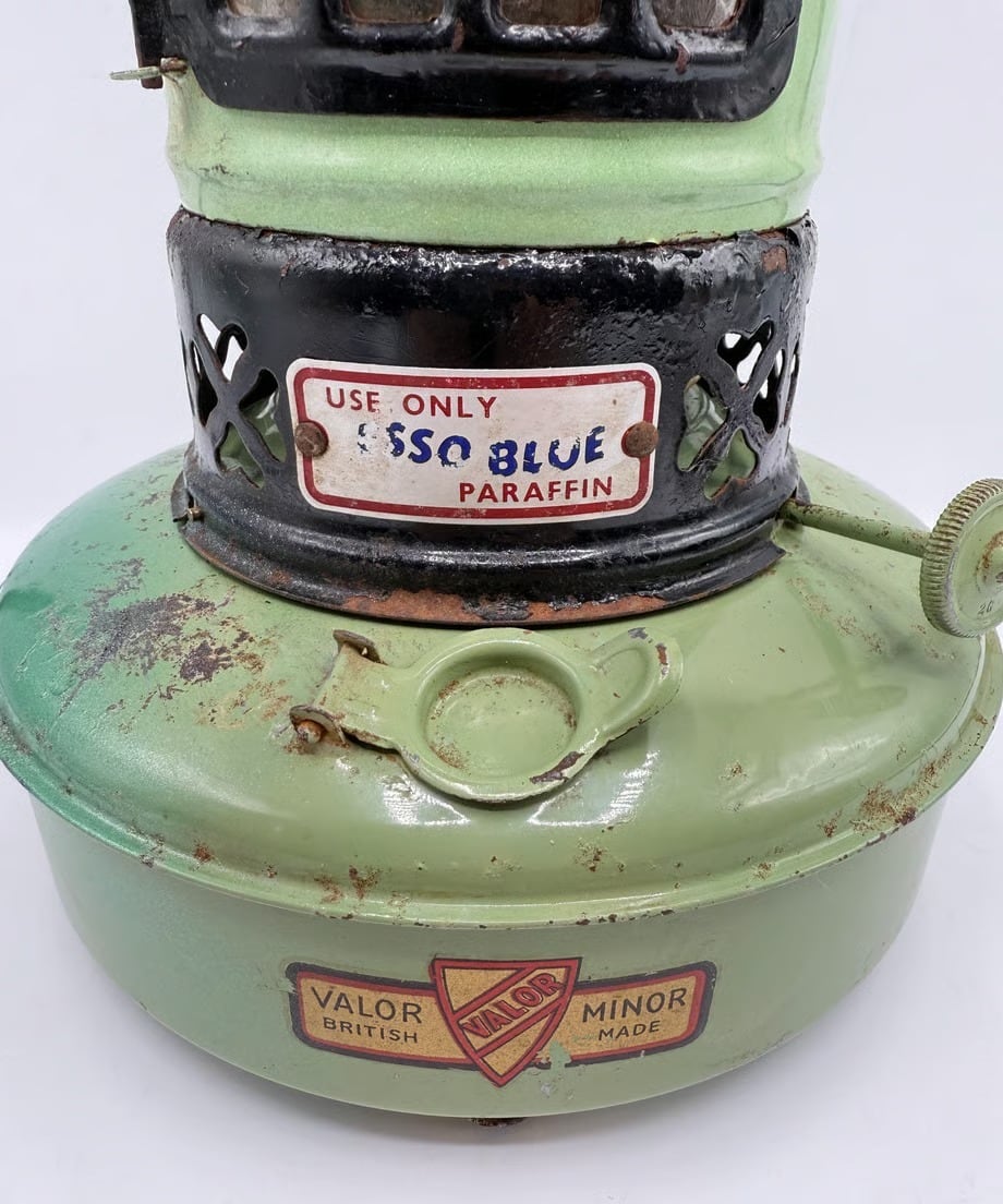 英国メーカーVALORの小型ストーブ、高さ約31cm・タンク直径約20cm。