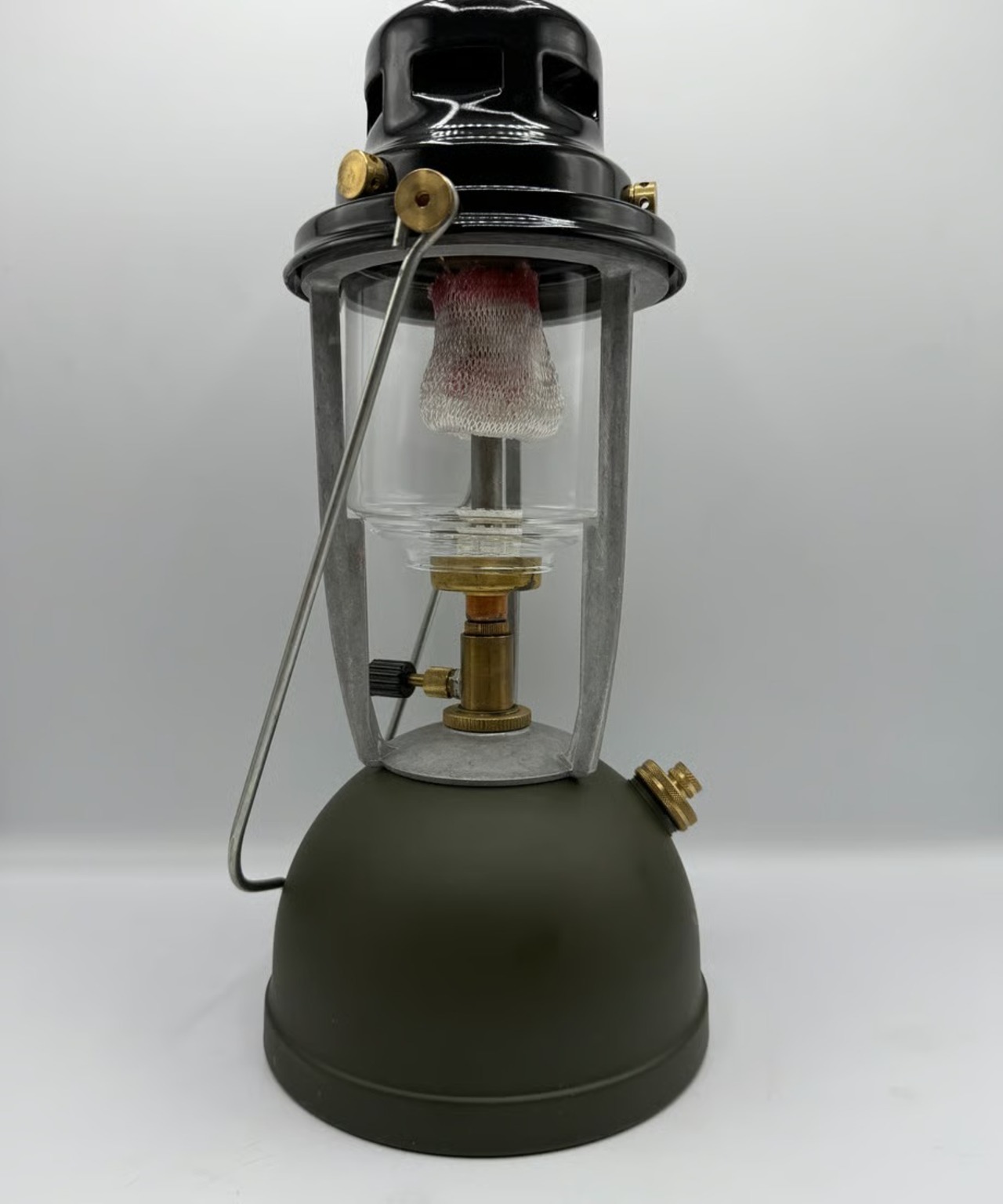ミリタリーモデルの塗装は弱く新品でも塗装剥がれの個体が多いランタンですが、こちらの個体はハンドルの当たる部分に小さな剥がれがある程度でとても綺麗なコンディションです。
