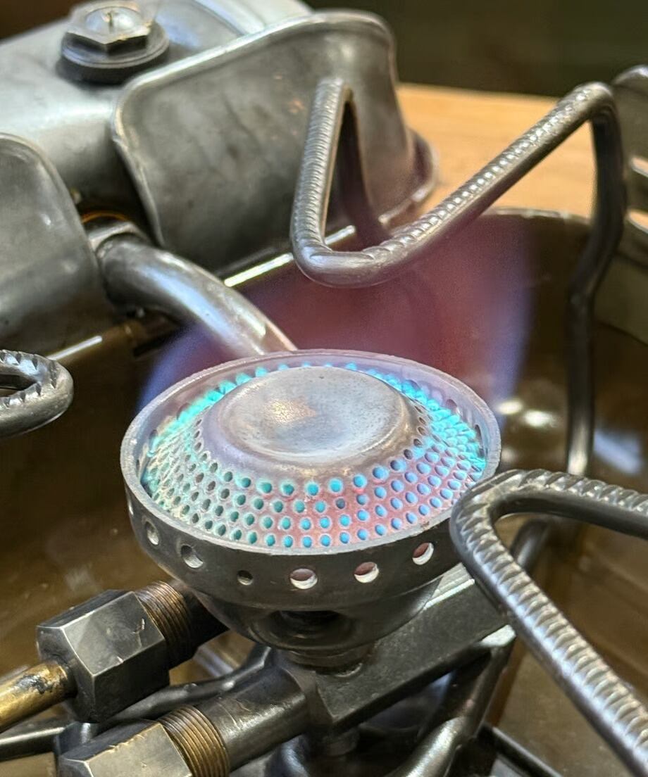 着火は加圧式ランタン同様プレヒートを行いながら燃焼させます。しかし燃料はホワイトガソリンの為灯油を燃料とするモデルよりプレヒートは短時間で大丈夫です。バルブは開けたままプレヒートを行い、ポンピングをしていき着火させます。