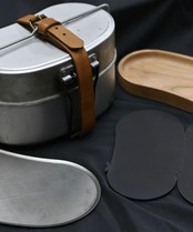 北海道の木工職人さんが手掛けた戦闘飯盒2型の中子にジャストインするカッティングボード兼お皿。