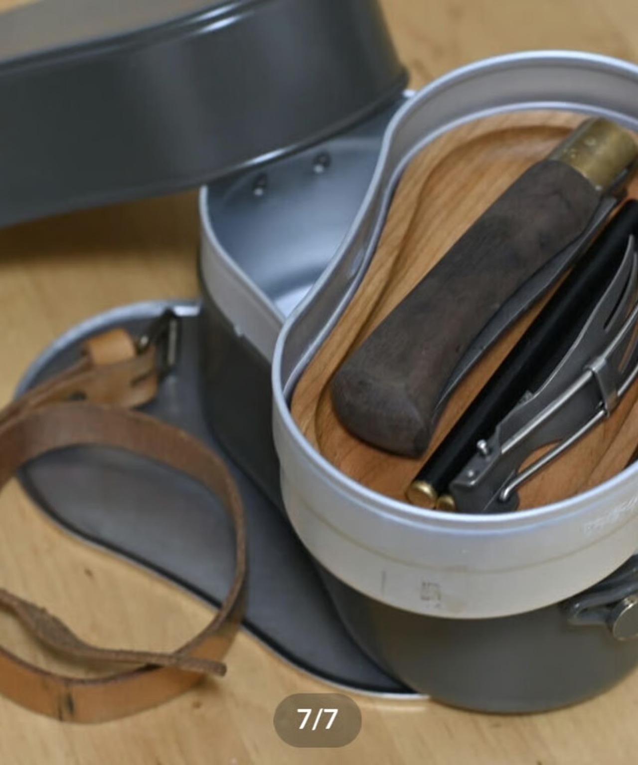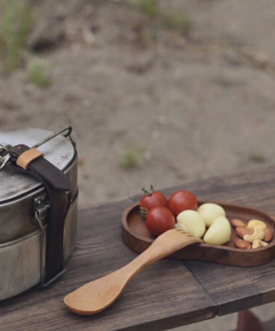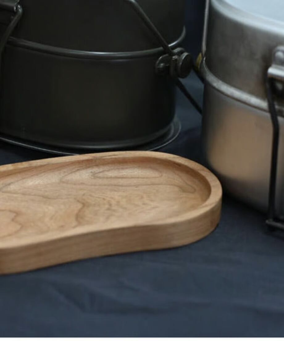 北海道の木工職人さんが手掛けた戦闘飯盒2型の中子にジャストインするカッティングボード兼お皿。