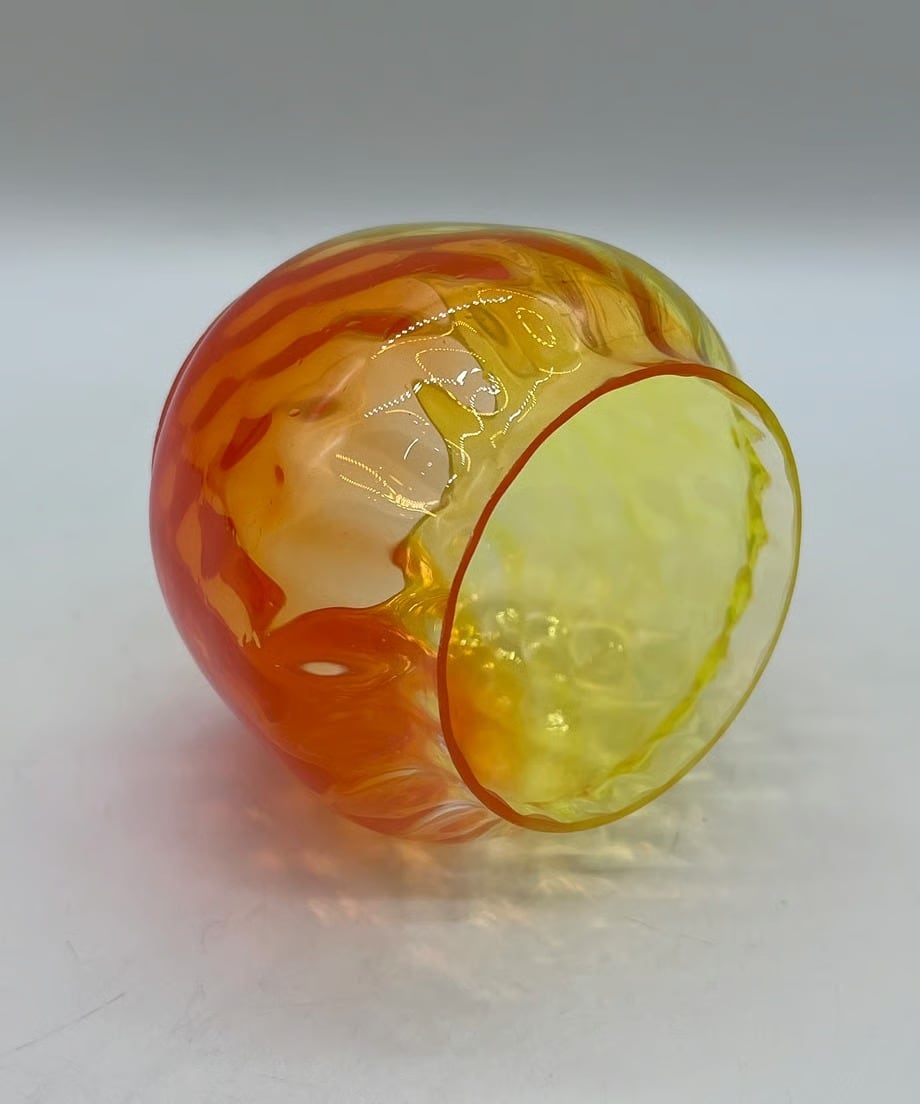 イエローとオレンジ2色を使った作品です。他カラーの中で最も明るい為、夜間点灯するとランタンを置いたテーブルにガラスと同じくイエローとオレンジ色に染まります。