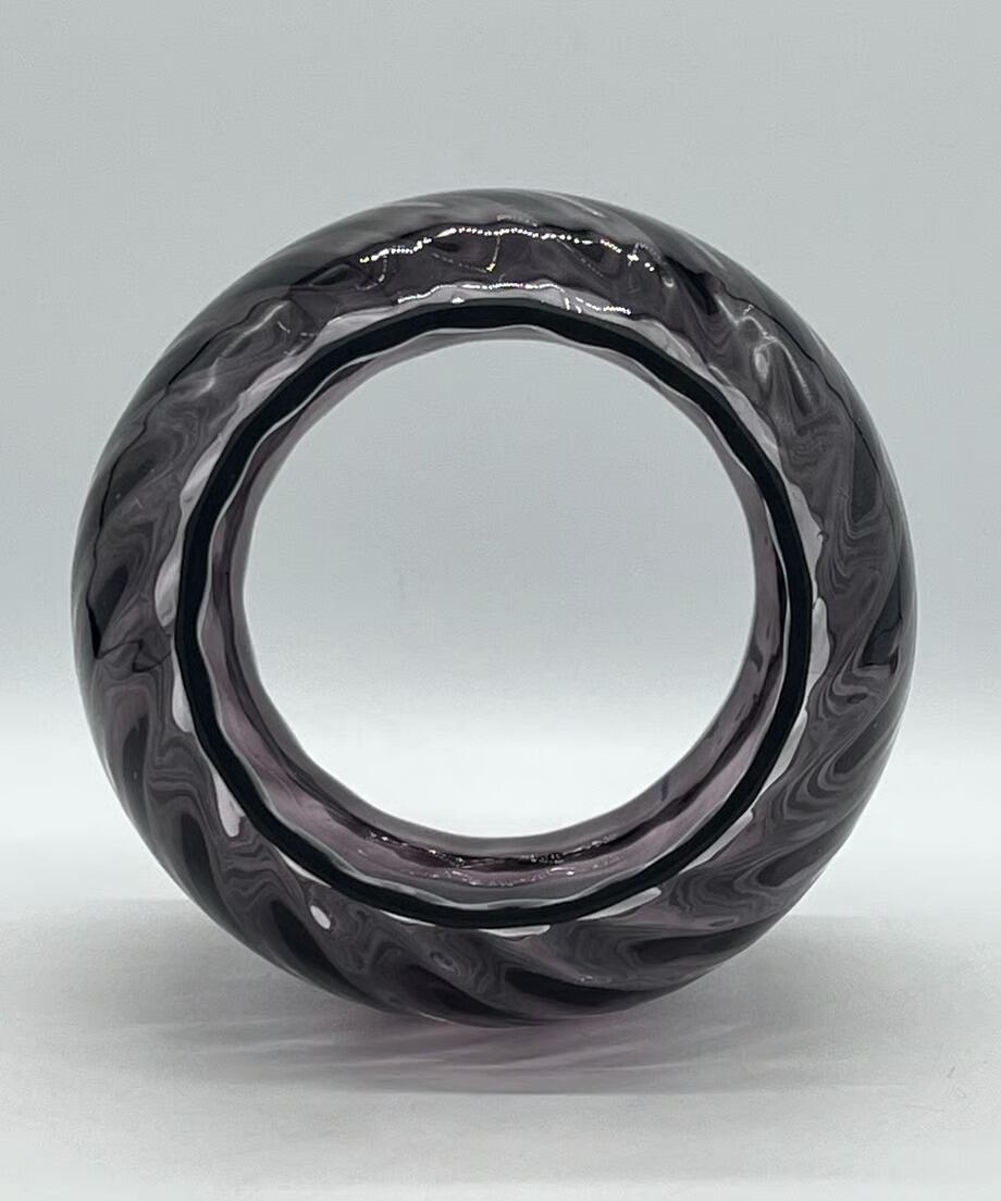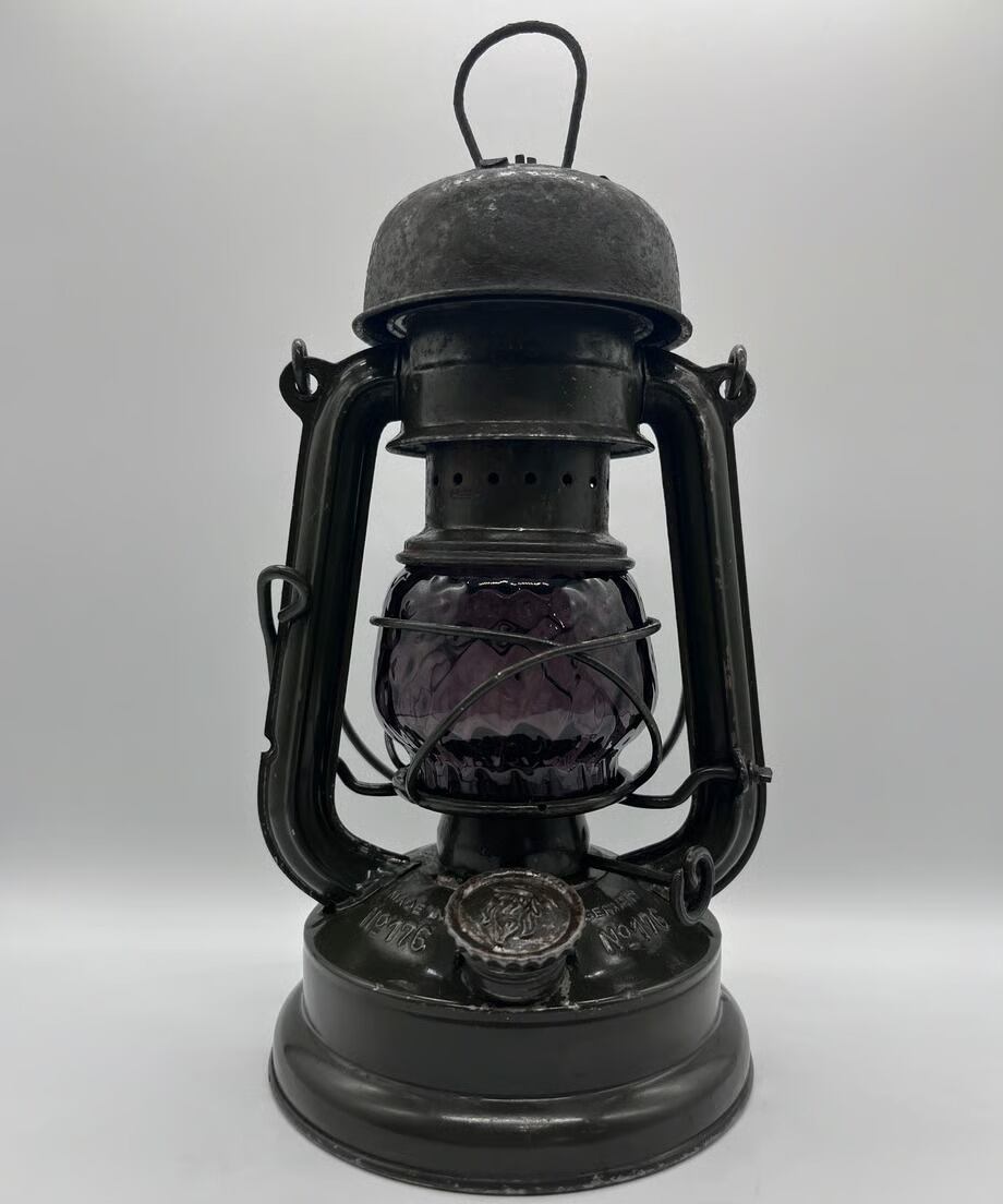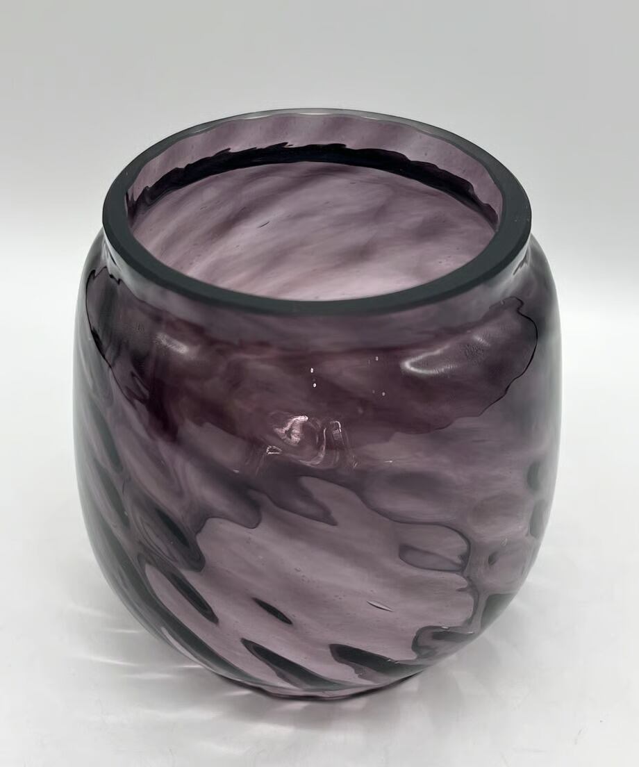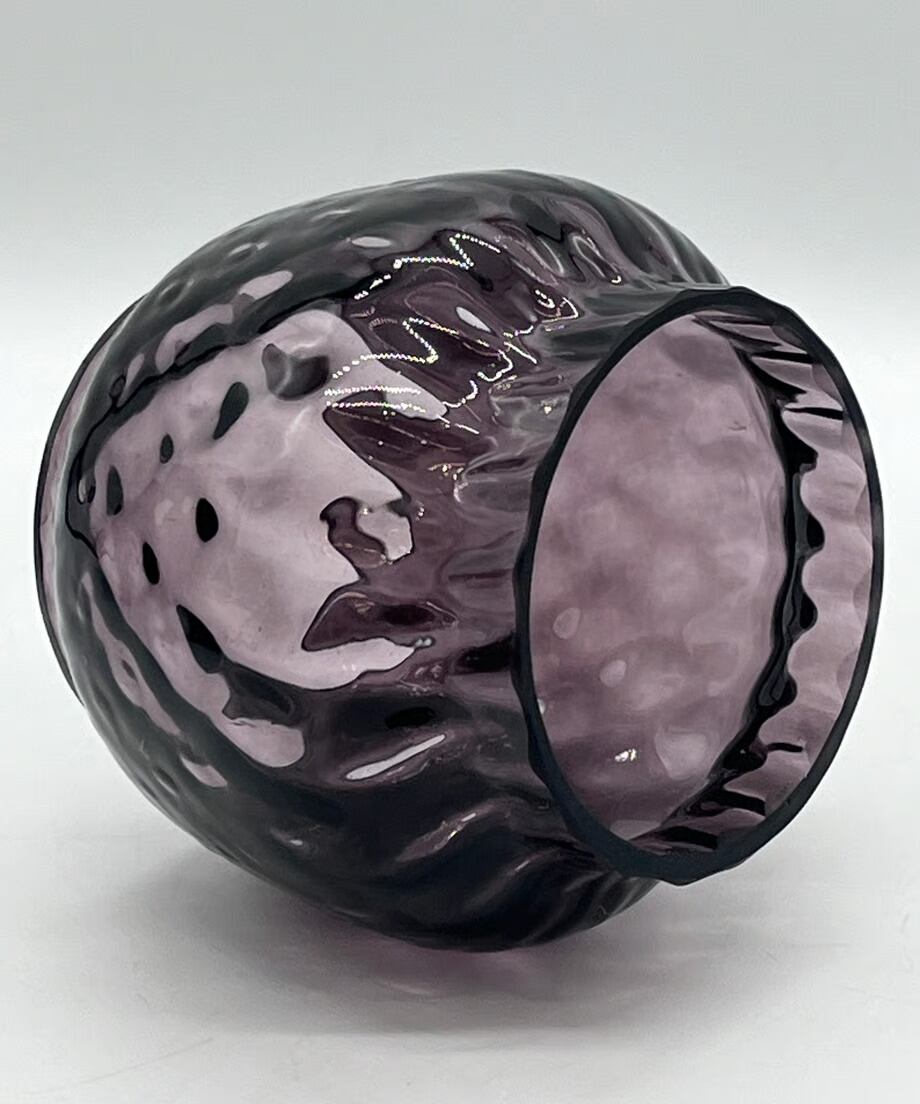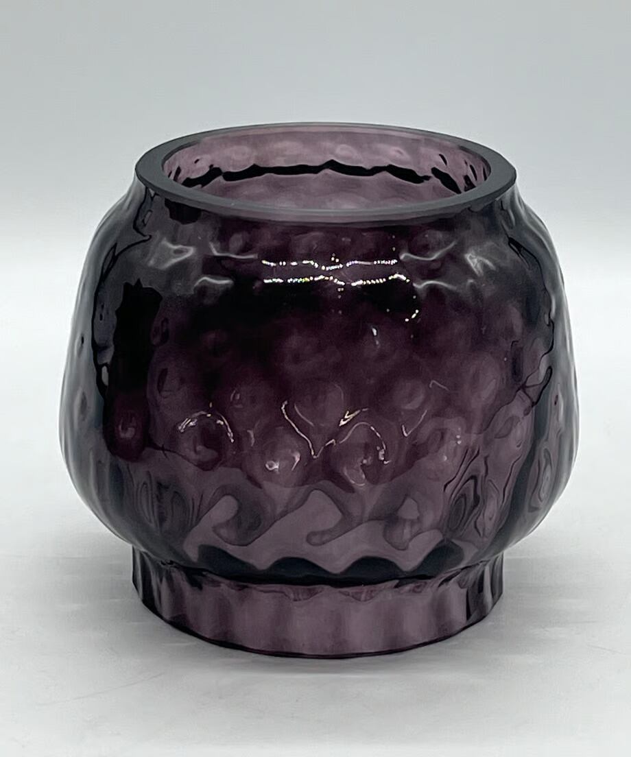濃い色のパープルです。戦時下のドイツでは法律(ブラックアウト規制)でランタンが明る過ぎないように濃い色のガラスを作り、炎をなるべく暗くなるように作製しました。そんな濃い色のガラスの作品です。