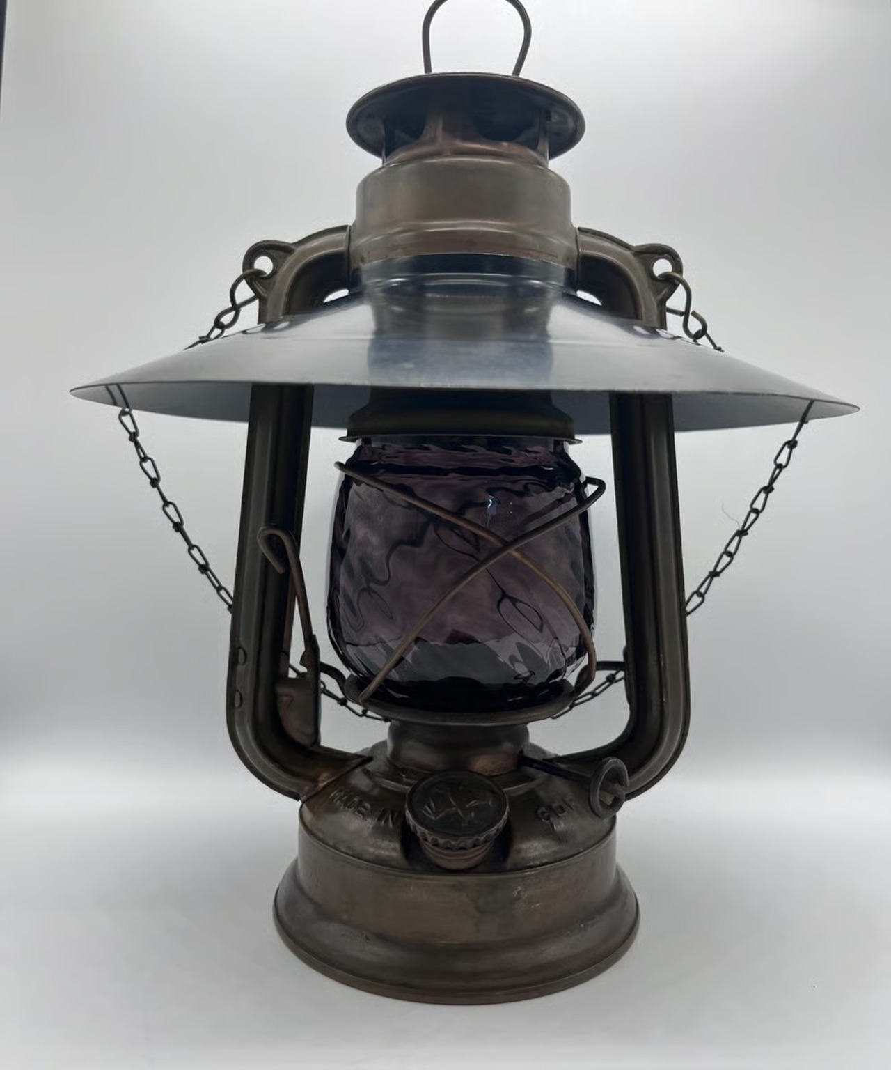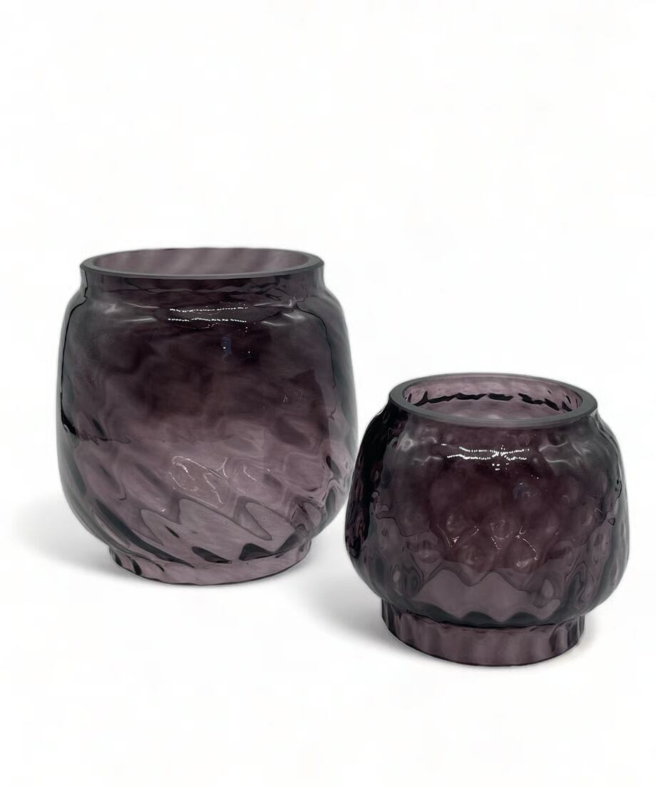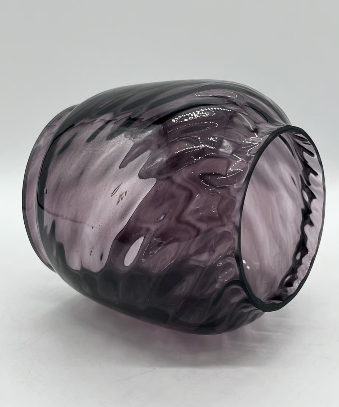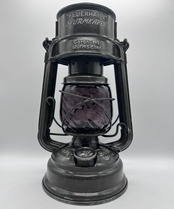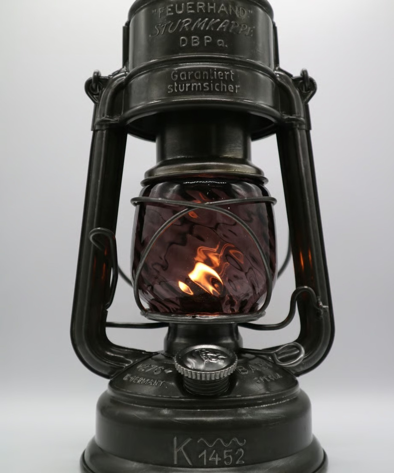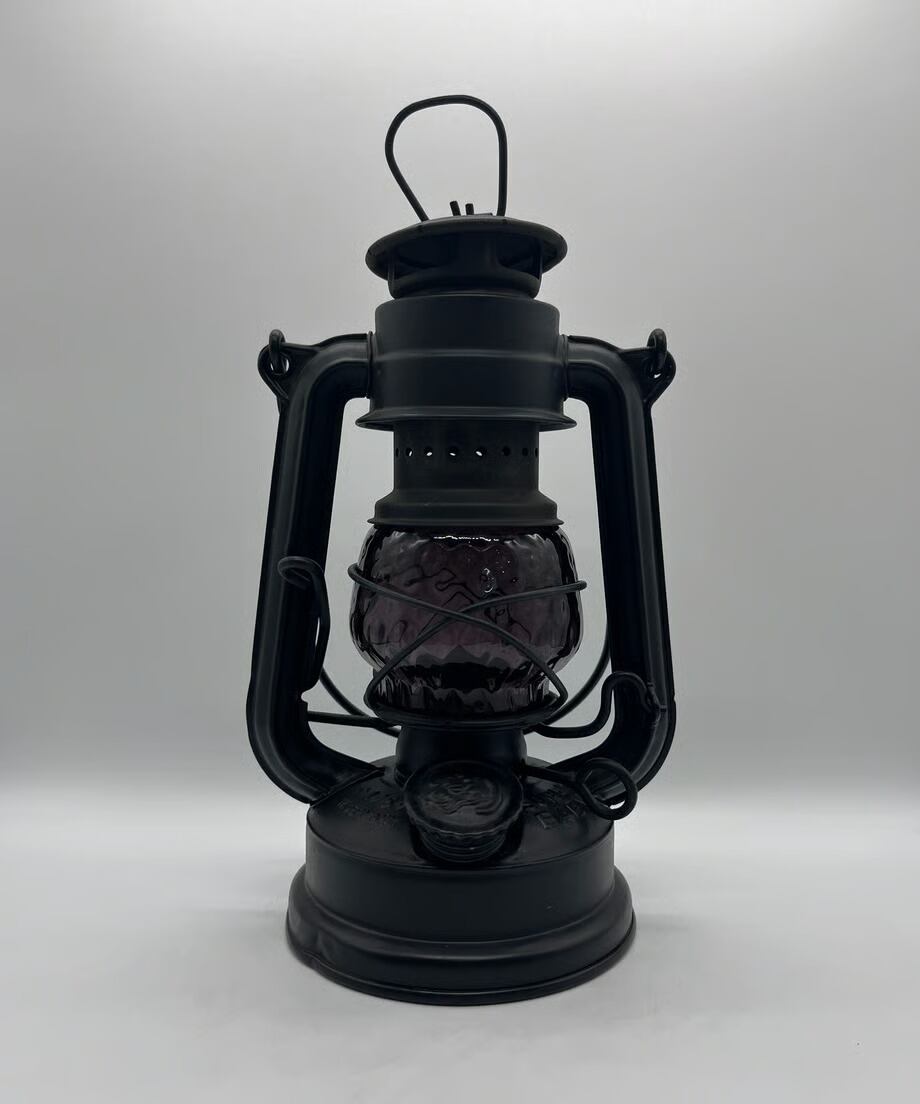 濃い色のパープルです。戦時下のドイツでは法律(ブラックアウト規制)でランタンが明る過ぎないように濃い色のガラスを作り、炎をなるべく暗くなるように作製しました。そんな濃い色のガラスの作品です。