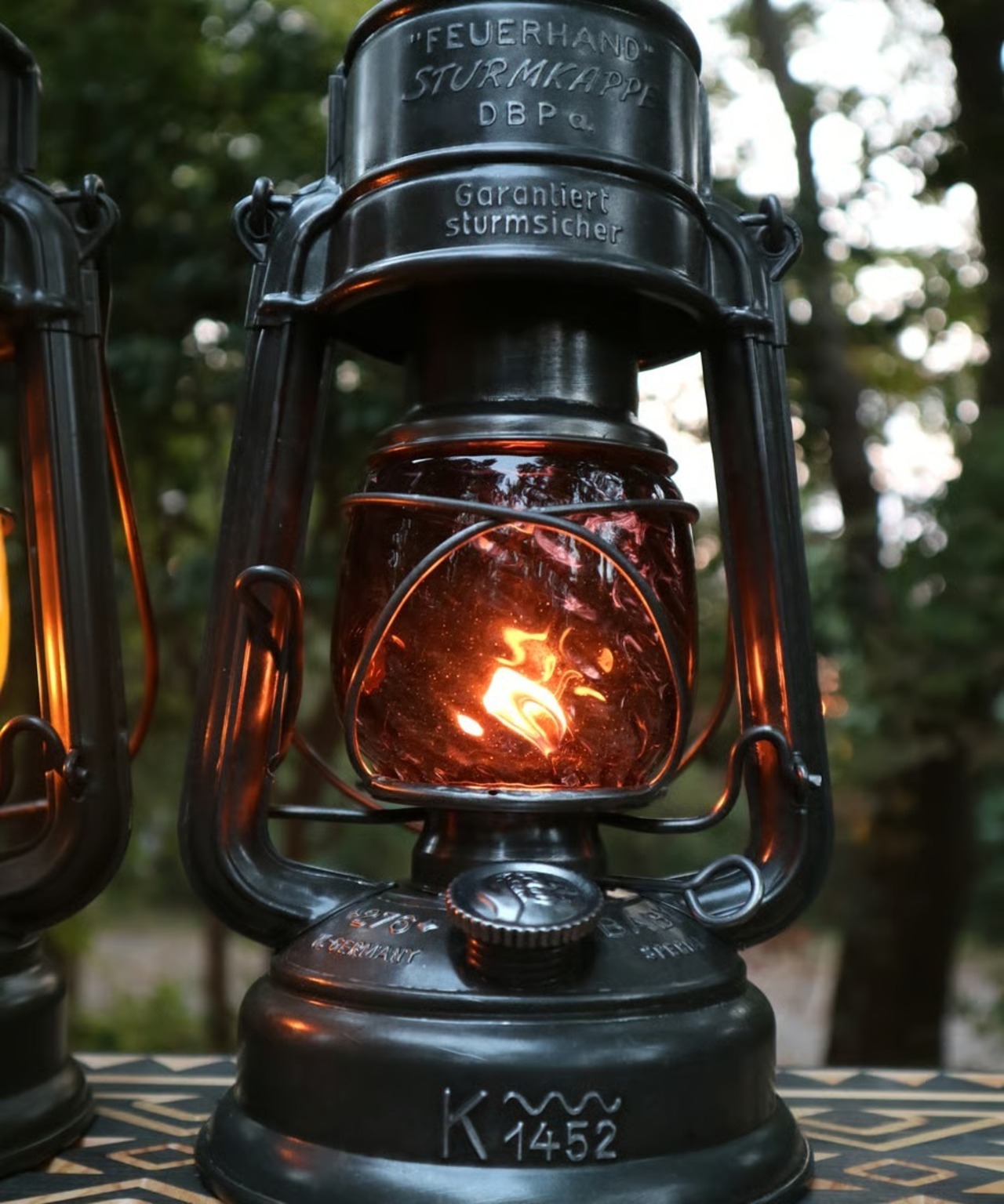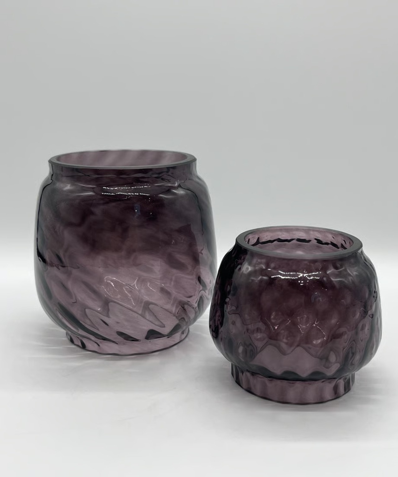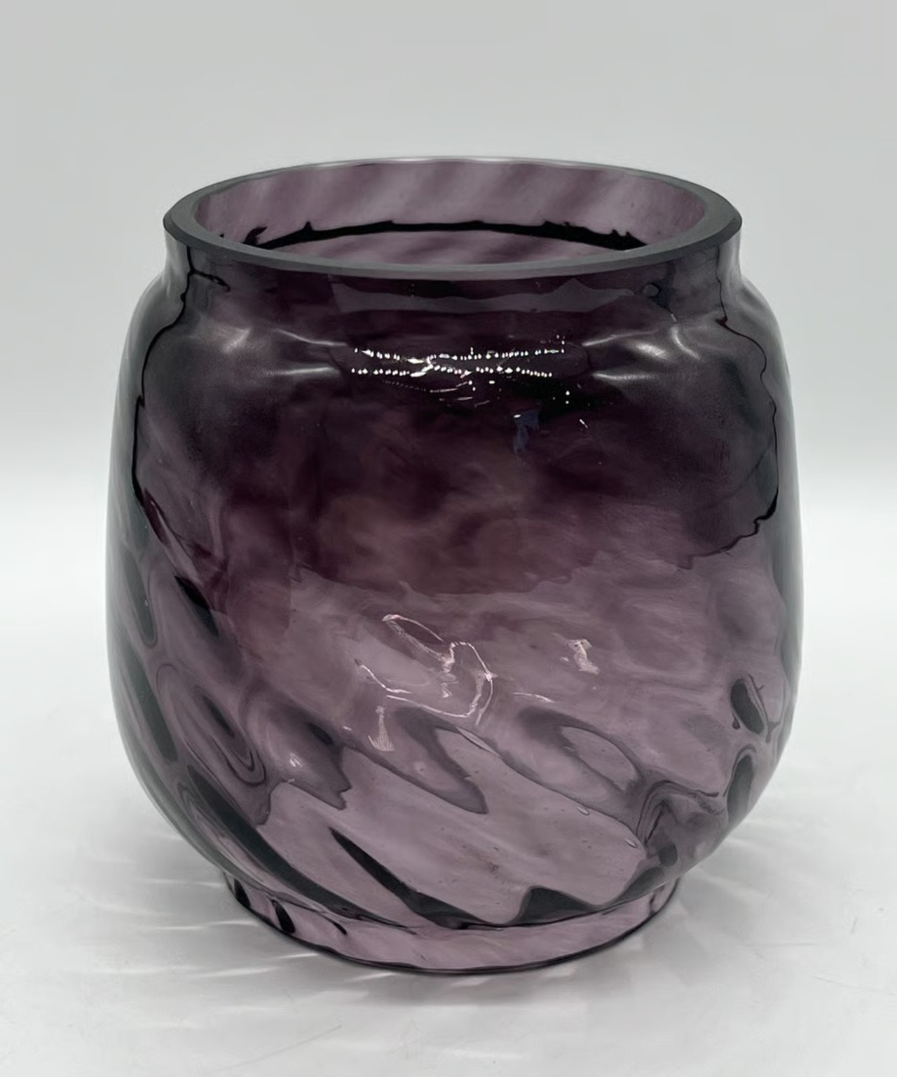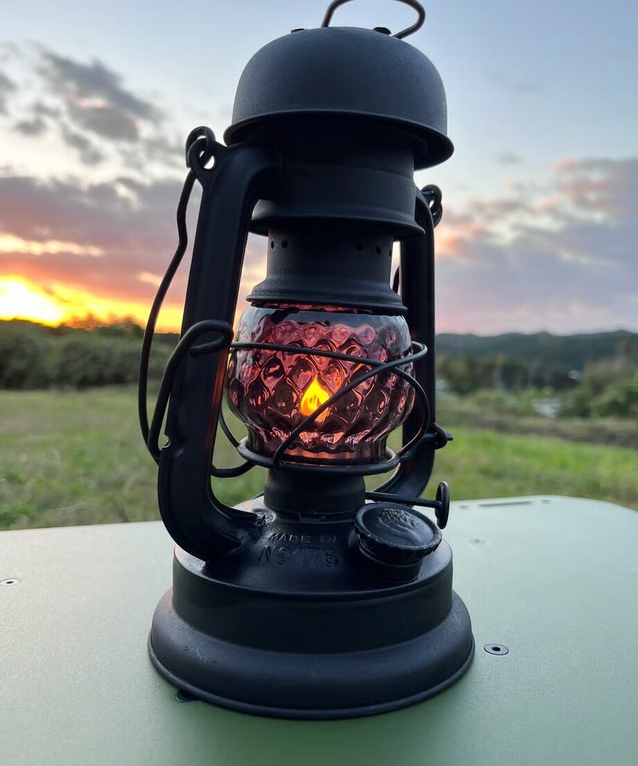 濃い色のパープルです。戦時下のドイツでは法律(ブラックアウト規制)でランタンが明る過ぎないように濃い色のガラスを作り、炎をなるべく暗くなるように作製しました。そんな濃い色のガラスの作品です。