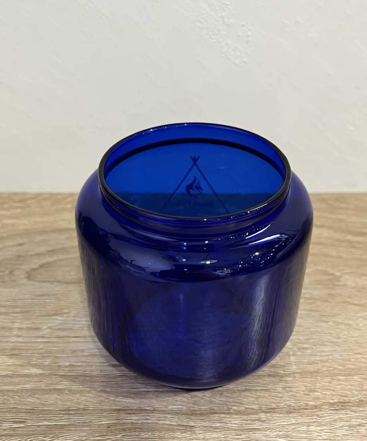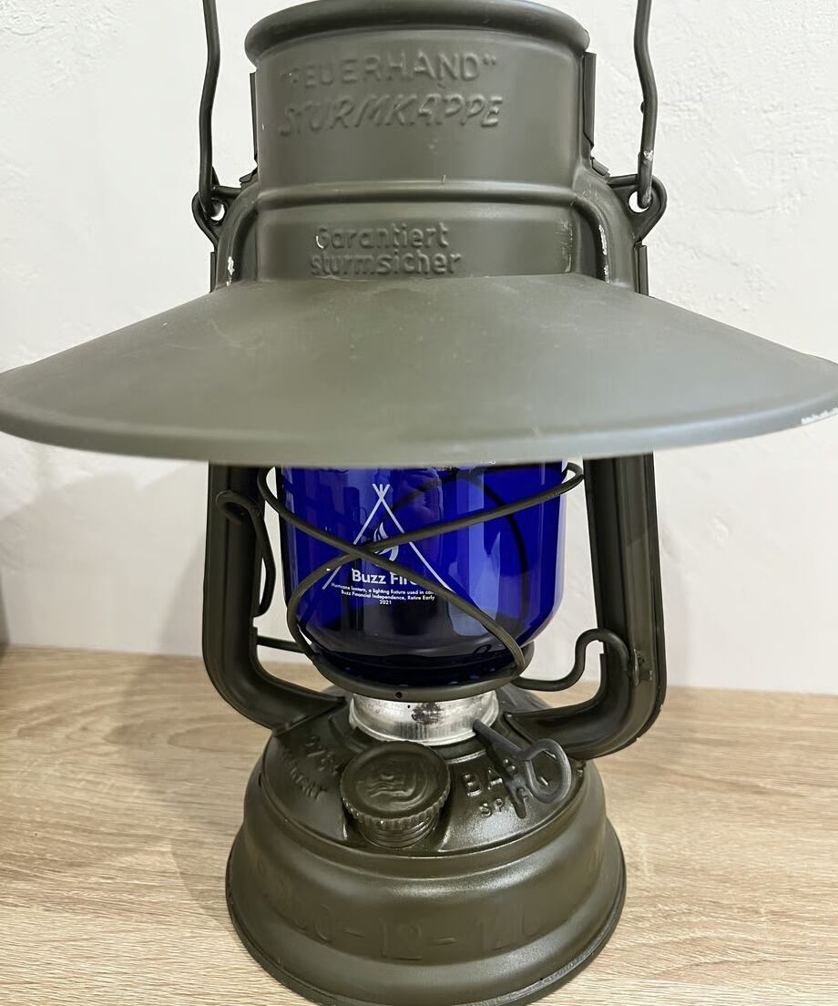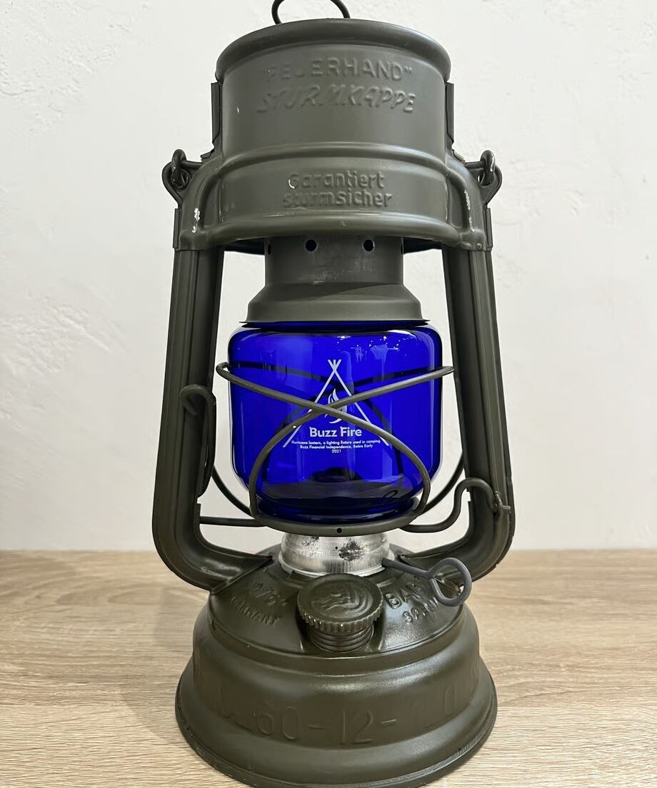 点灯すると炎が青白くなります。オリジナルのFEUERHANDにもその昔ブルーカラーは存在しました。逆にアンバーは無いと思います。戦時中のドイツでは灯りが敵国に漏れないように極暗いガラスが使われました。ブラックもありますが、このブルーもあり、現在では大変貴重で高価です。そんな時代のブルーカラーを彷彿とさせる今回のカスタムブルーグローブ。