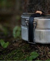 スタッキングをして本体が重たくなった時、上蓋の取っ手だけでは本体との固定が若干困難。このベルトで本体をぐるっと巻く事で崩壊の心配が無くなります。 上蓋の取っ手にはベルトを通す為に作られたの?という穴が付いている戦闘飯盒2型。ここにベルトを通して留る事でシッカリと本体と上蓋を固定する事が可能です。