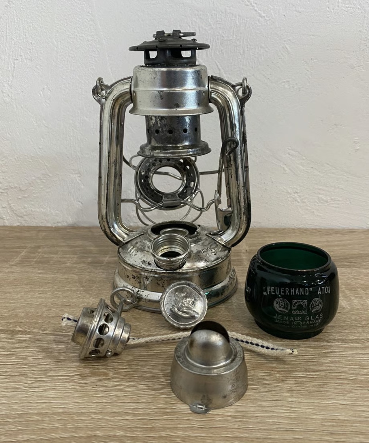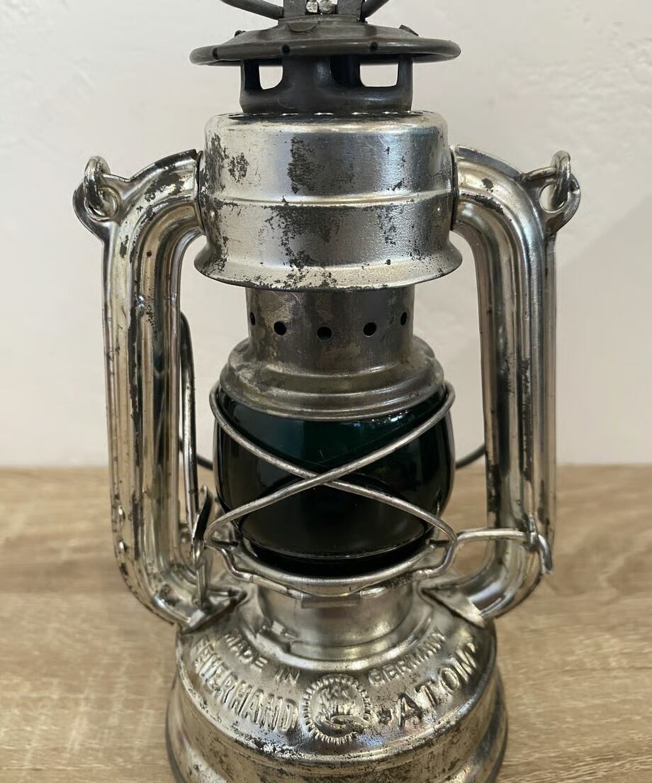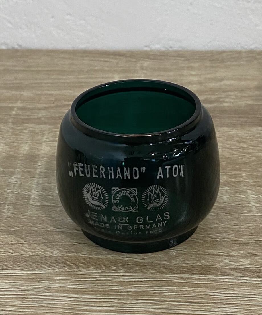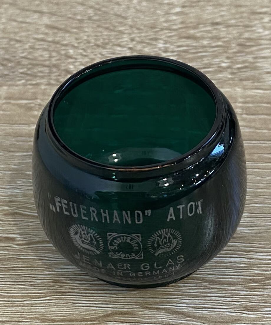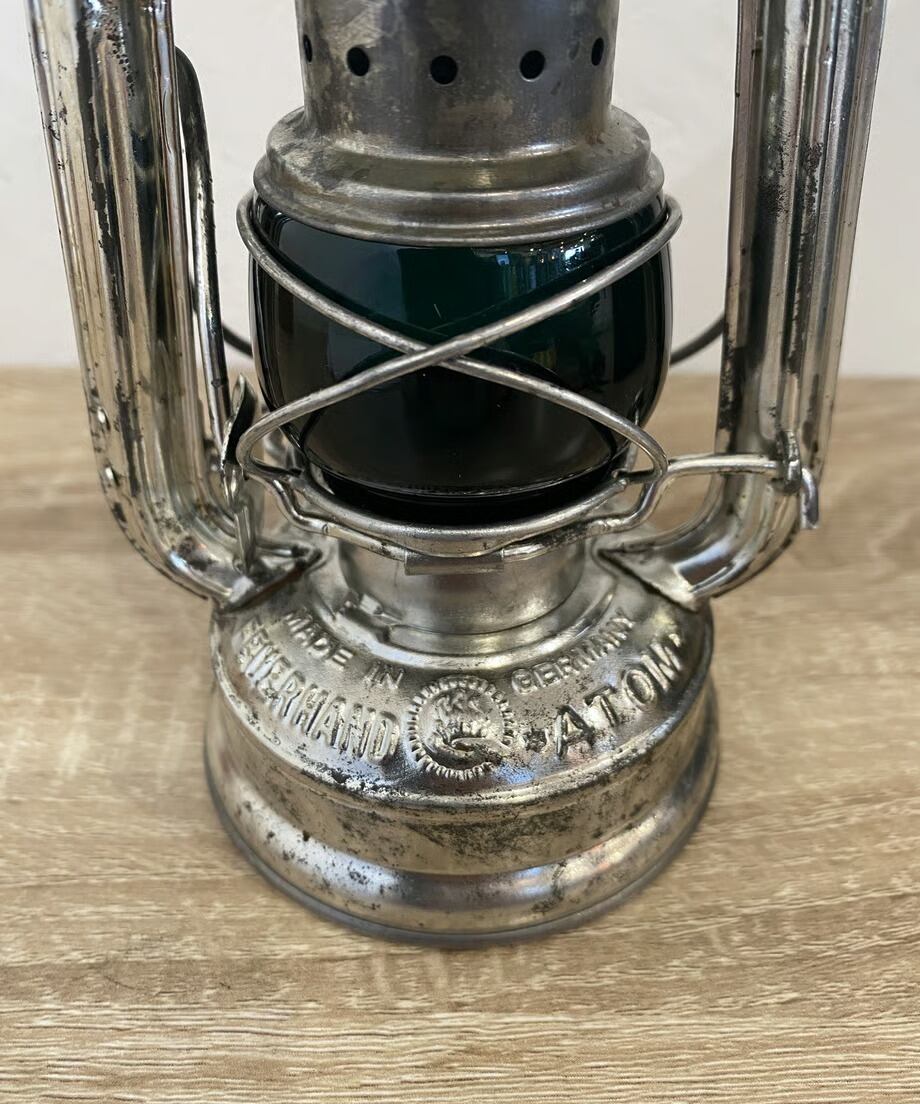 今回の個体にはATOMのカラーガラスの中で最も貴重なグリーンのガラスが装着してあります。もちろんオリジナルです。1930年代製造で戦前のガラスとなります。当時のガラスは個体差がありますが、今回のグリーンは濃い色をしています。点灯するととても美しいです。