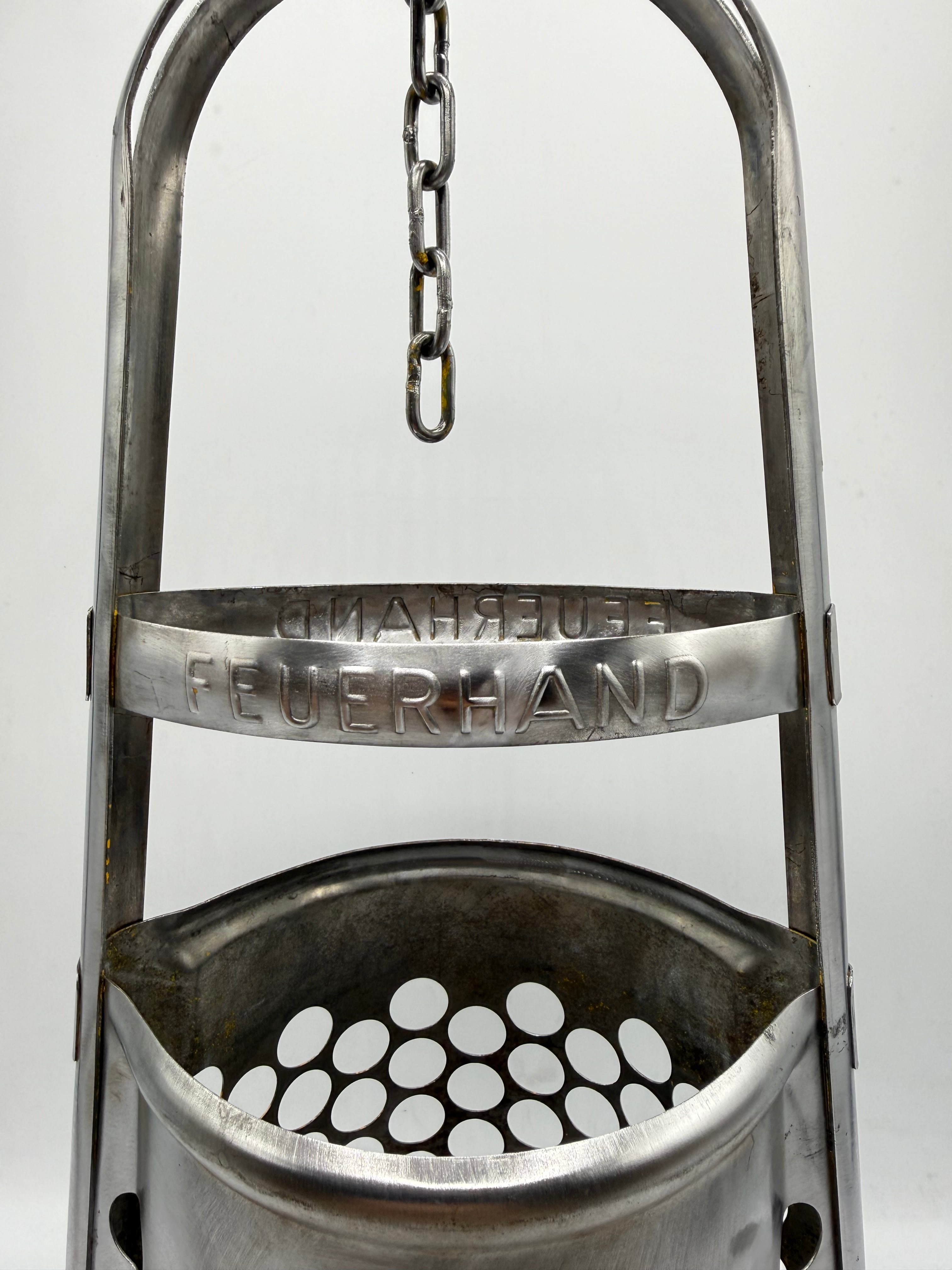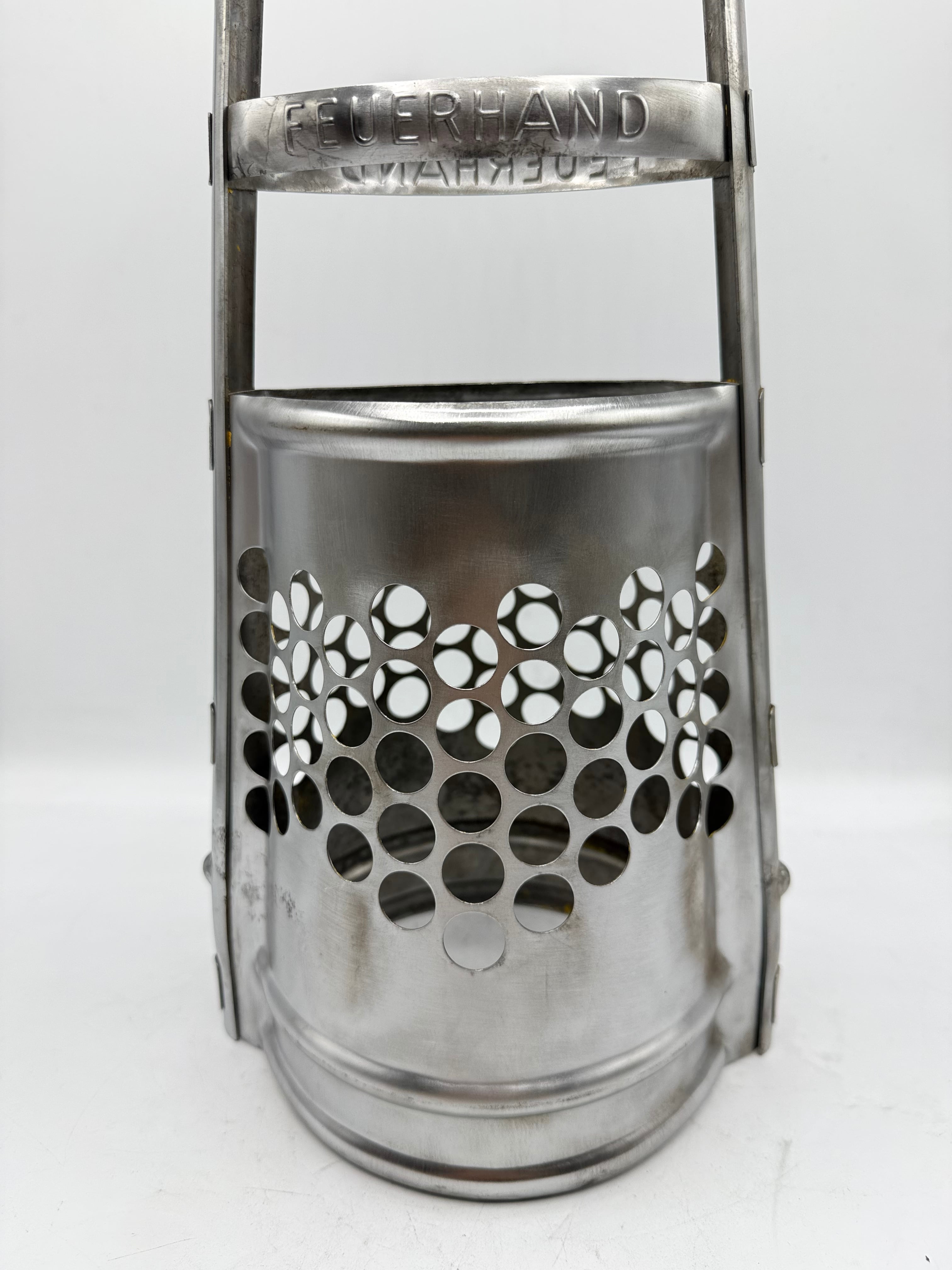 戦後のFEUERHANDが建設現場や建築現場等でハリケーンランタンを使用していた時代のもので、ランタンは外部から保護する為のガードバスケットとなります。