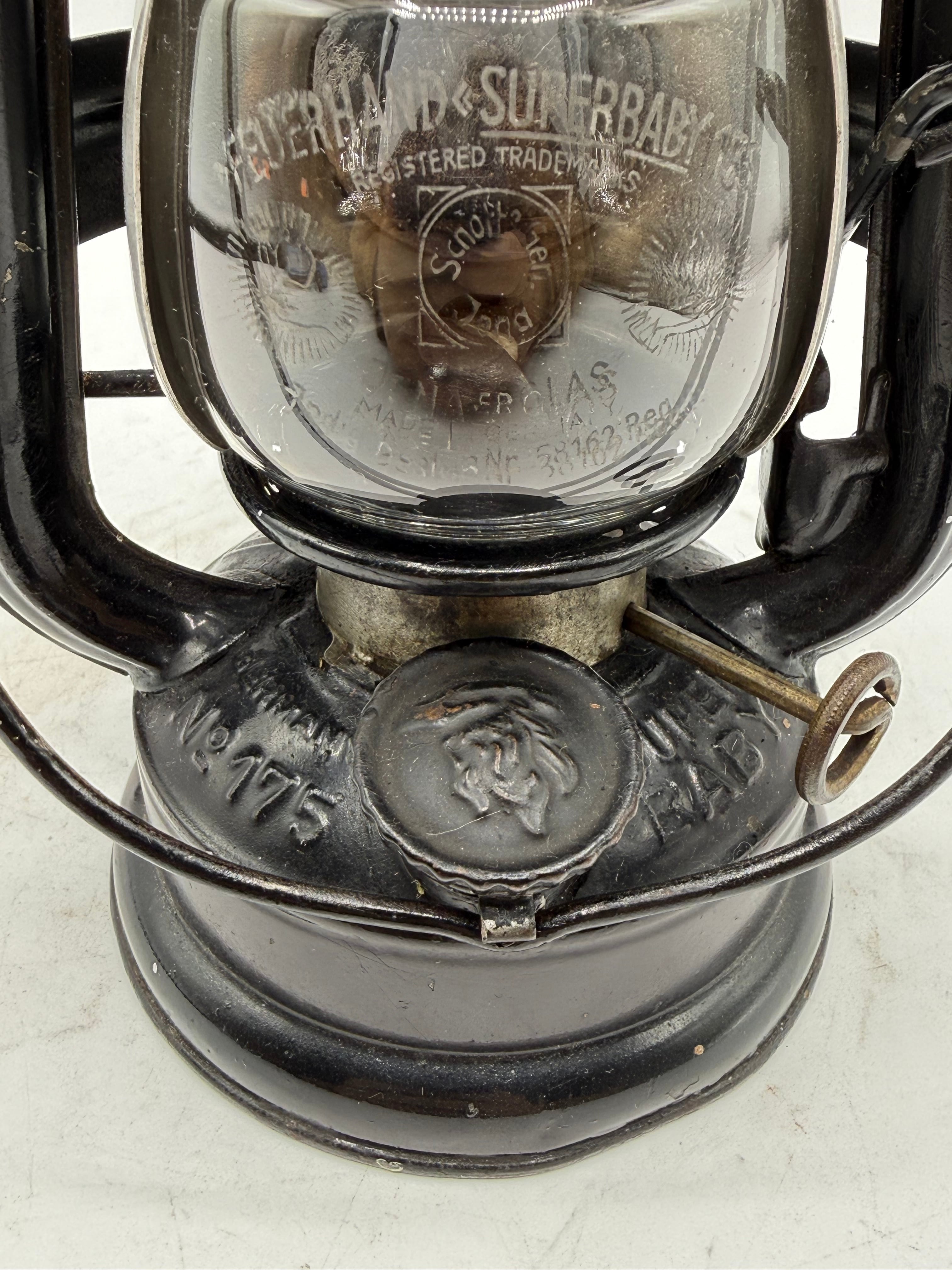 FEUERHAND 175Fとなります。本体の後ろ側に金具が備わっていて、この金具を使って当時主に自転車などや馬車等小型の乗り物に装着してライトとして使用されていたものです。