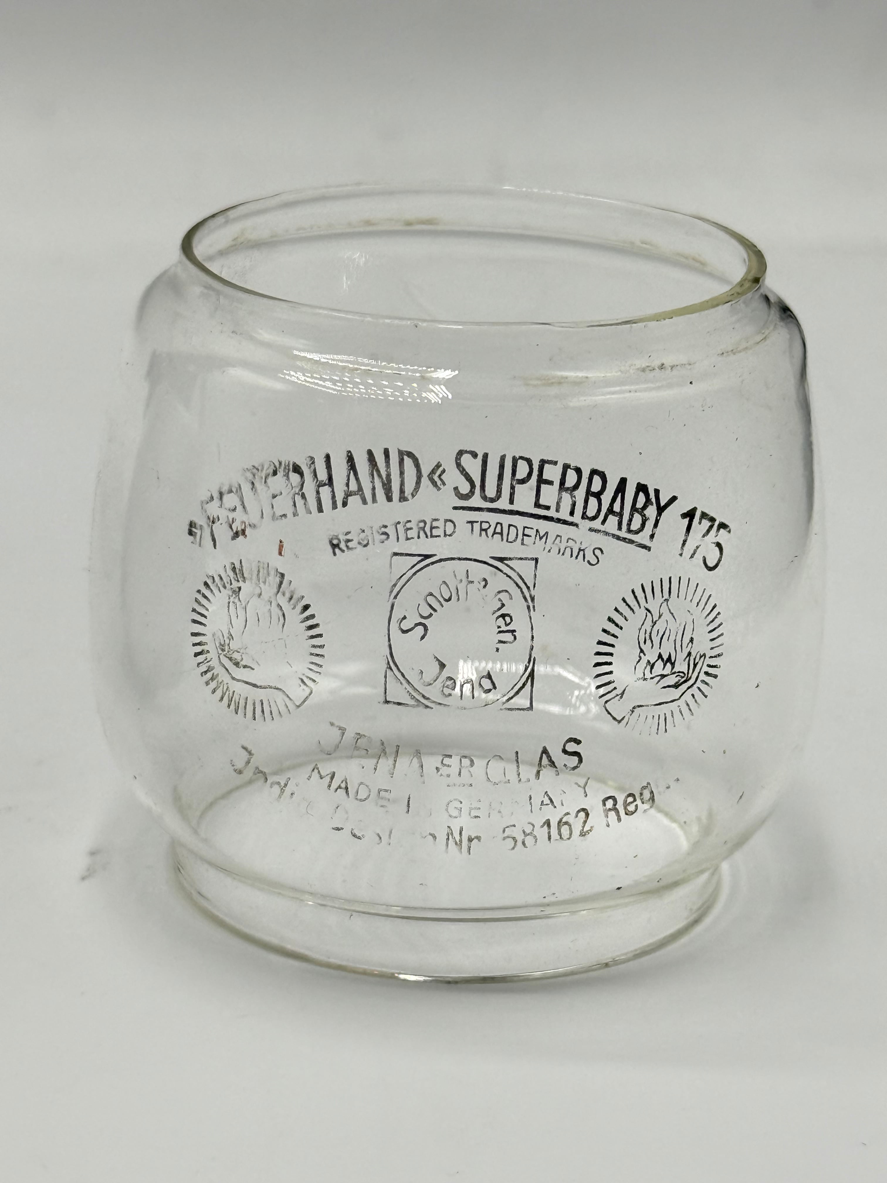 この個体にはオリジナルのガラスグローブがついており、フュアハンドのプリントもしっかり残っております。カラーはクリアです。